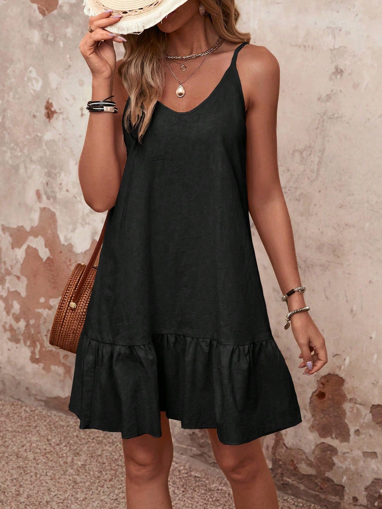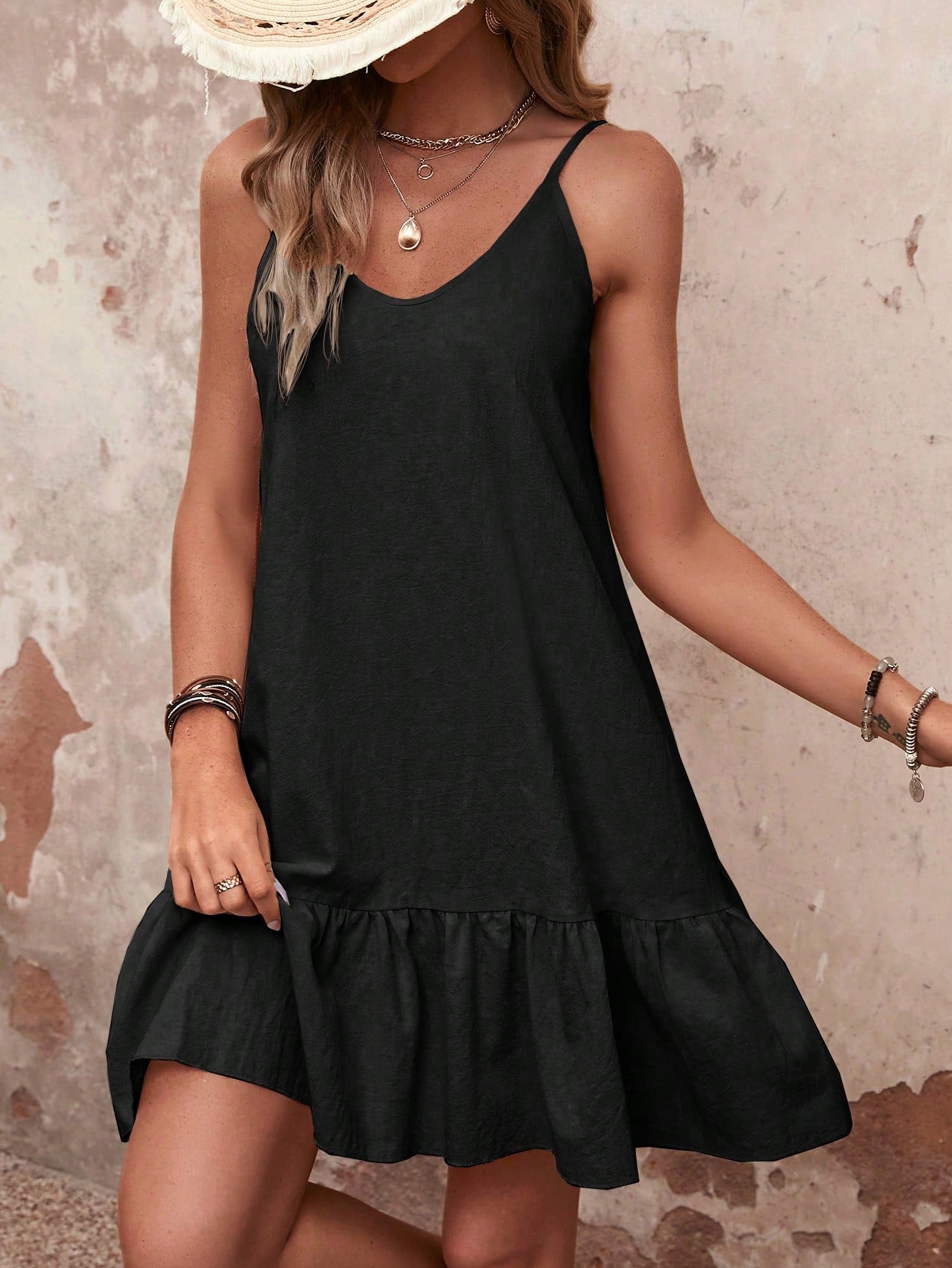 Breezaya Solid Ruffle Hem Cami Dress Vacation Beach Outfits Women