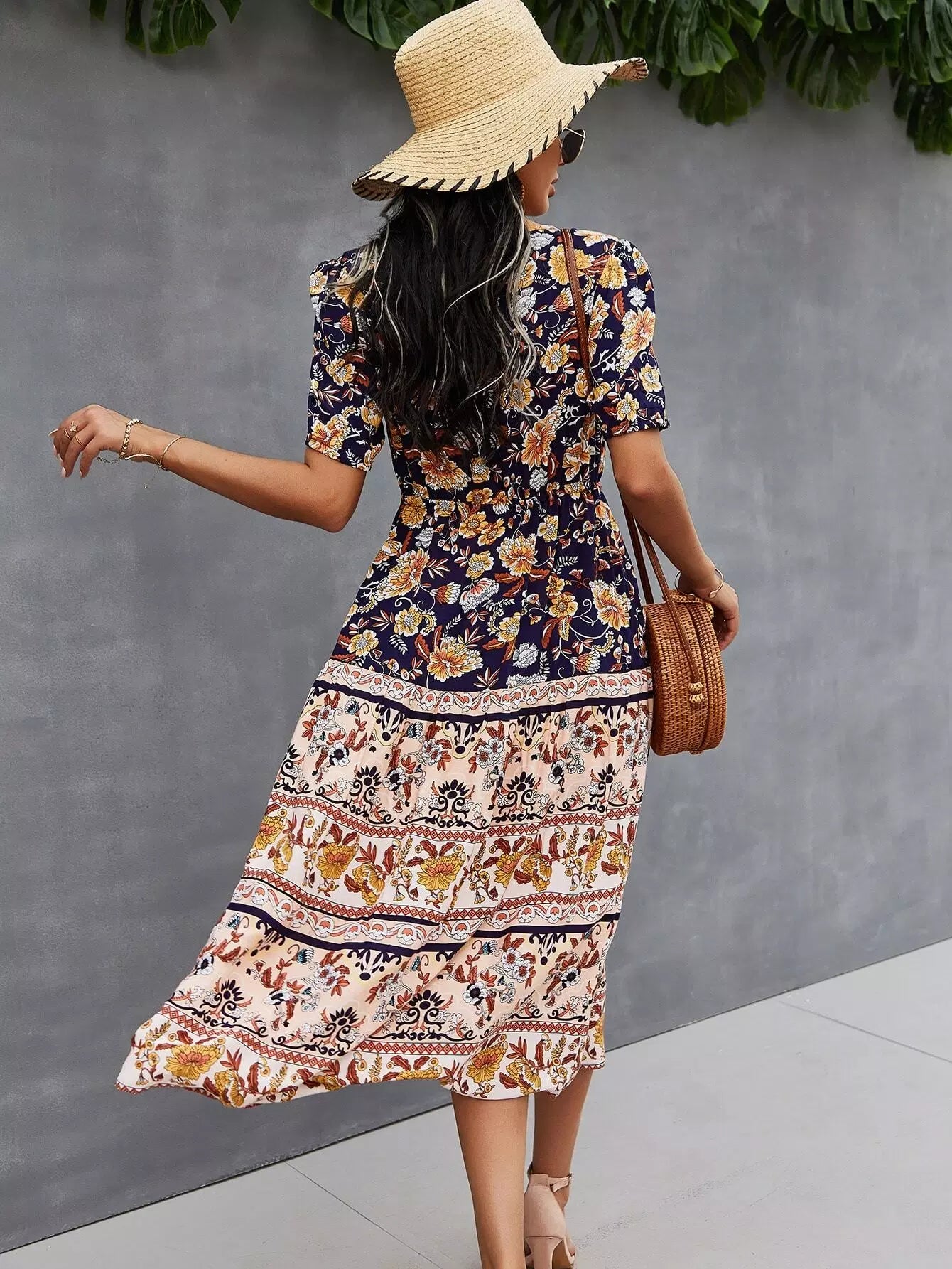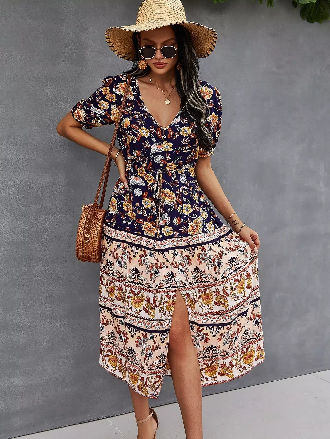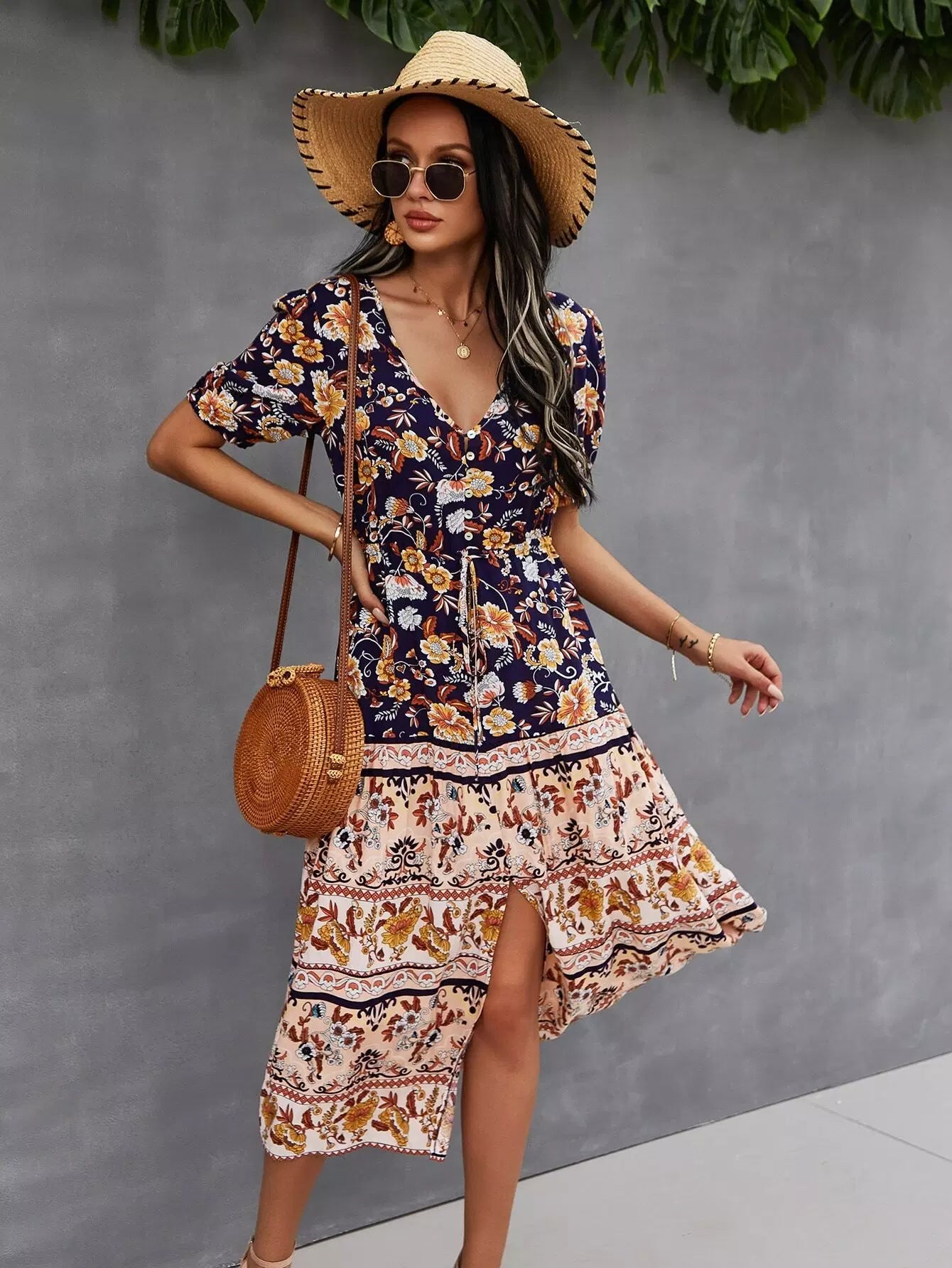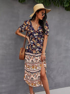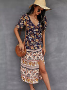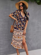 Button Through Split Hem Allover Floral Dress
