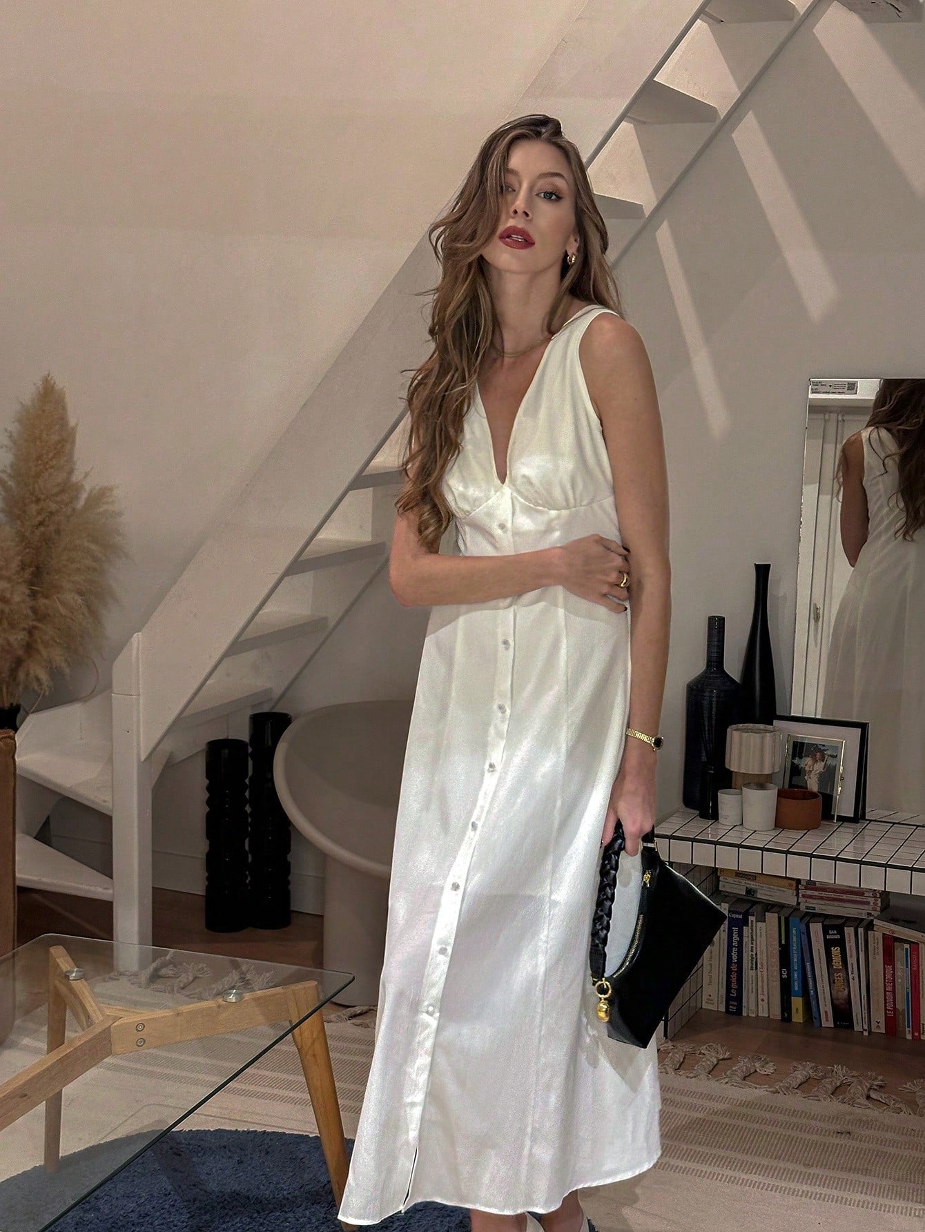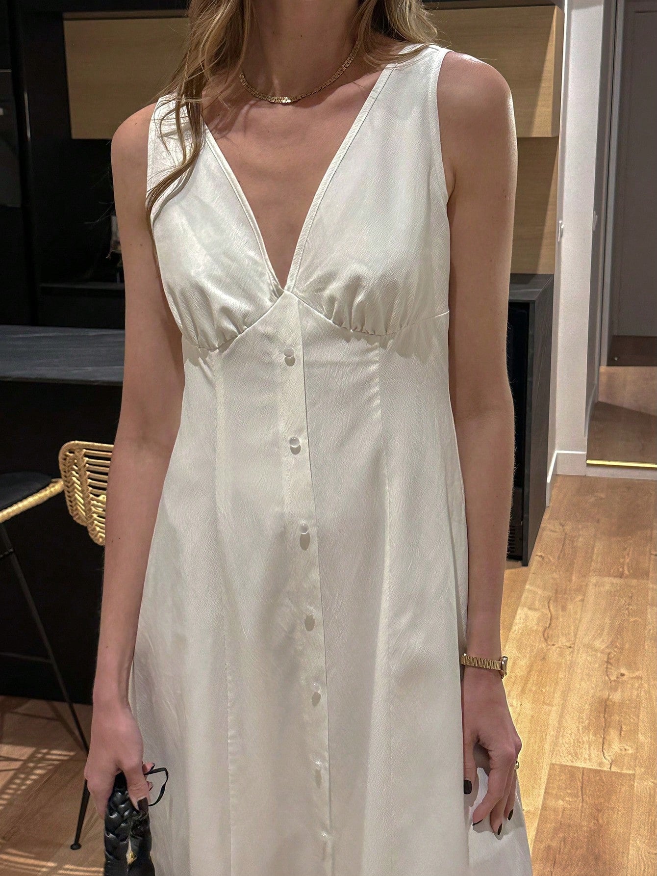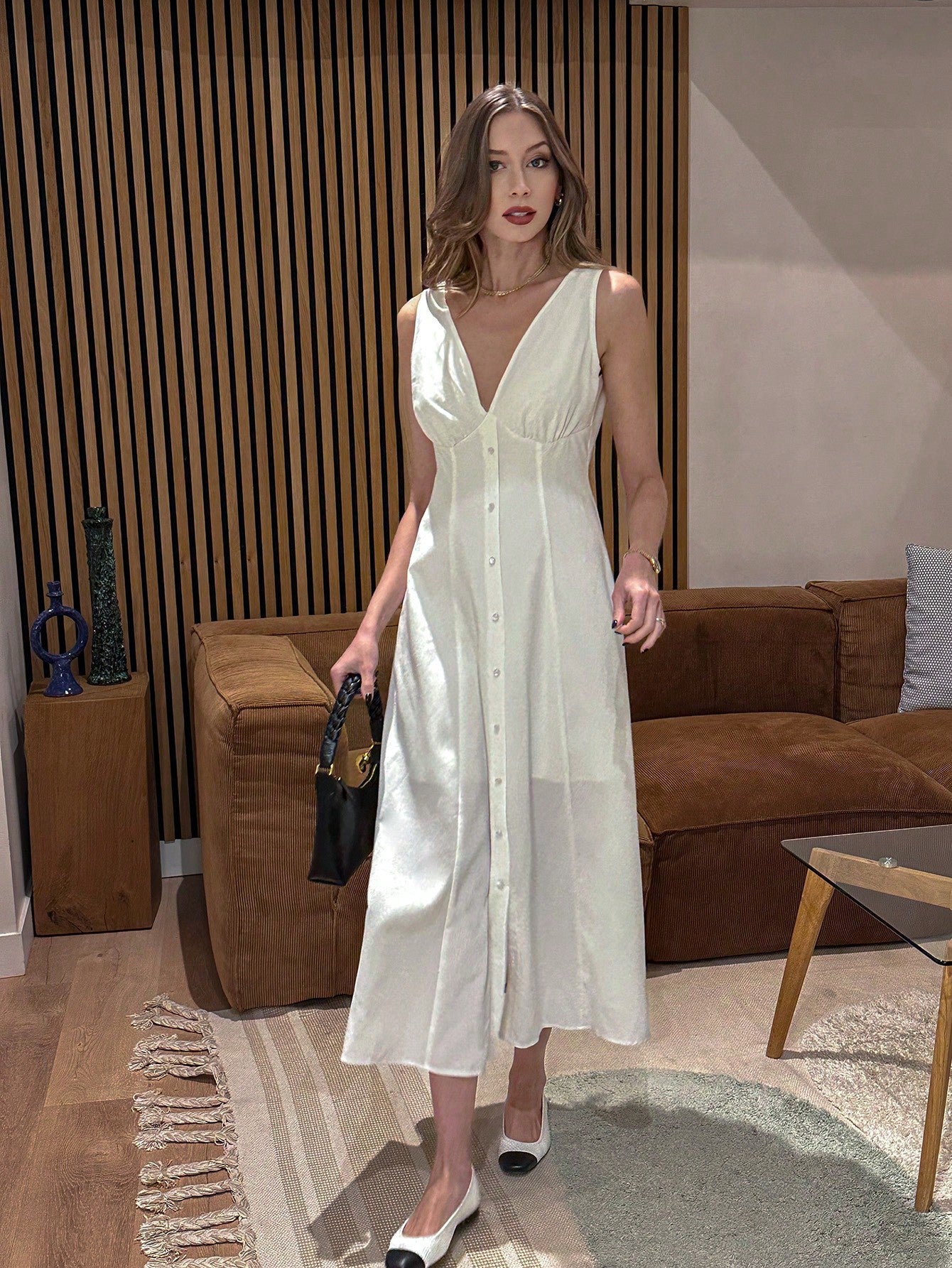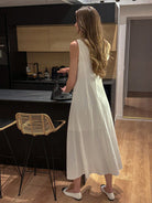 Chiquease Fashionable New Elegant Simple V-Neck Sleeveless Cinched Waist Long White Dress