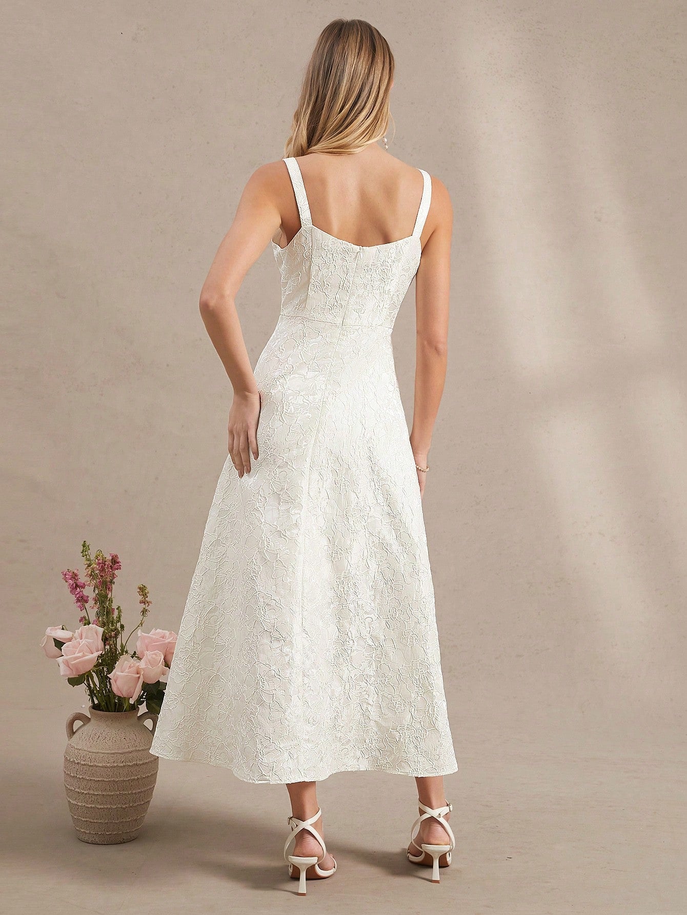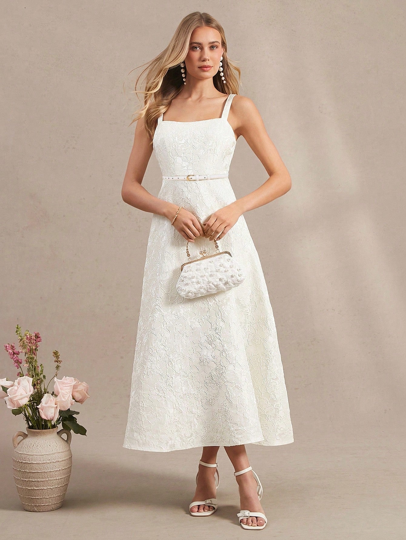 Clasi High-End Lady Suspender Long Dress, French Waisted Puff Sleeve Dress, Elegant For Party & Evening