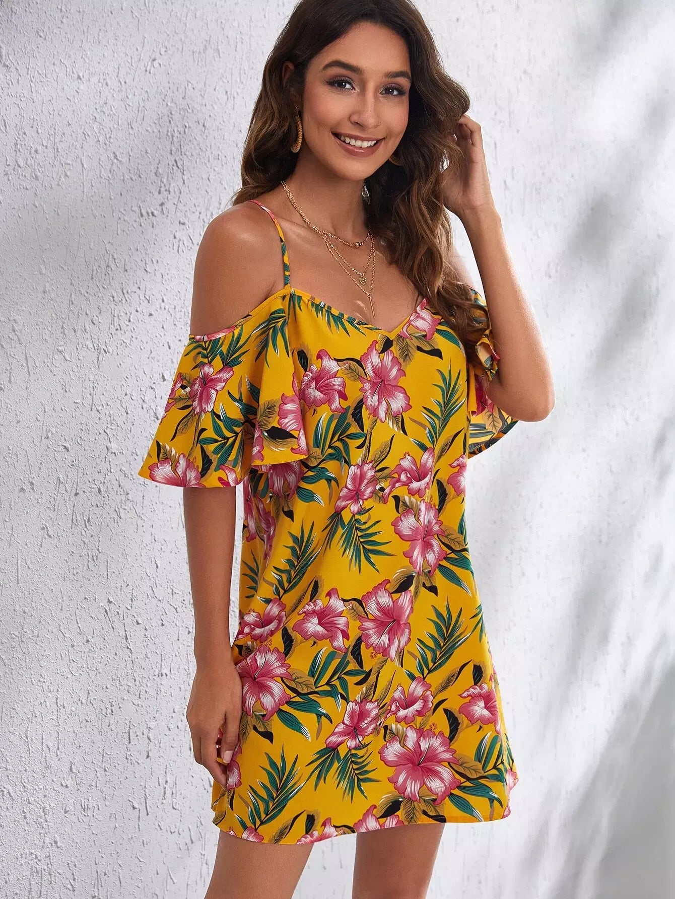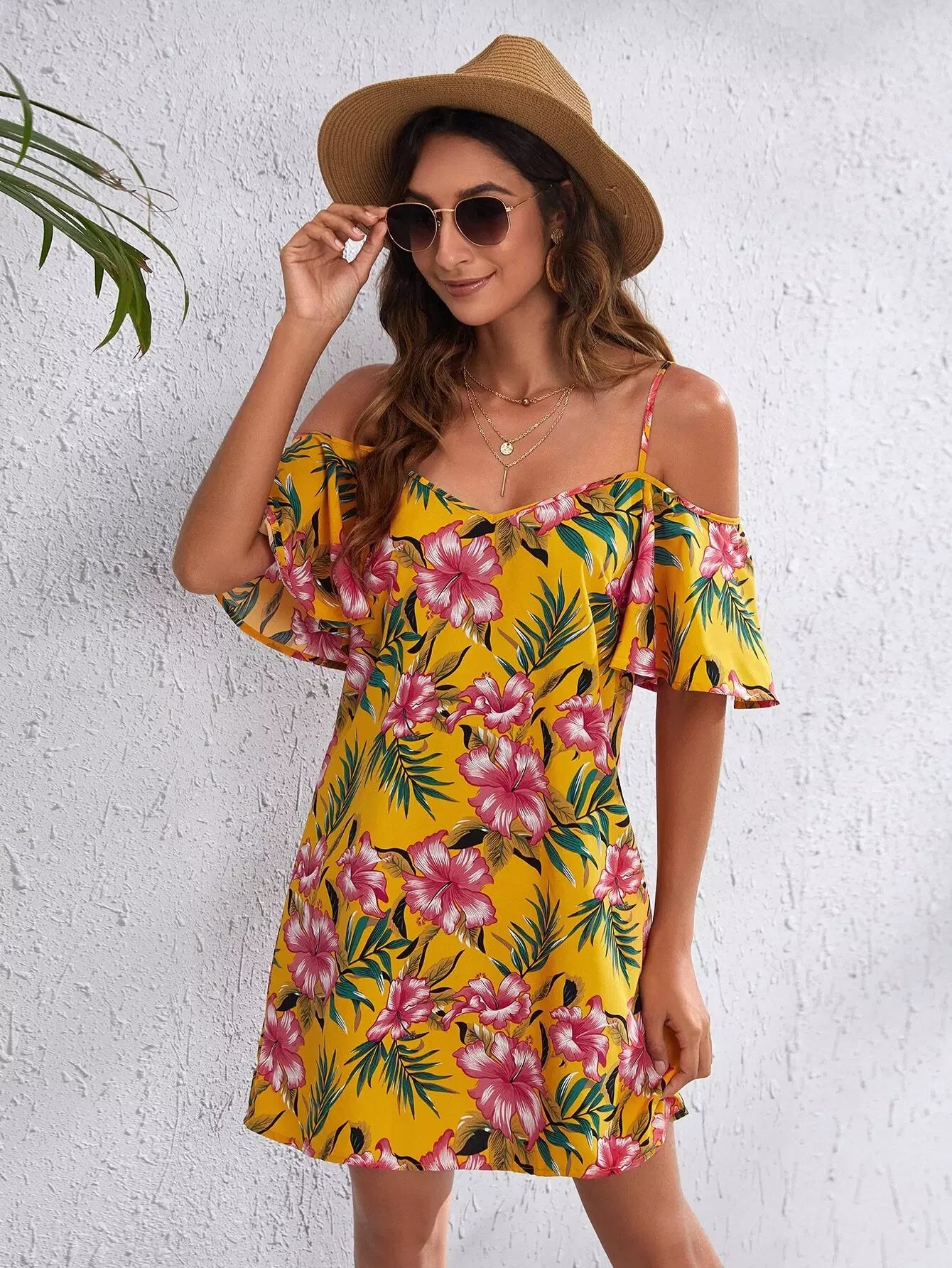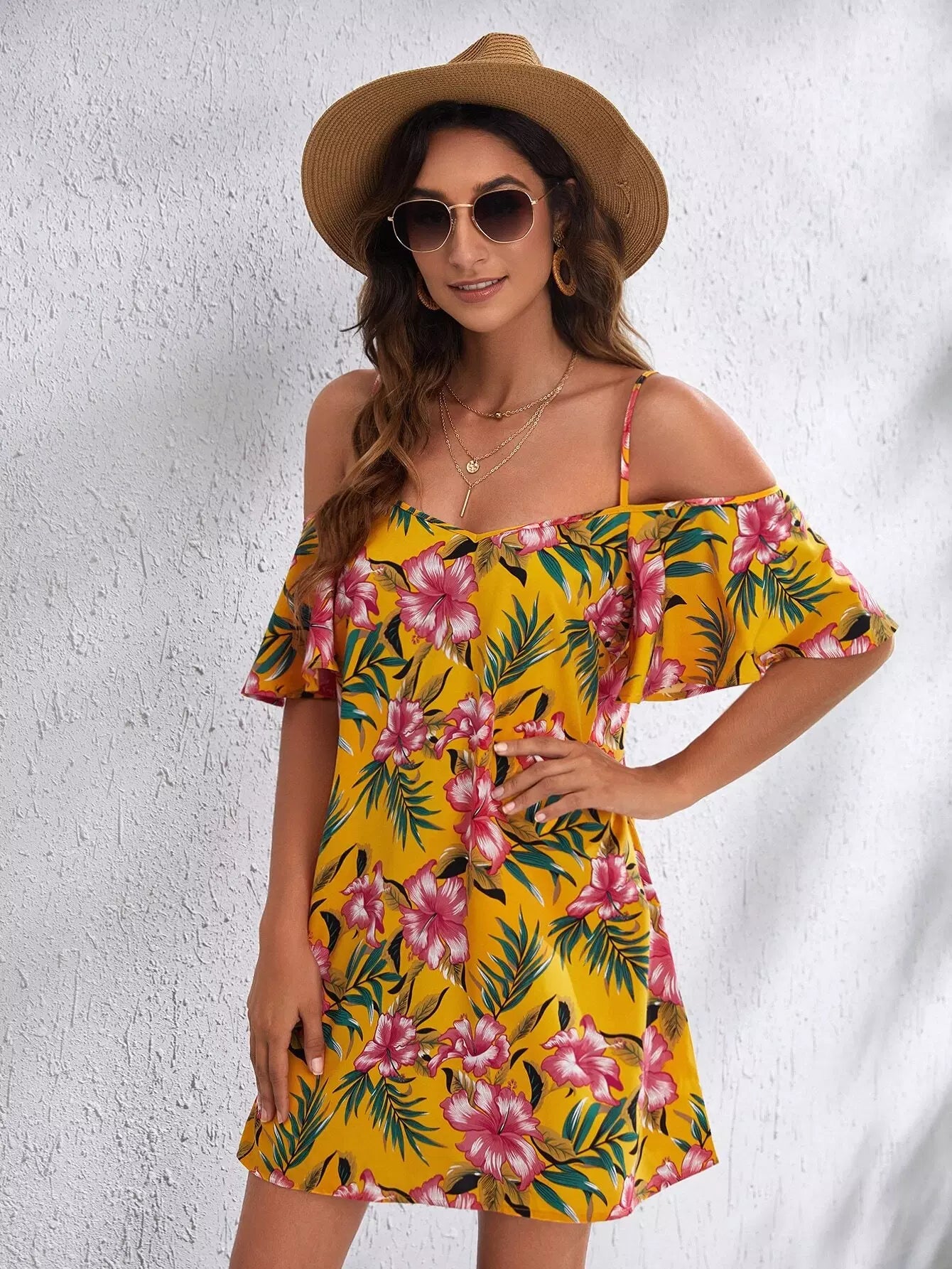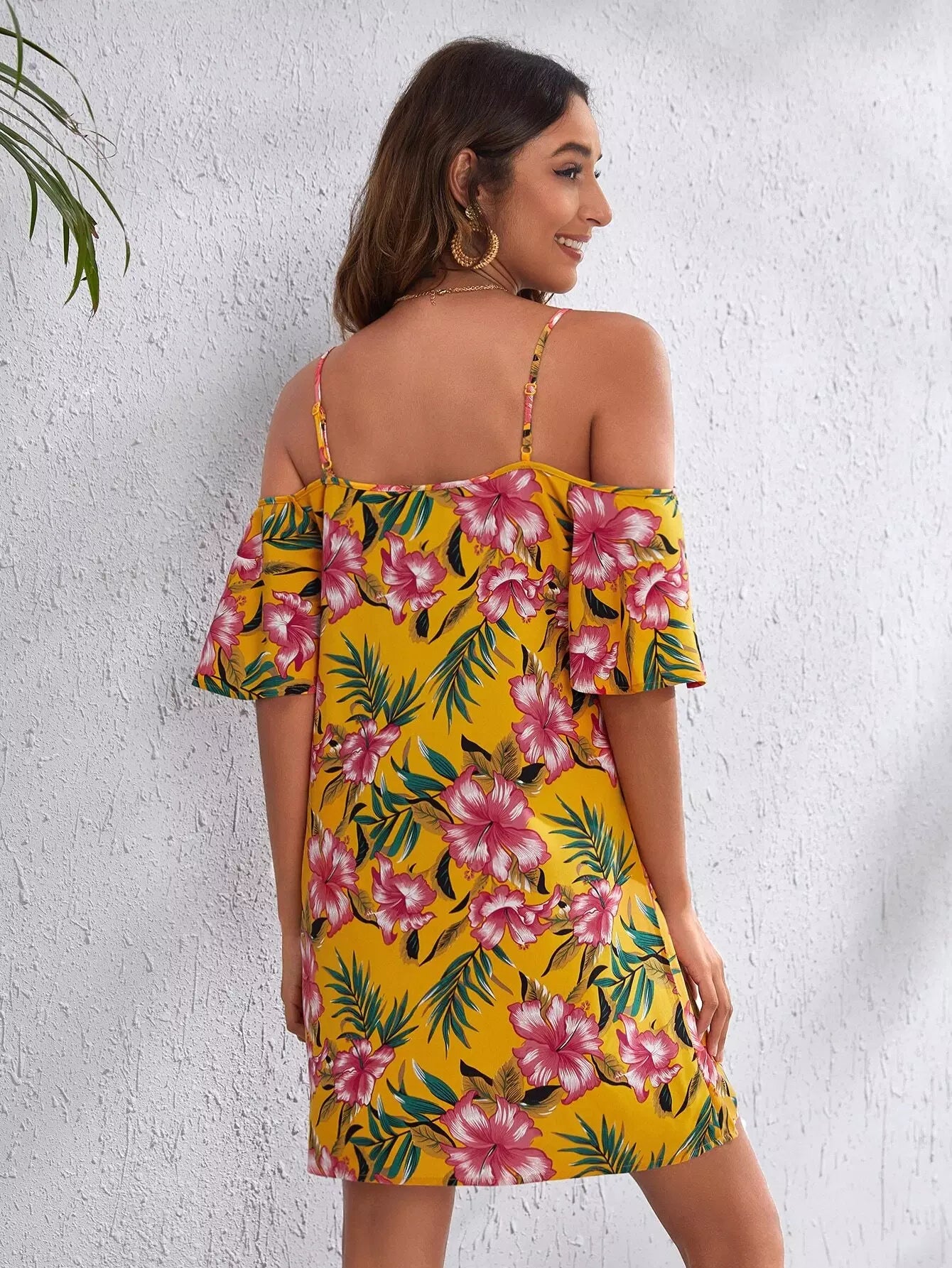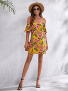 Cold Shoulder Tropical Print Dress