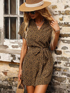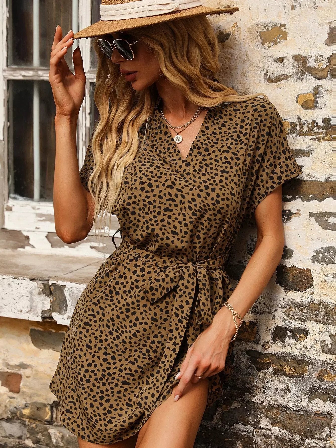 Dalmatian Print Batwing Sleeve Notched Neck Dress Without Belt