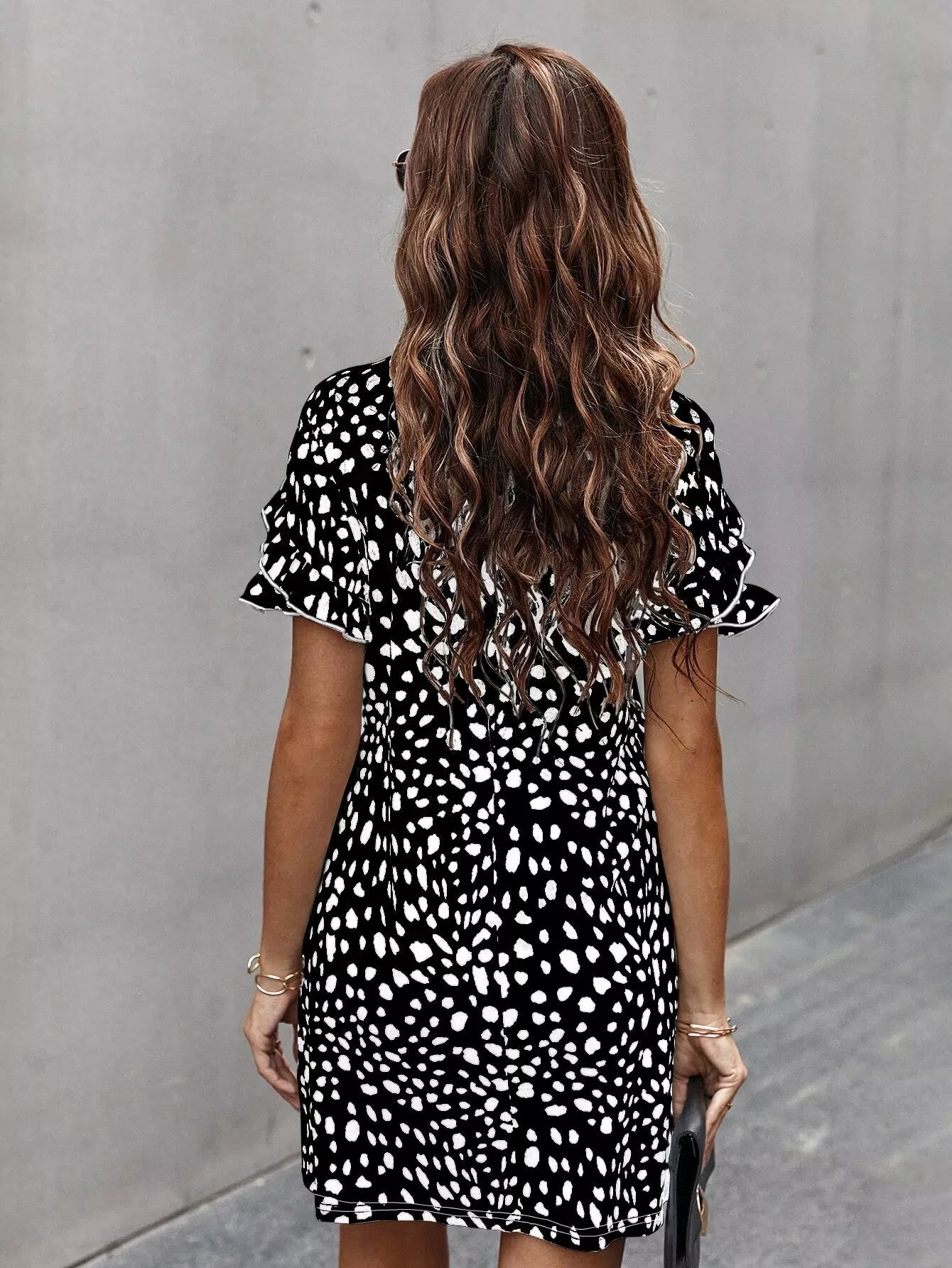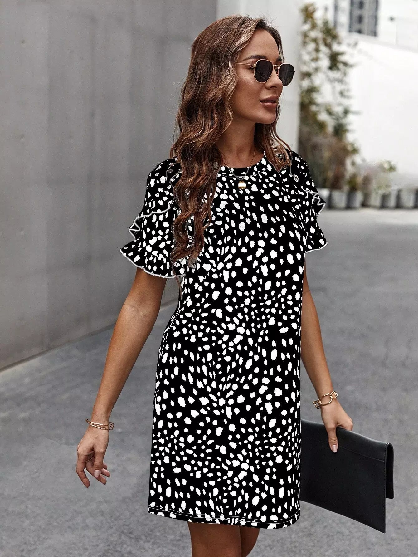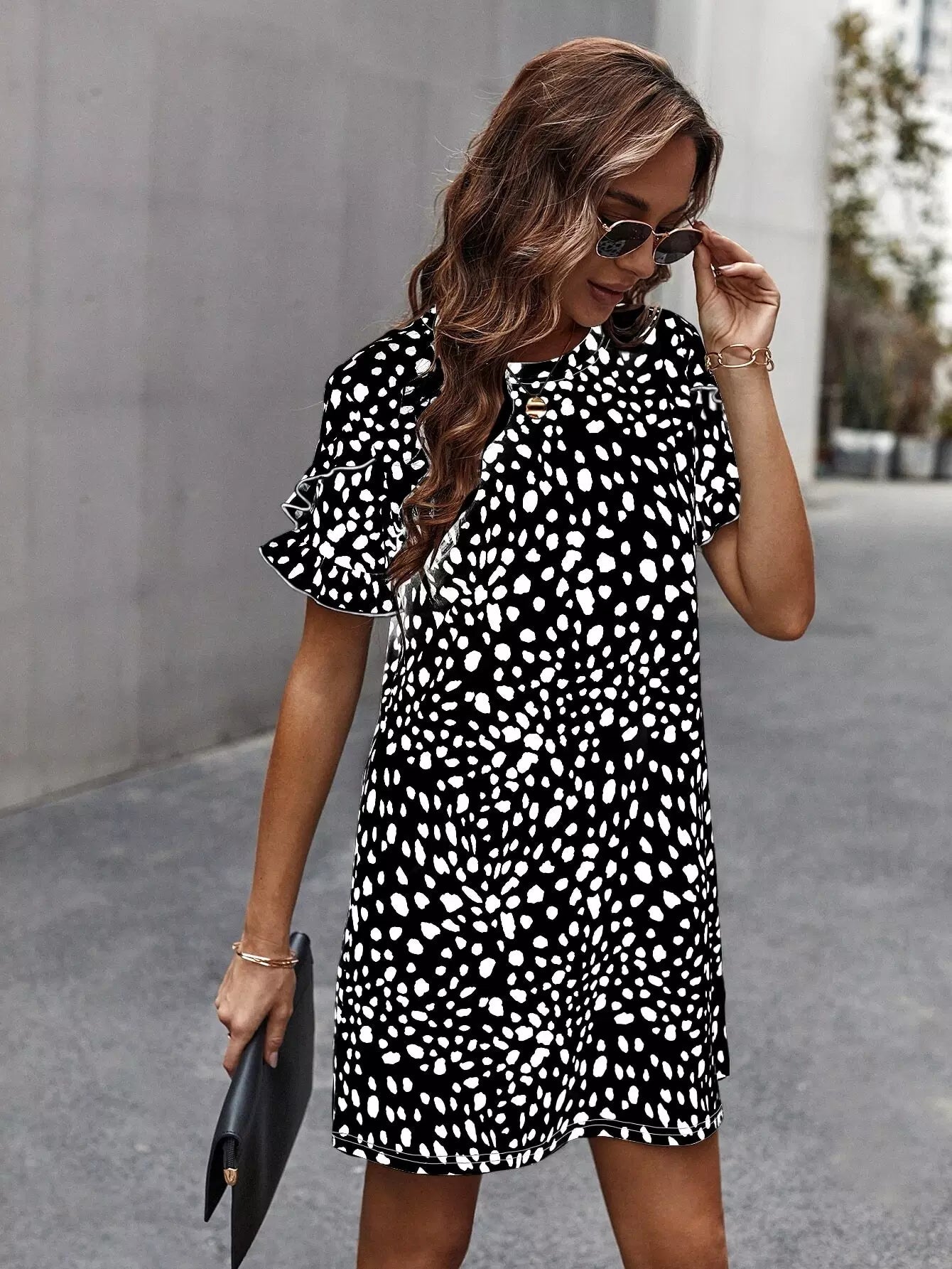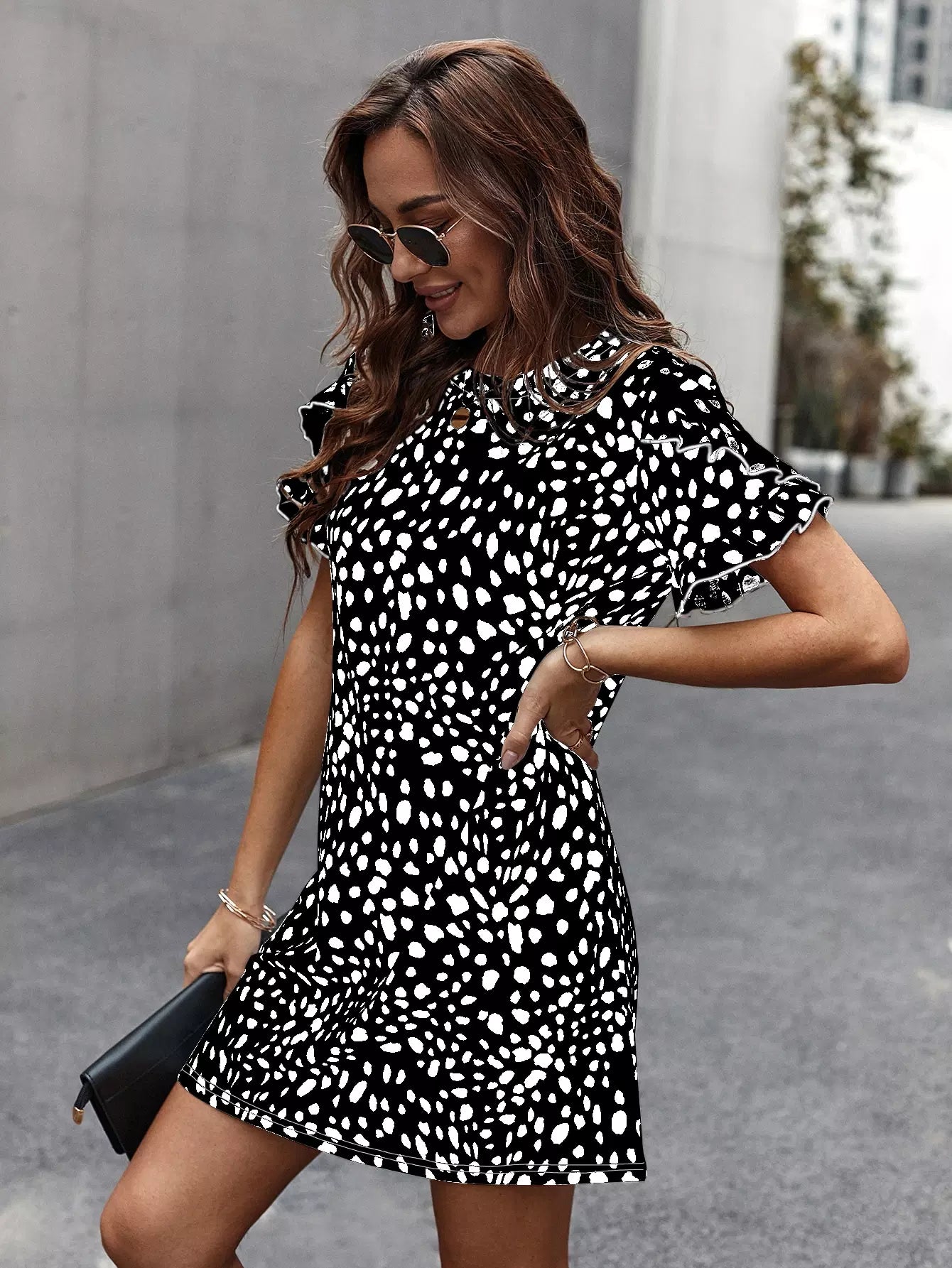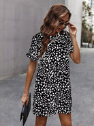 Dalmatian Print Ruffle Trim Dress