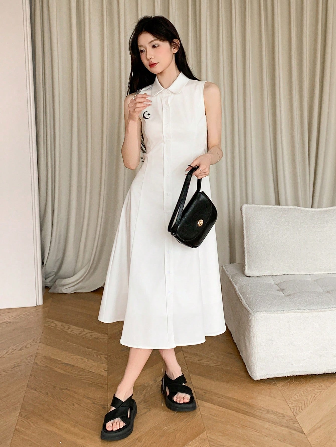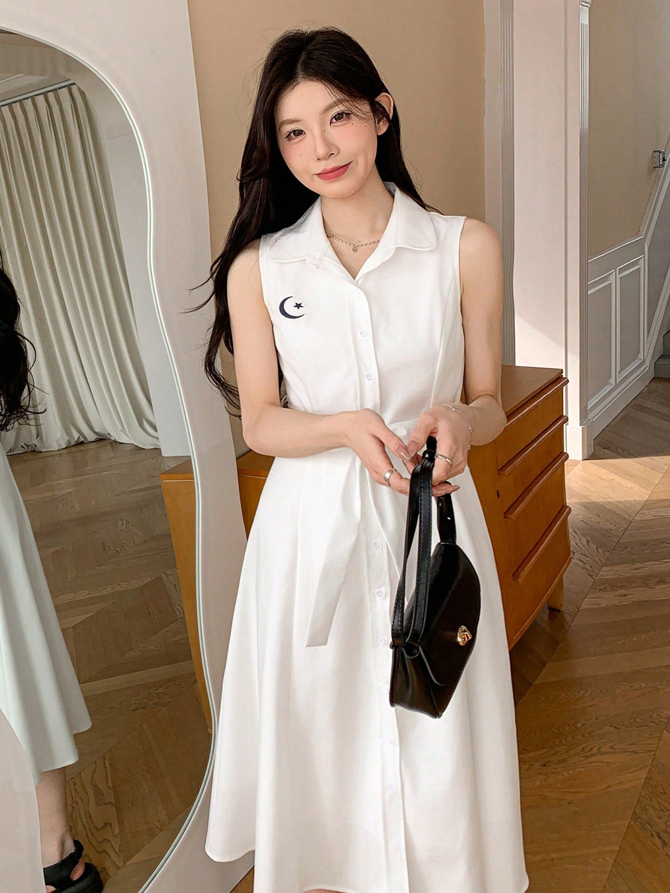 DAZY Embroidered Sleeveless Mid-Length Dress For Women Sundress Shirt Dress,Casual Women Dresses Without Belt