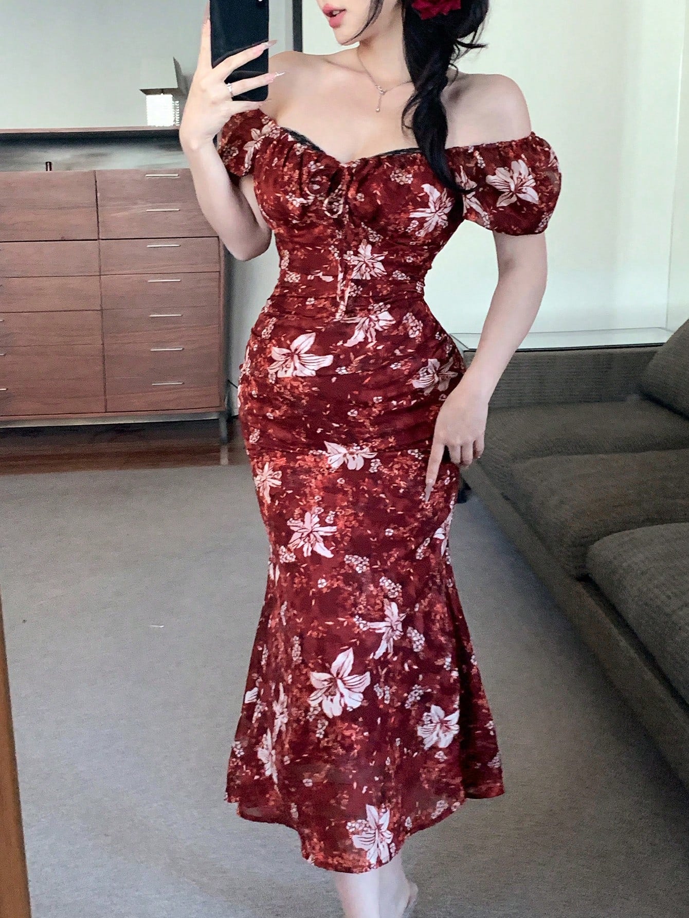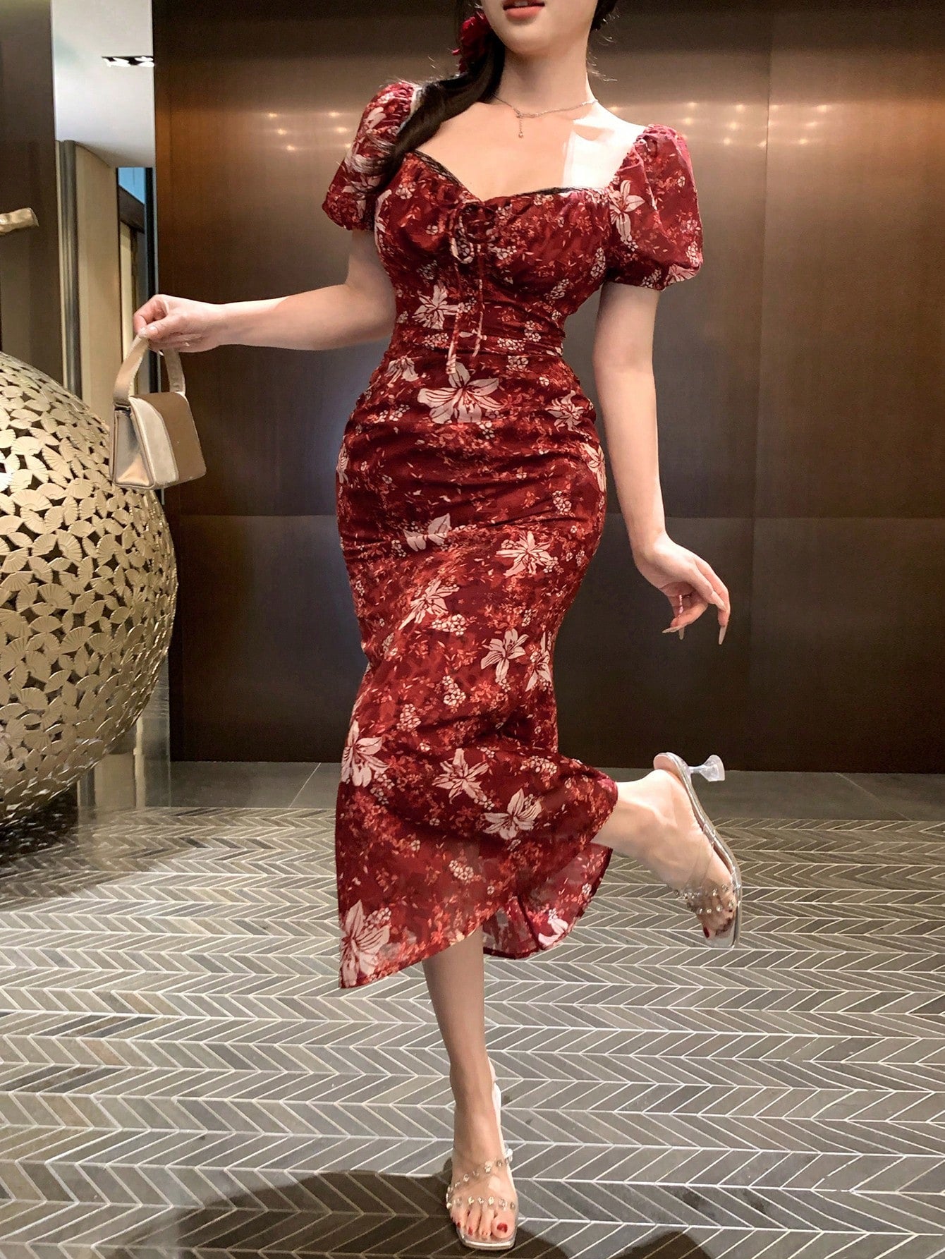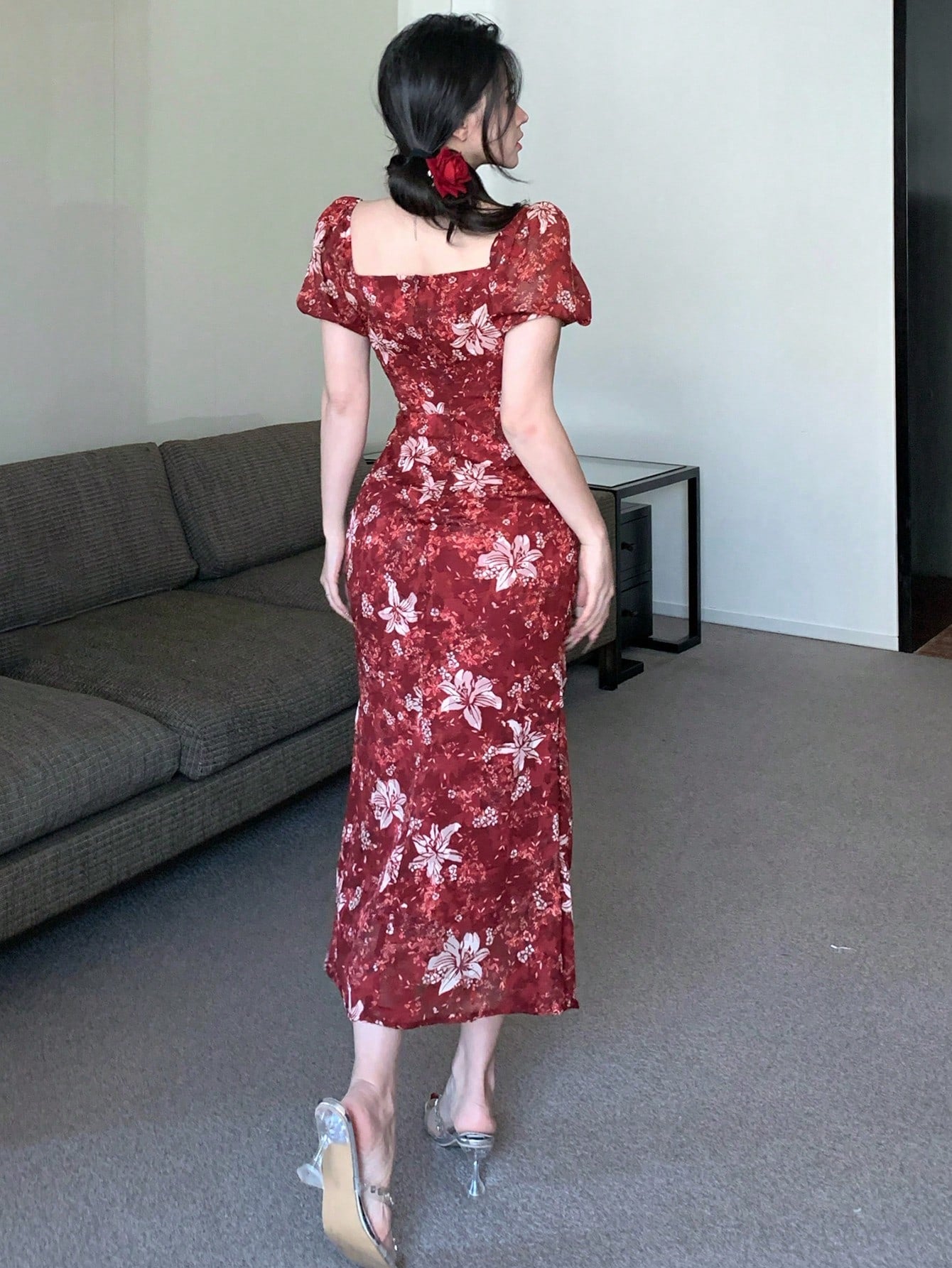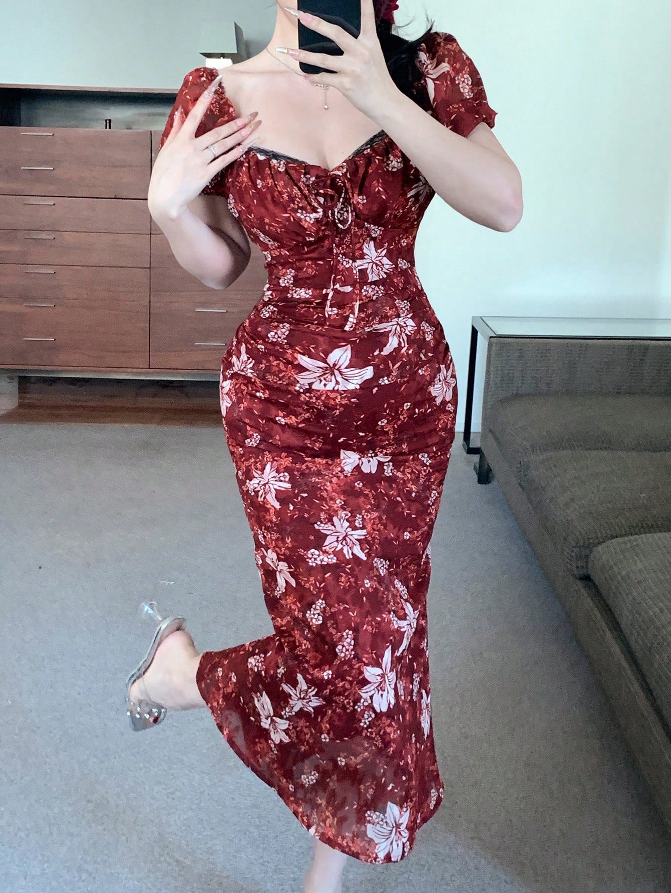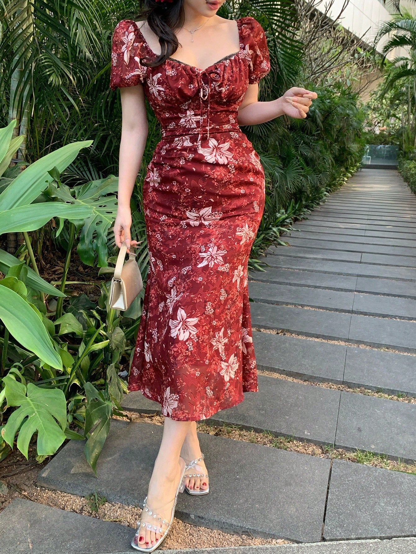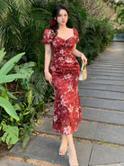 DAZY Spring New Arrival Valentine's Day Plant Print Waist Tied Sundress With Muses Without Belt