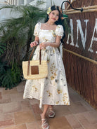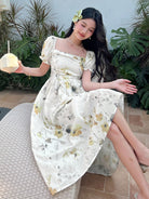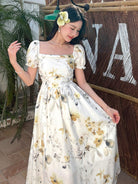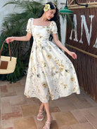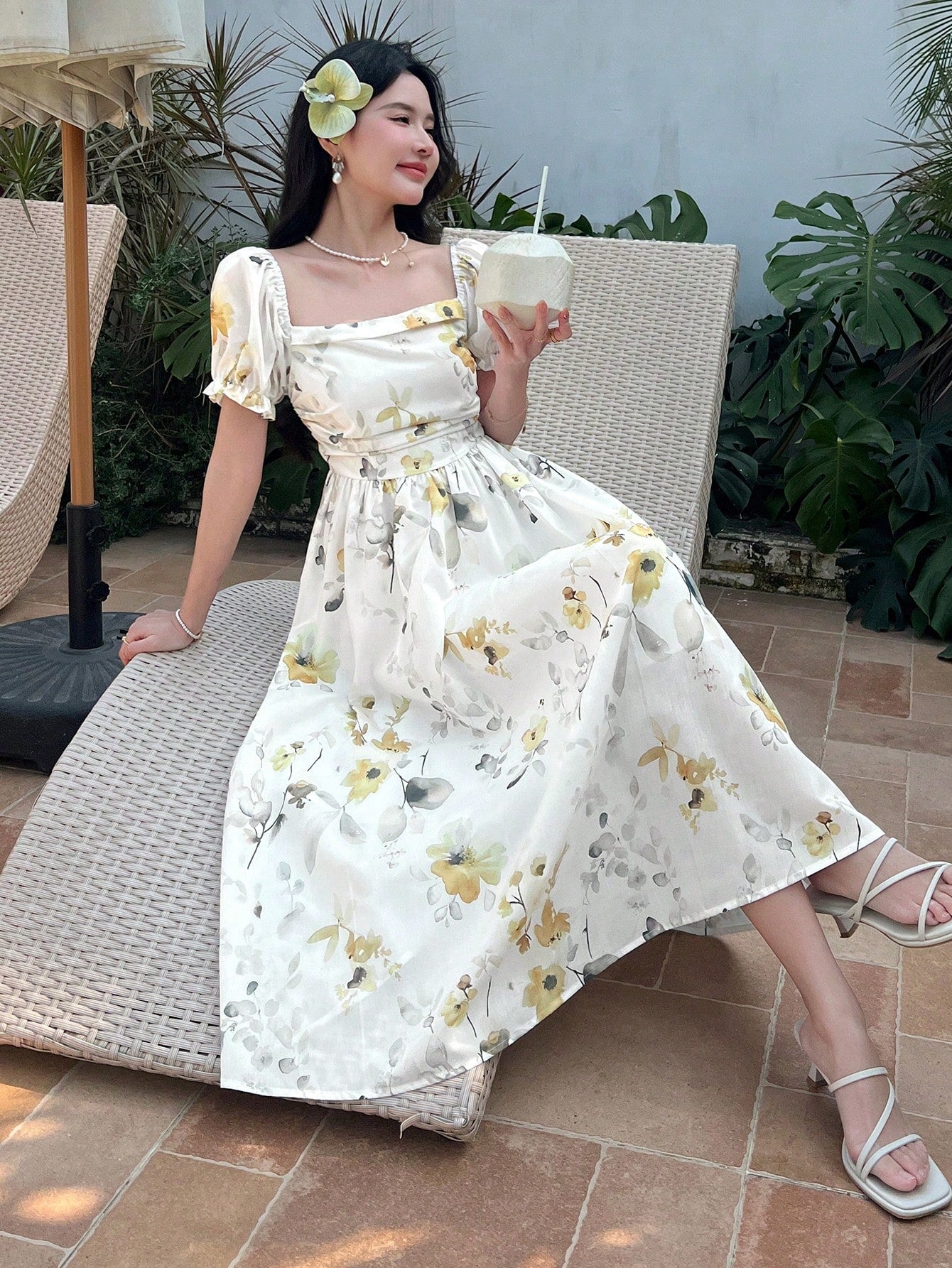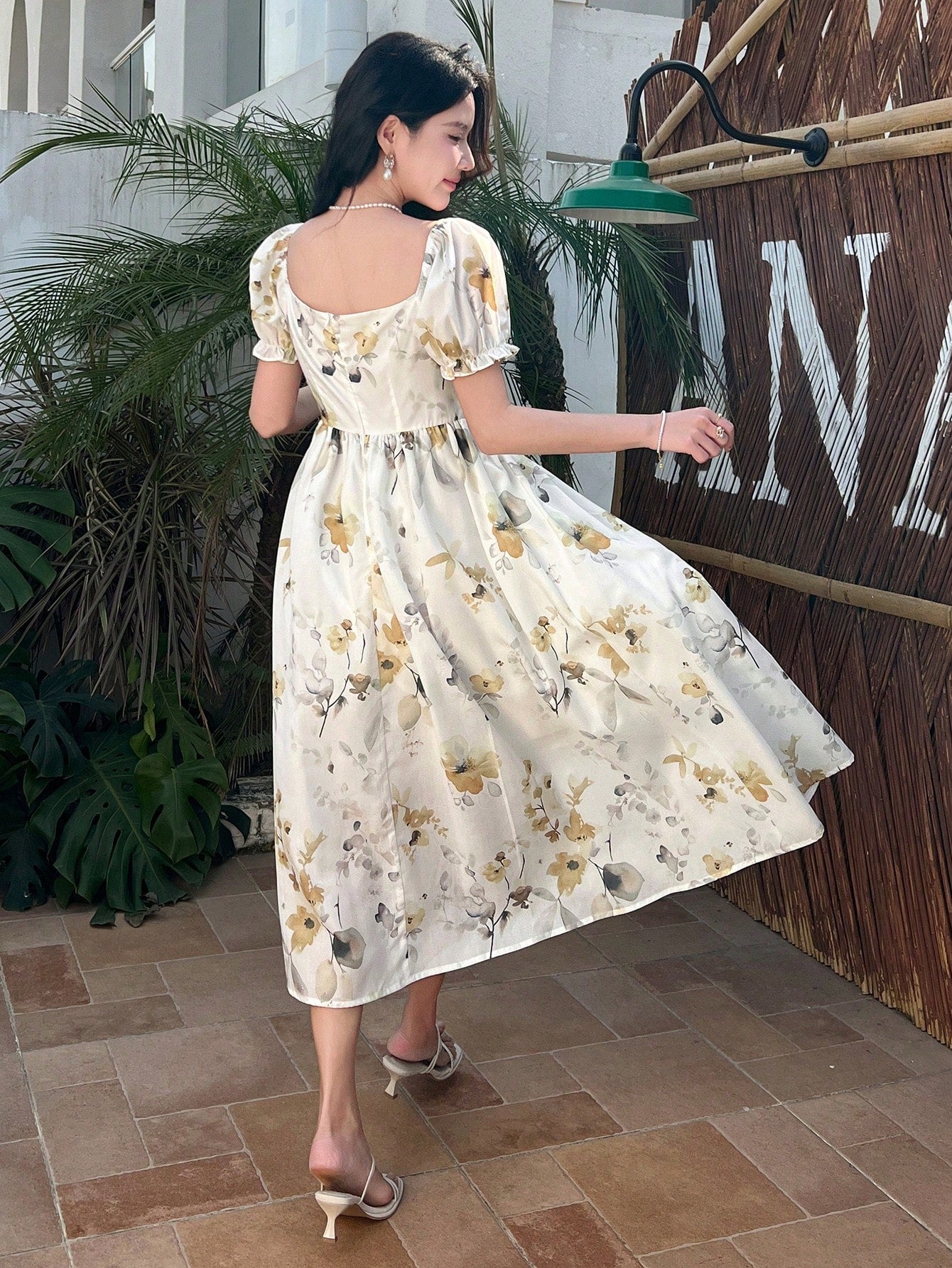 DAZY Women Square Neck Short Sleeve Floral Long Dress