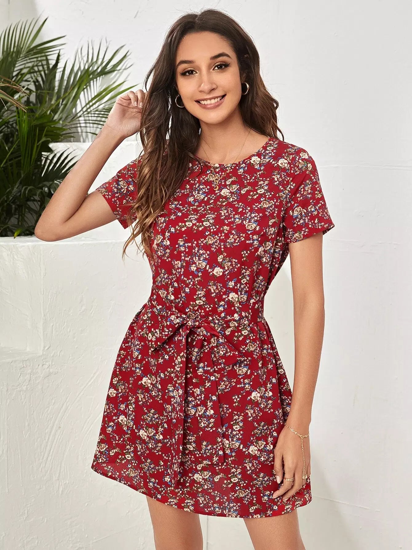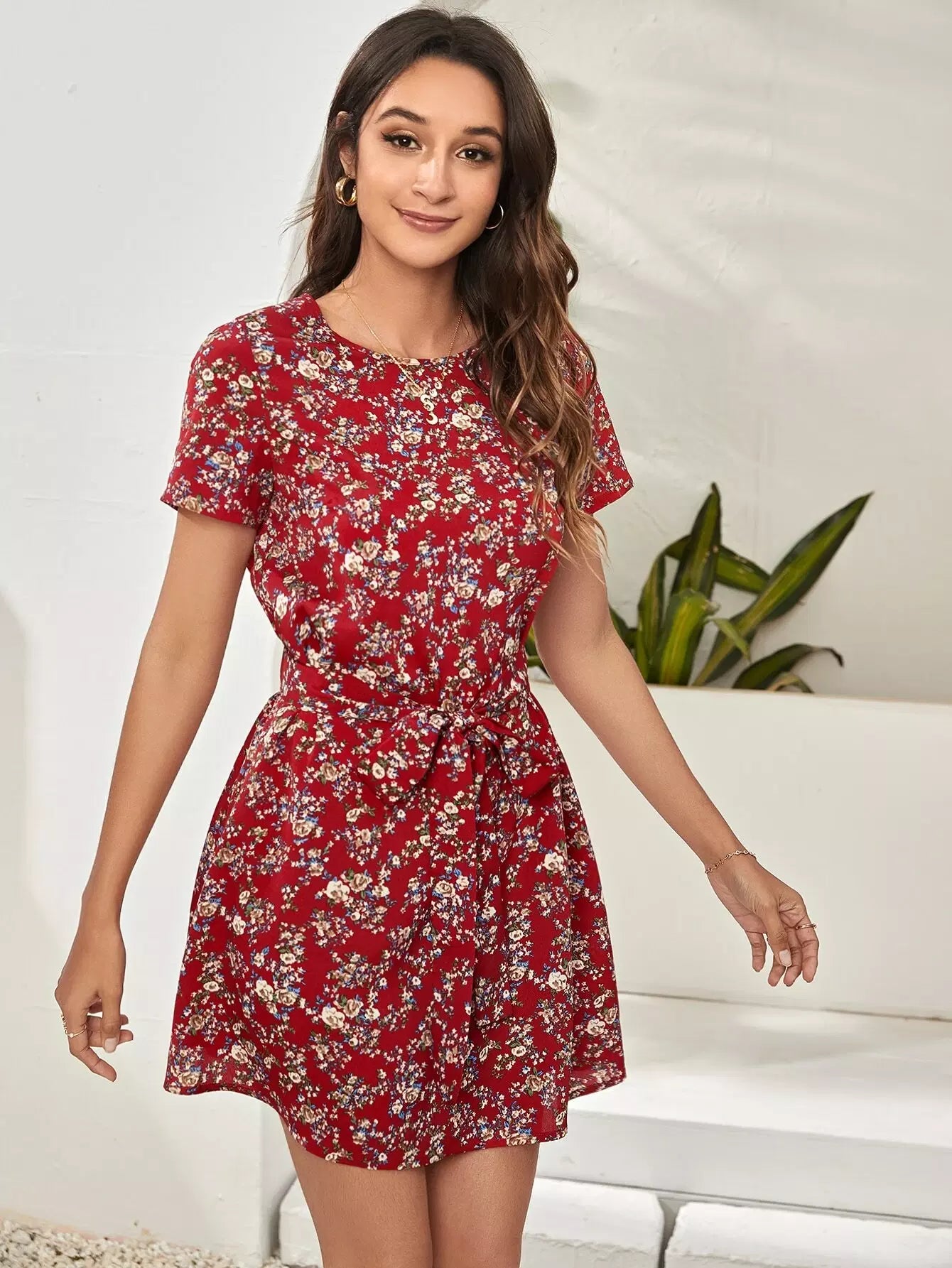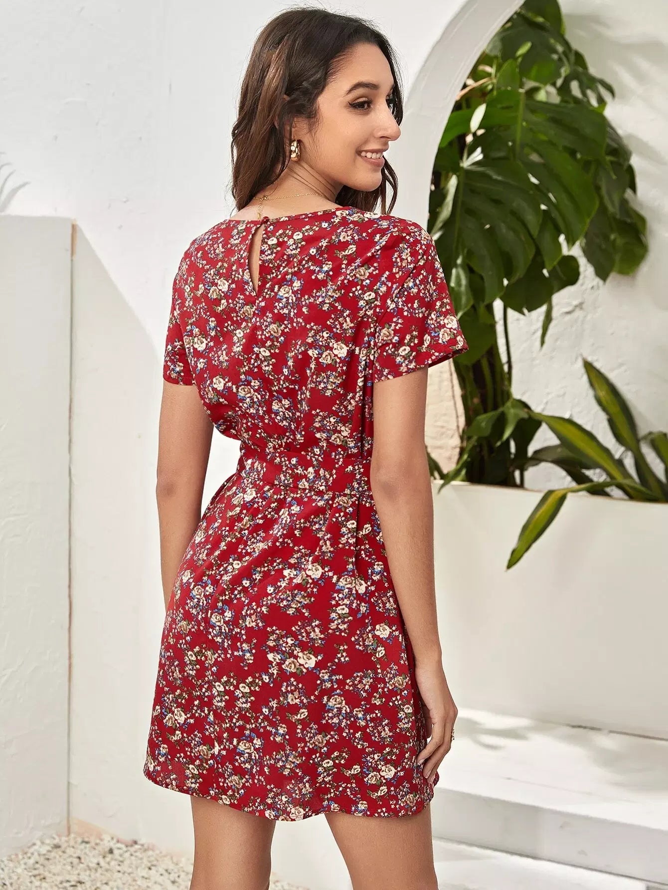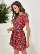 Ditsy Floral Keyhole Back Dress Without Belt