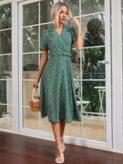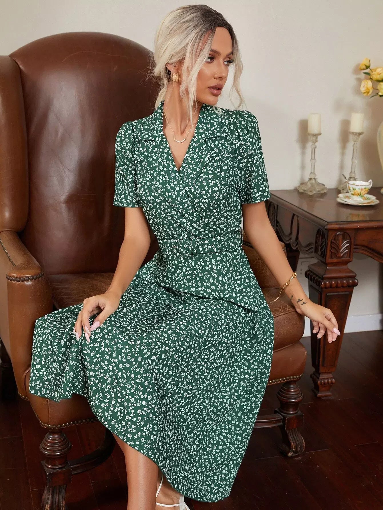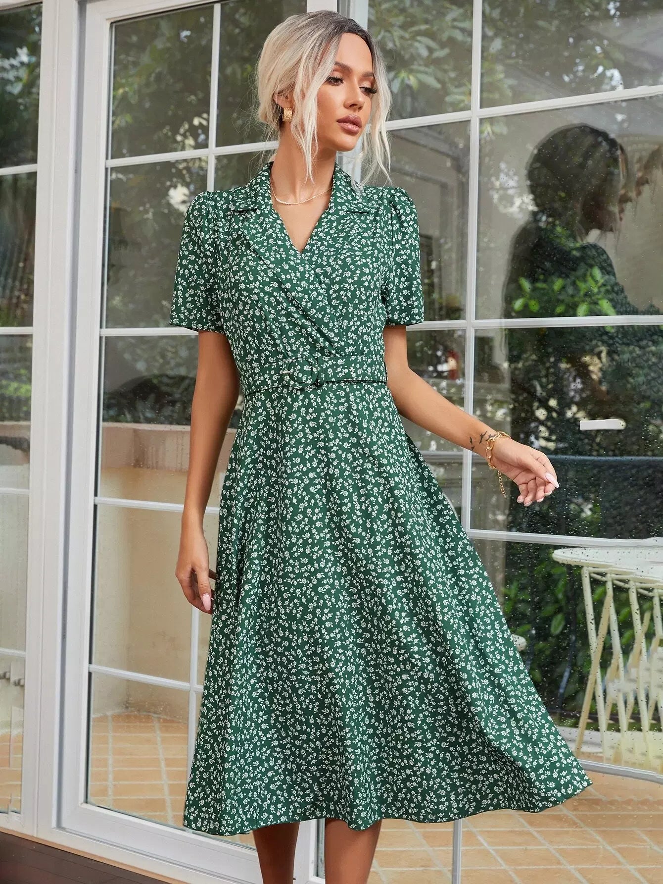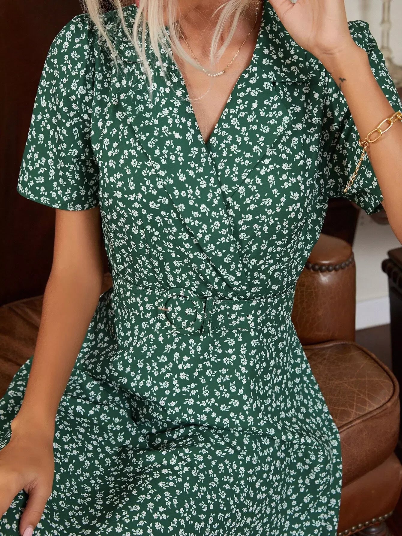 Ditsy Floral Lapel Collar A-line Dress Without Belt