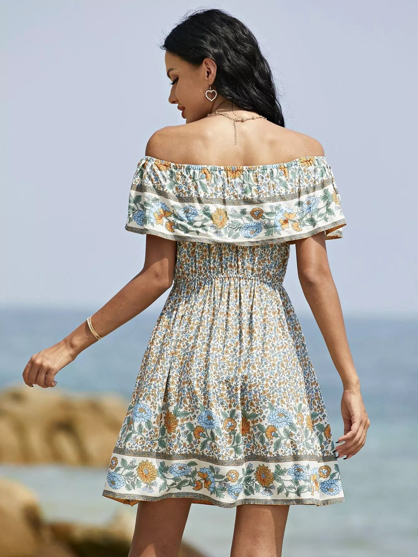 Ditsy Floral Print Bardot A-line Dress