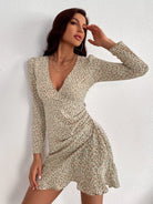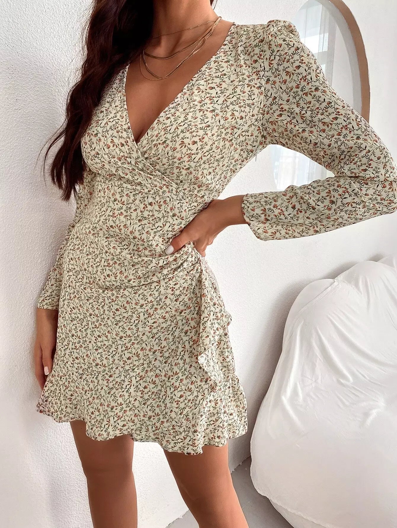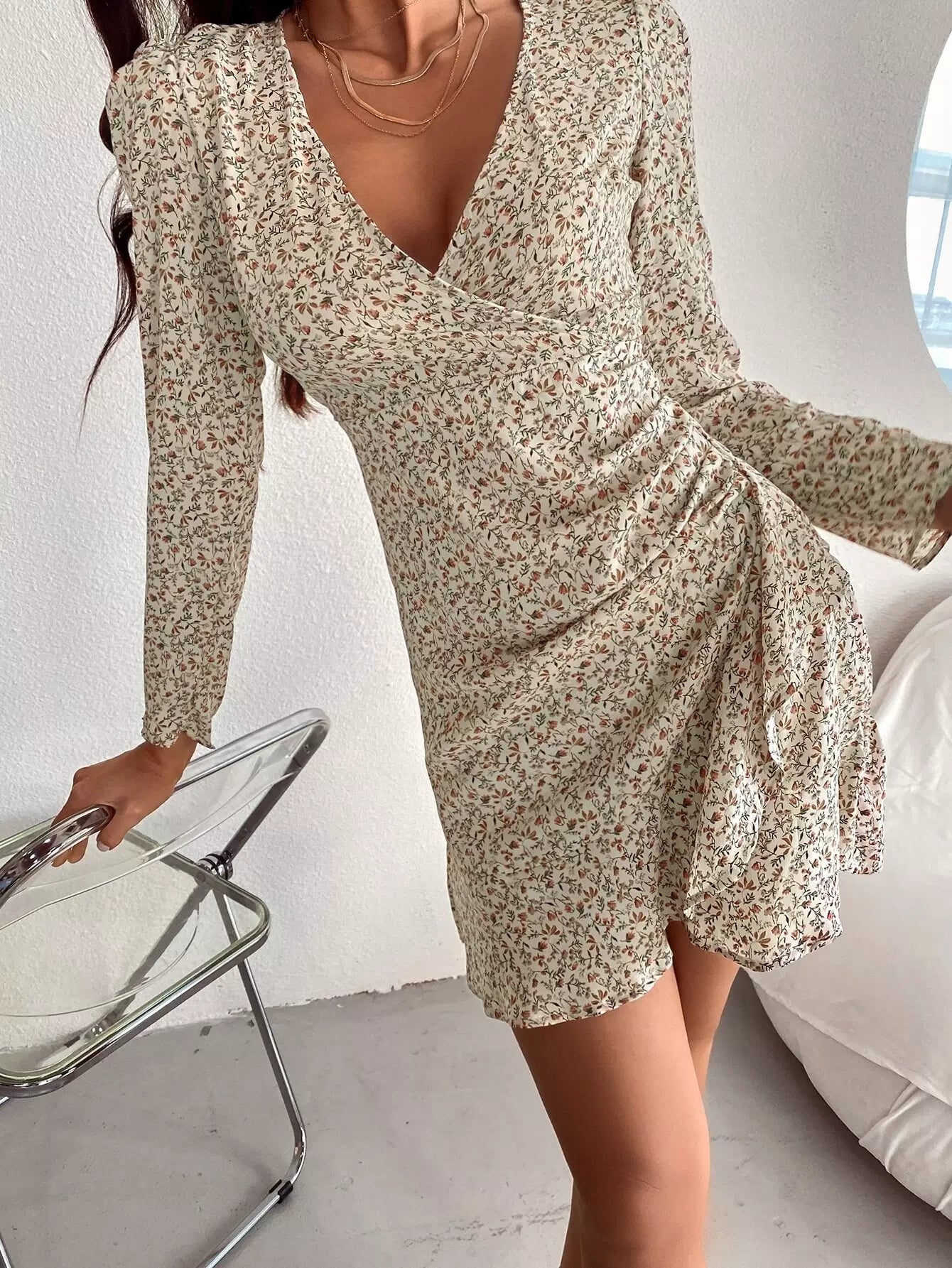 Ditsy Floral Print Surplice Front Ruffle Hem Dress