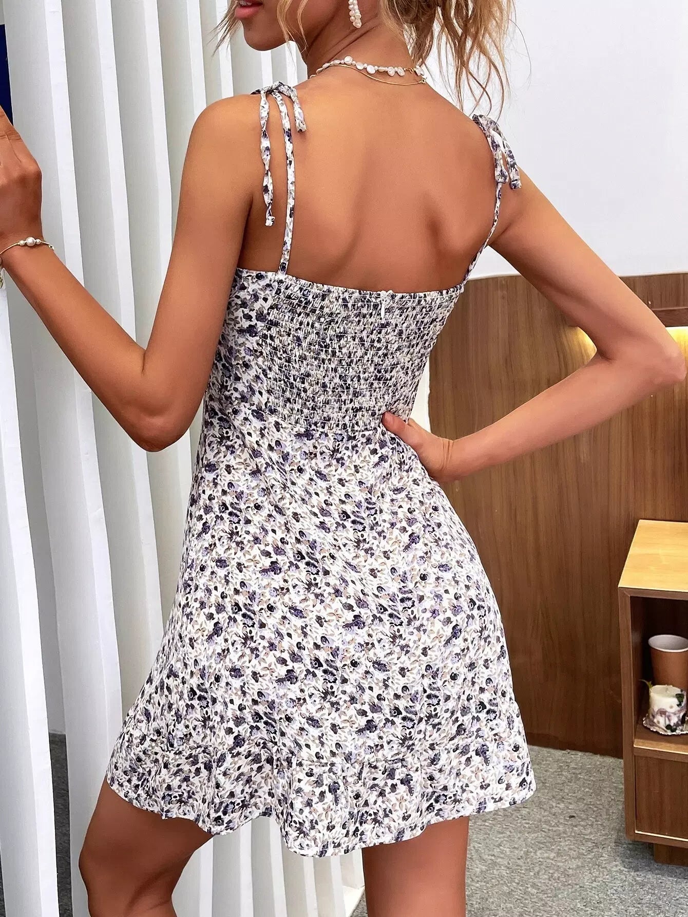 Ditsy Floral Shirred Knot Cami Dress