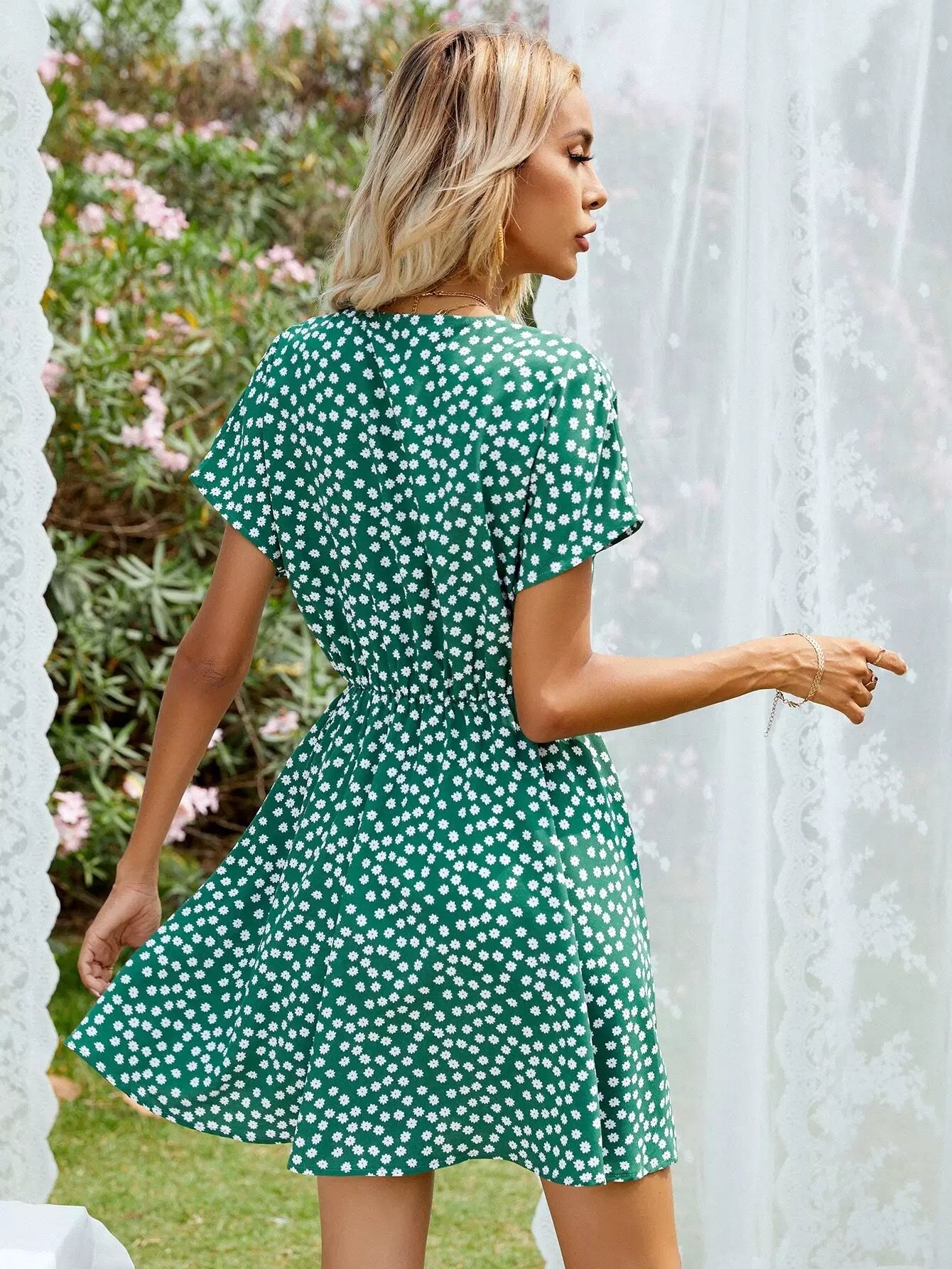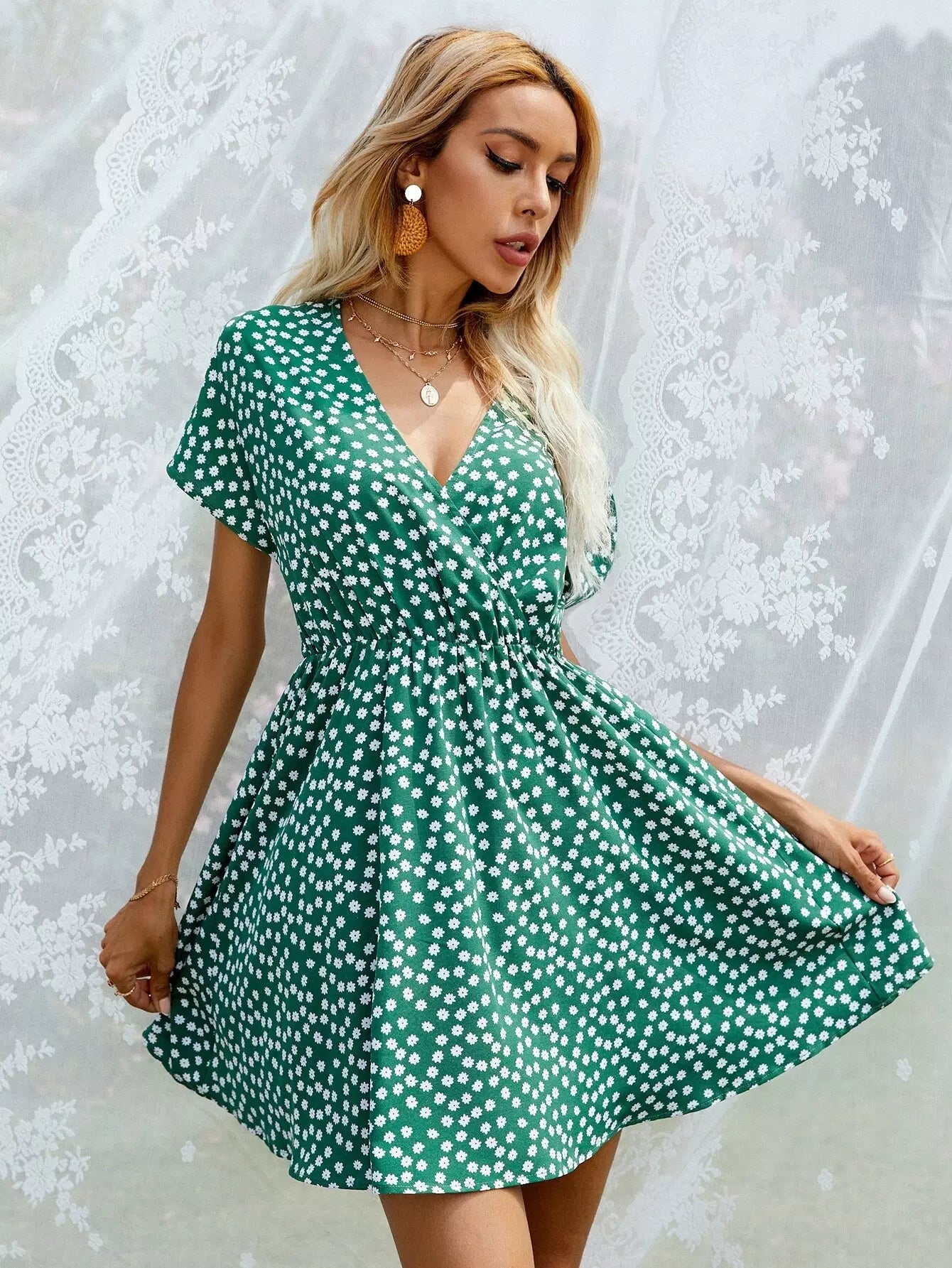 Ditsy Floral Surplice Front Swing Dress