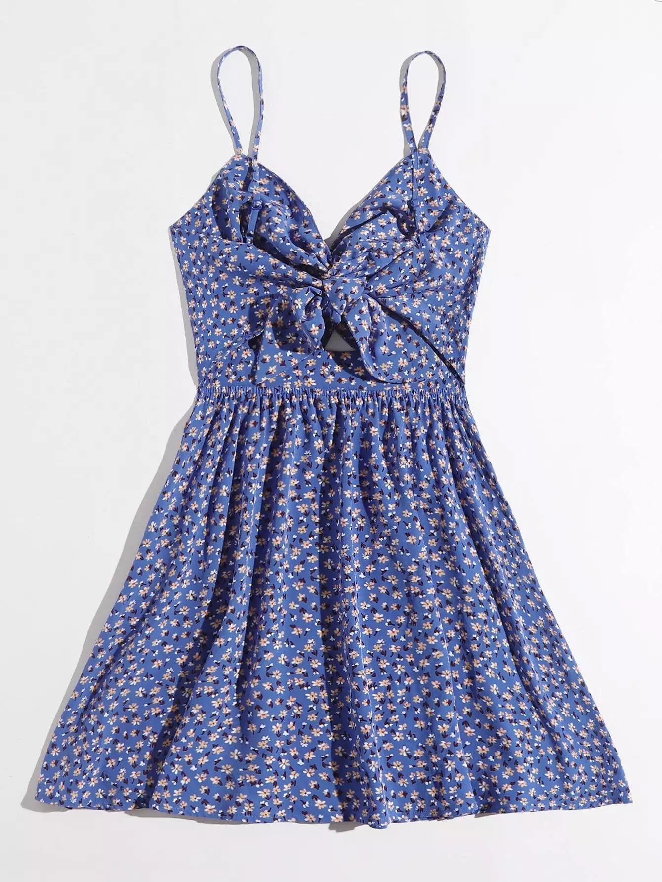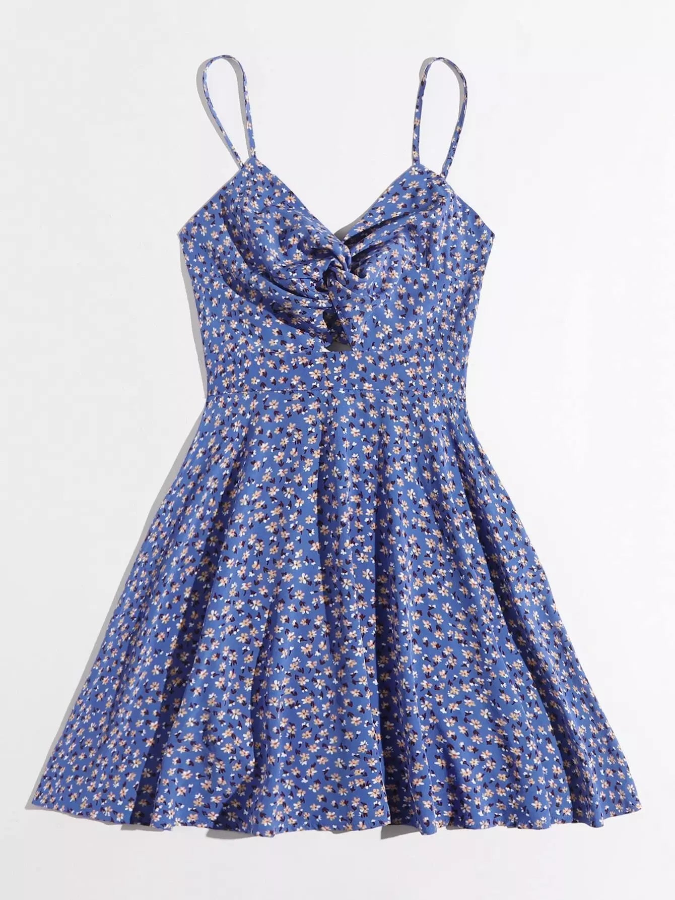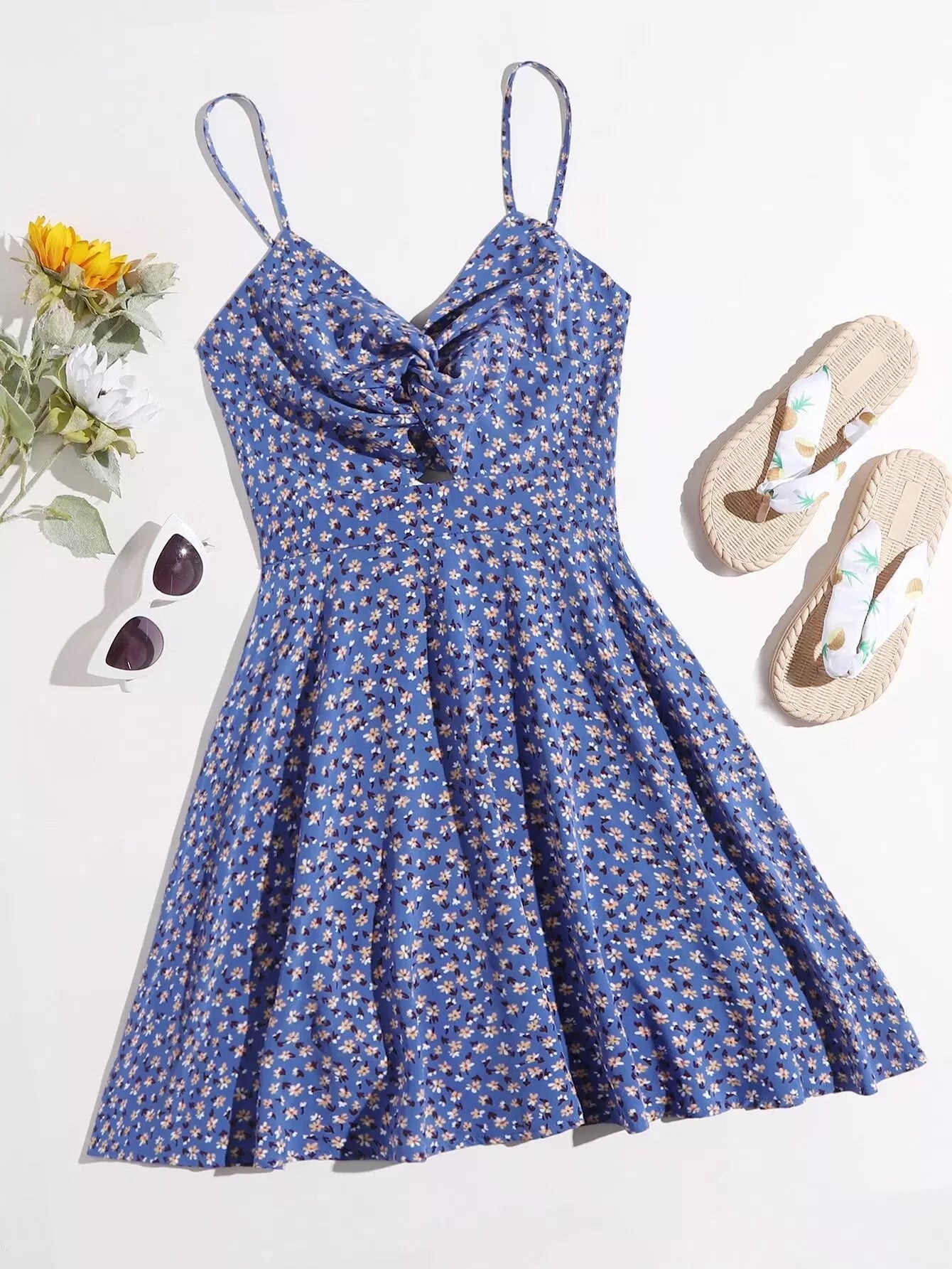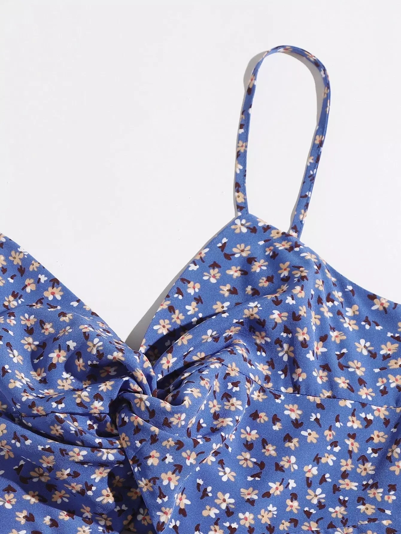 Ditsy Floral Twist Front Peekaboo Cami Dress