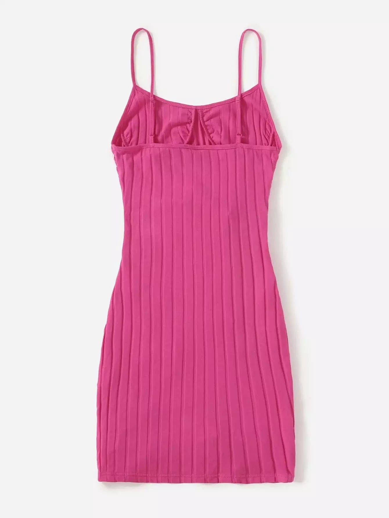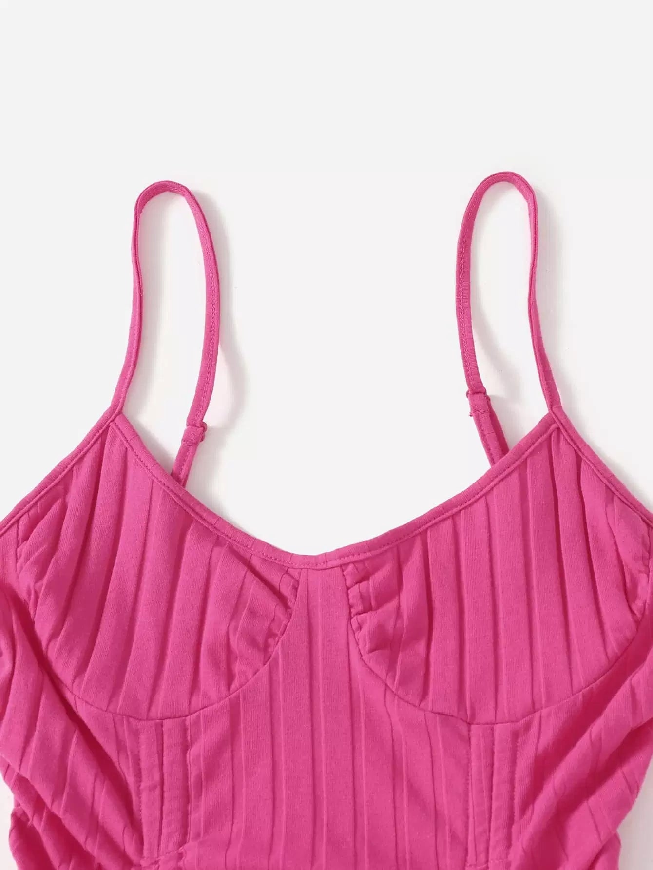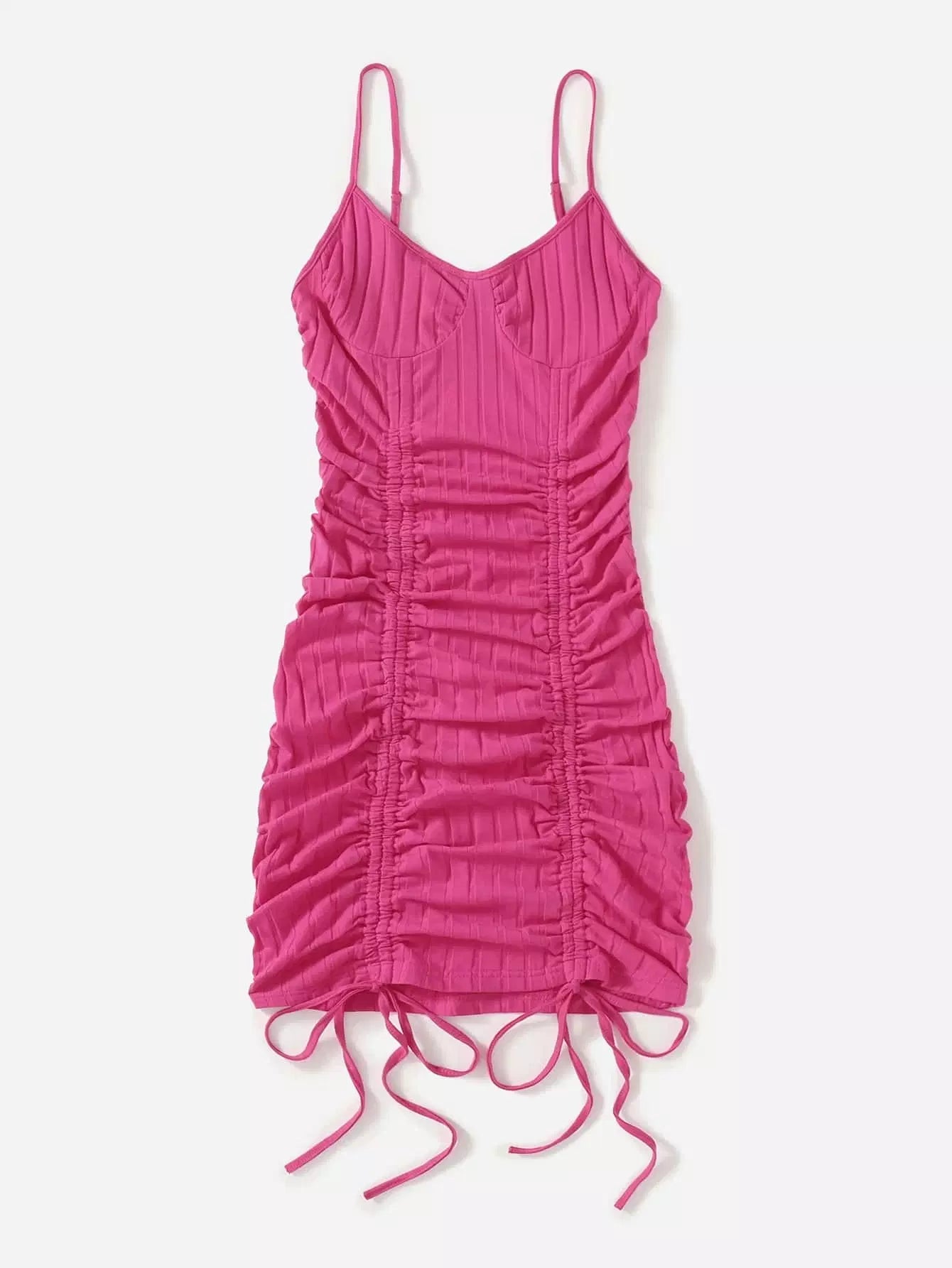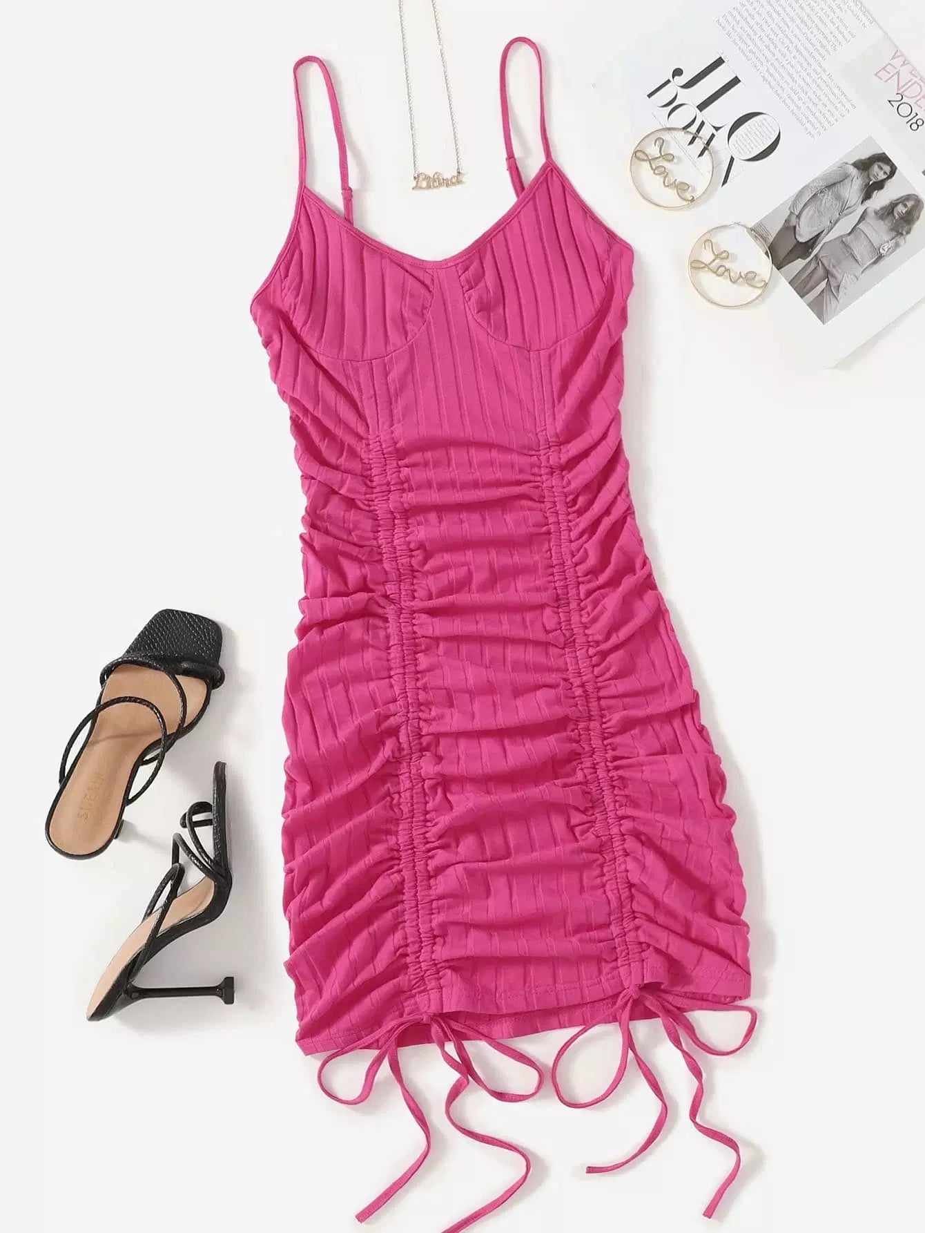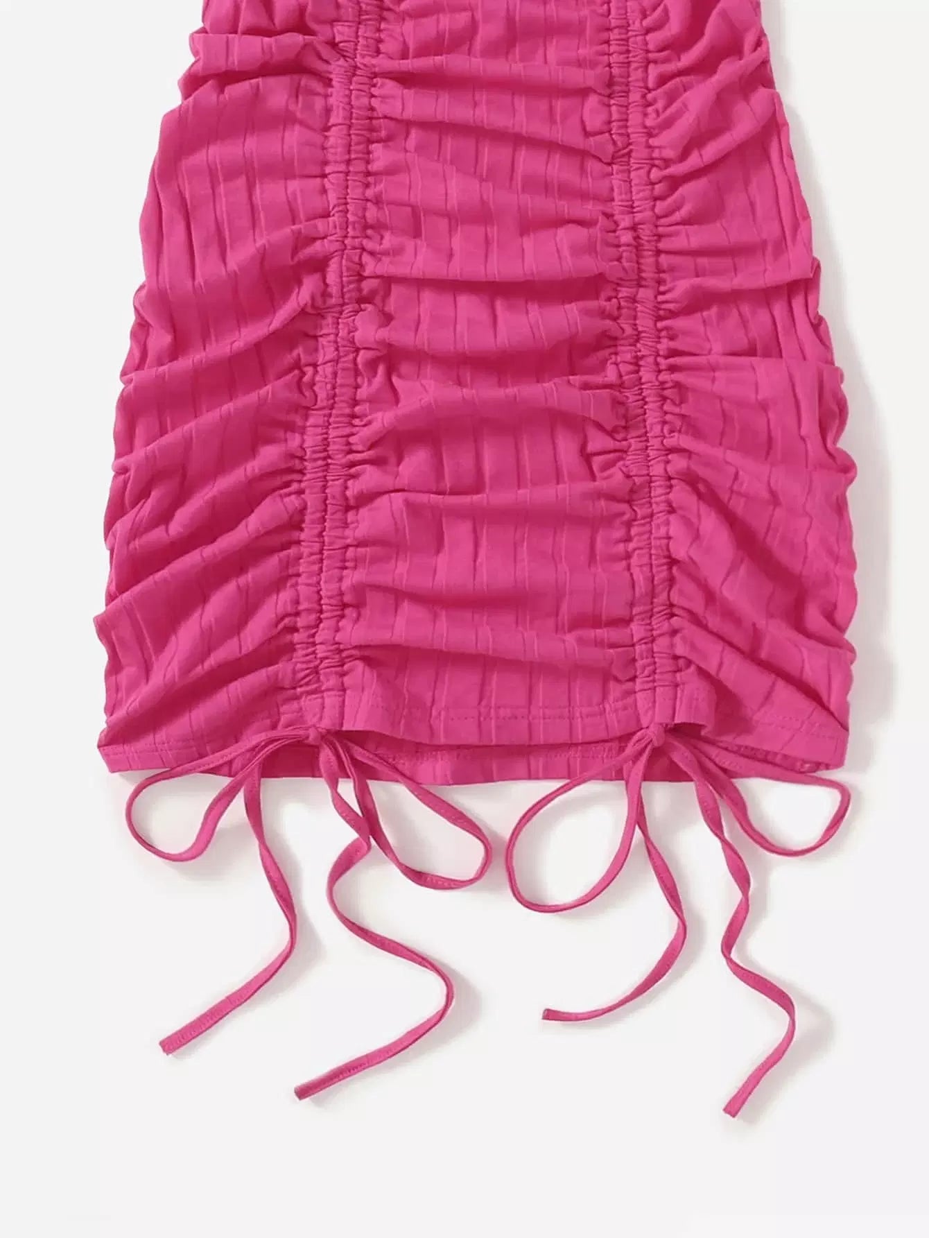 Drawstring Ruched Rib Knit Cami Bodycon Dress