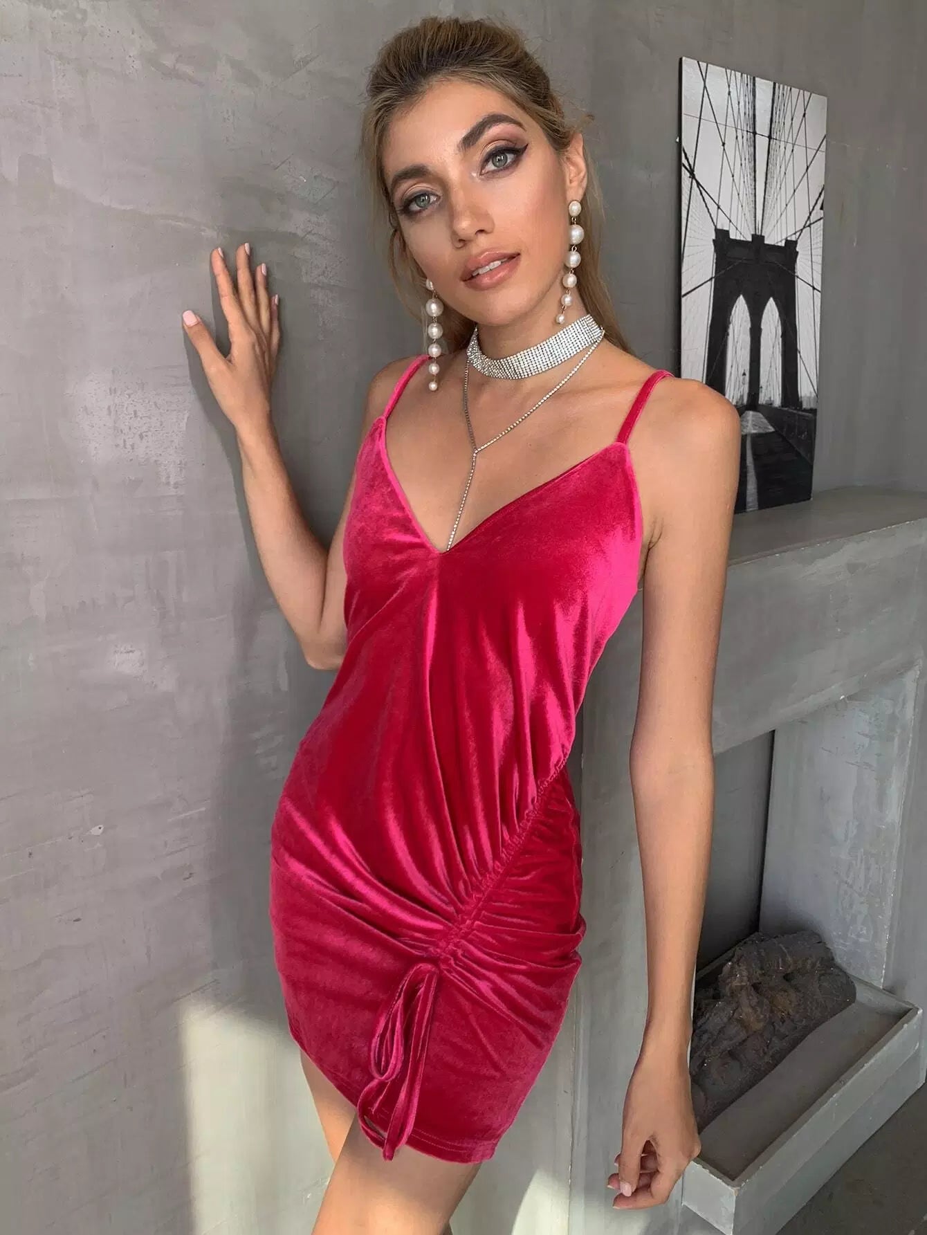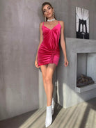 Drawstring Ruched Velvet Cami Dress