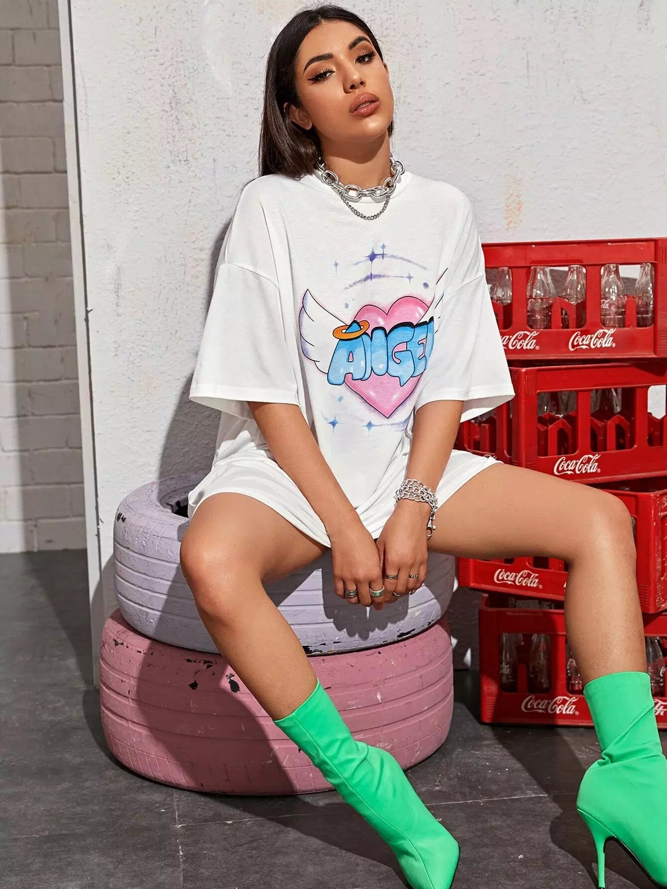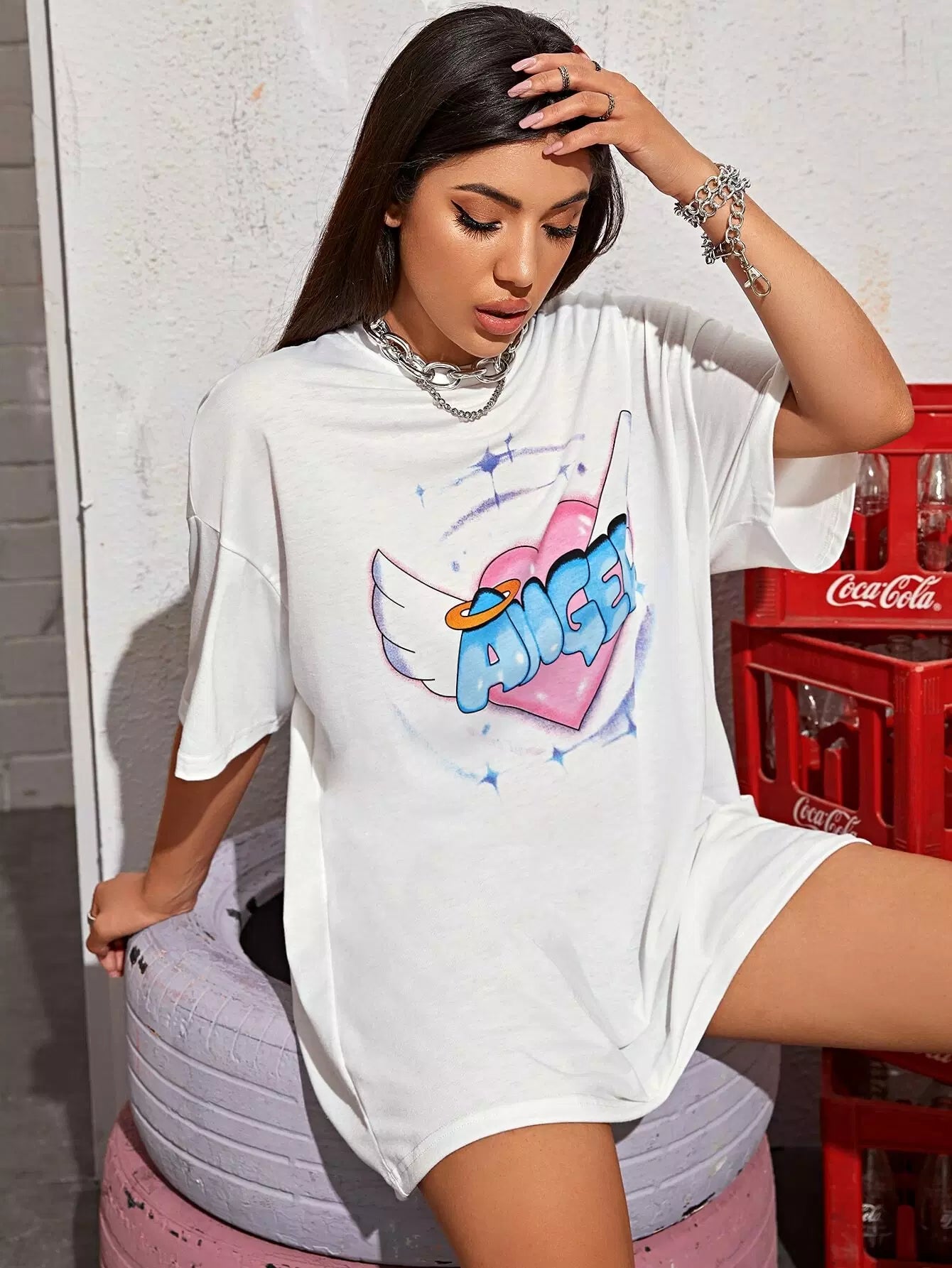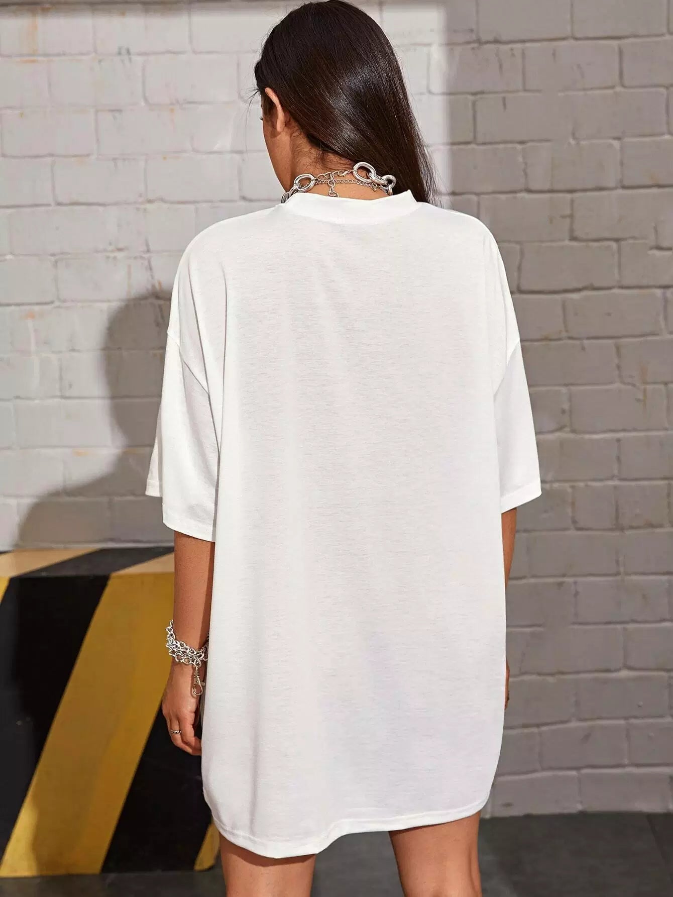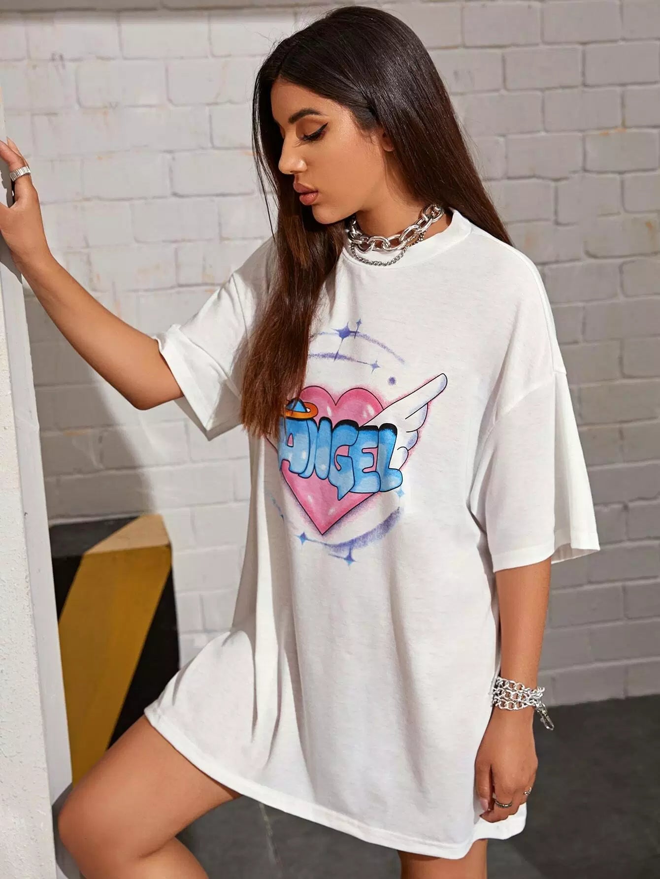 Drop Shoulder Letter & Heart Print Tee Dress
