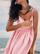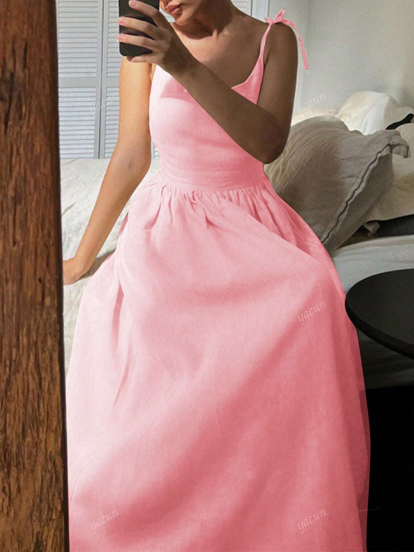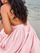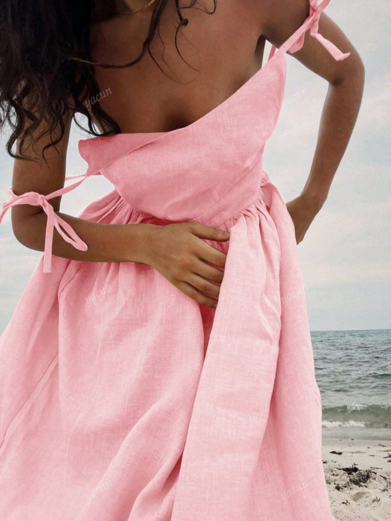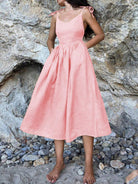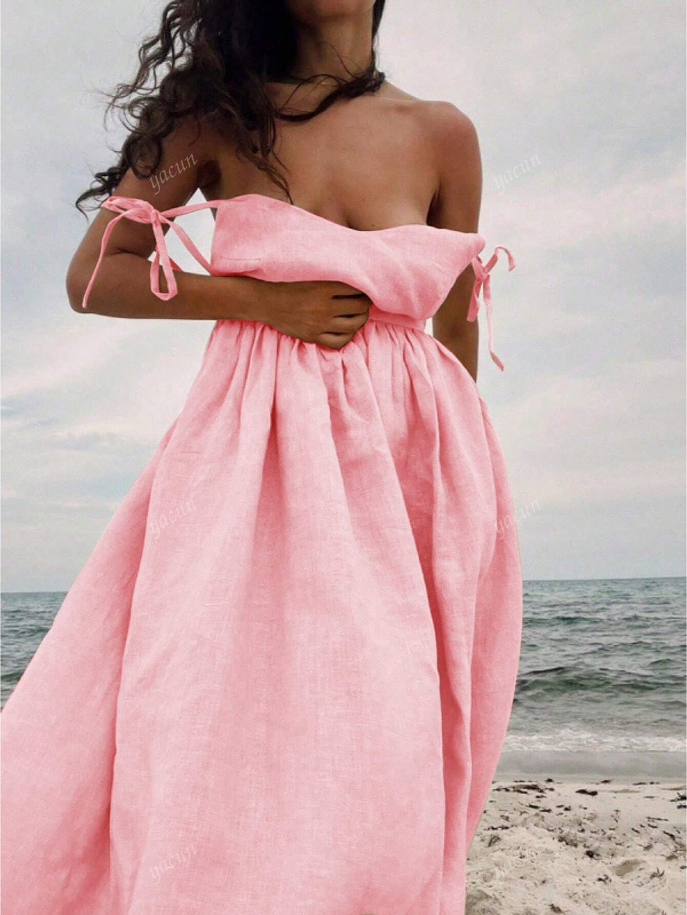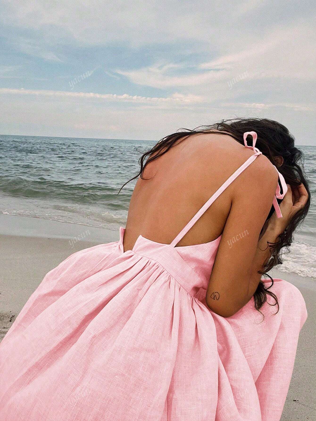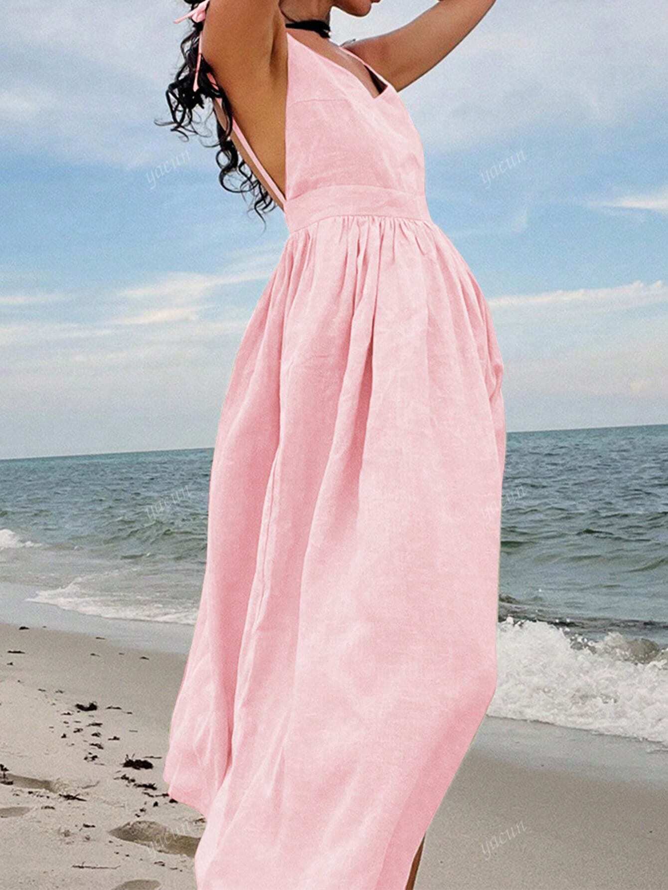 Elegant French Style Vacation Sexy Backless Linen Strap Dress, Bohemian Resort Long Dress, Spring/Summer