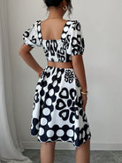 women Elenzga Women's Elegant Floral Print Off Shoulder Puff Sleeve Dress
