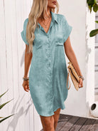 women EMERY ROSE Women's Summer Metallic Batwing Short Sleeve Casual Shirt Dress For New Year Holiday Party Clothes