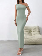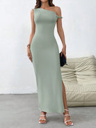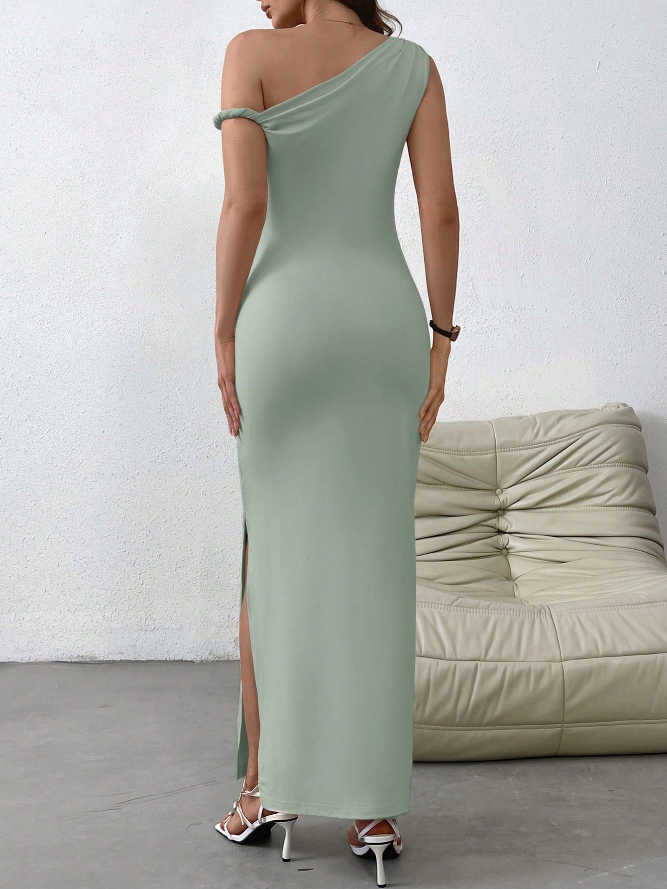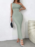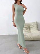 Firerie Apricot Asymmetrical Neck Knit Bodycon Dress Minimalist & Fashionable Suitable For Summer