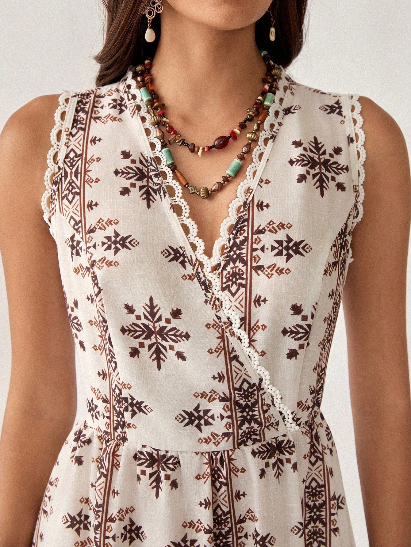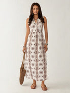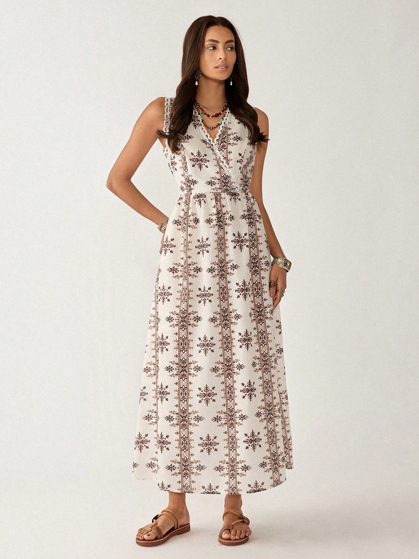 Florisole Bohemian Style V-Neck Embroidered Long Summer Vacation Dress For Women