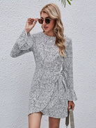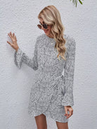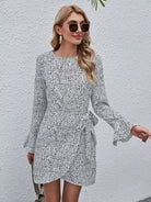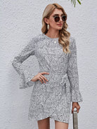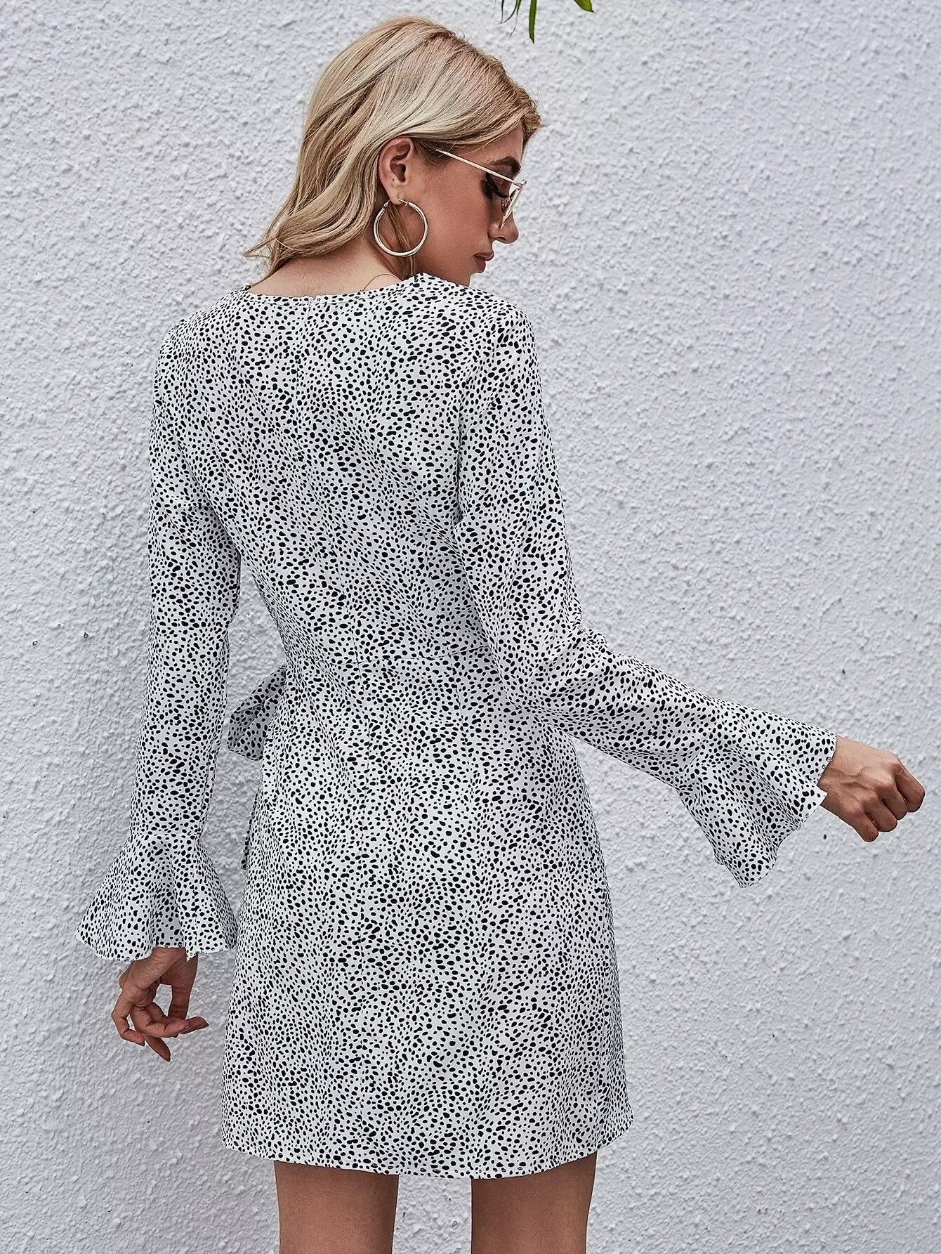 Flounce Sleeve Wrap Knotted All Over Print Dress