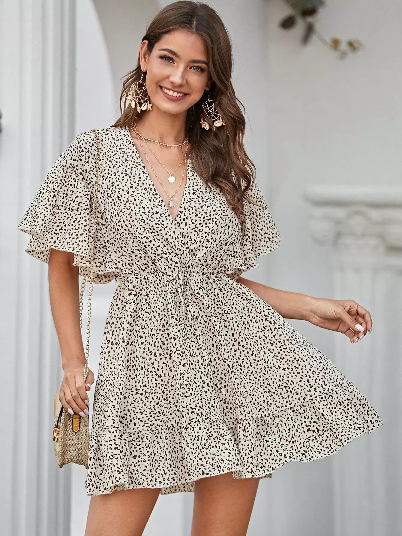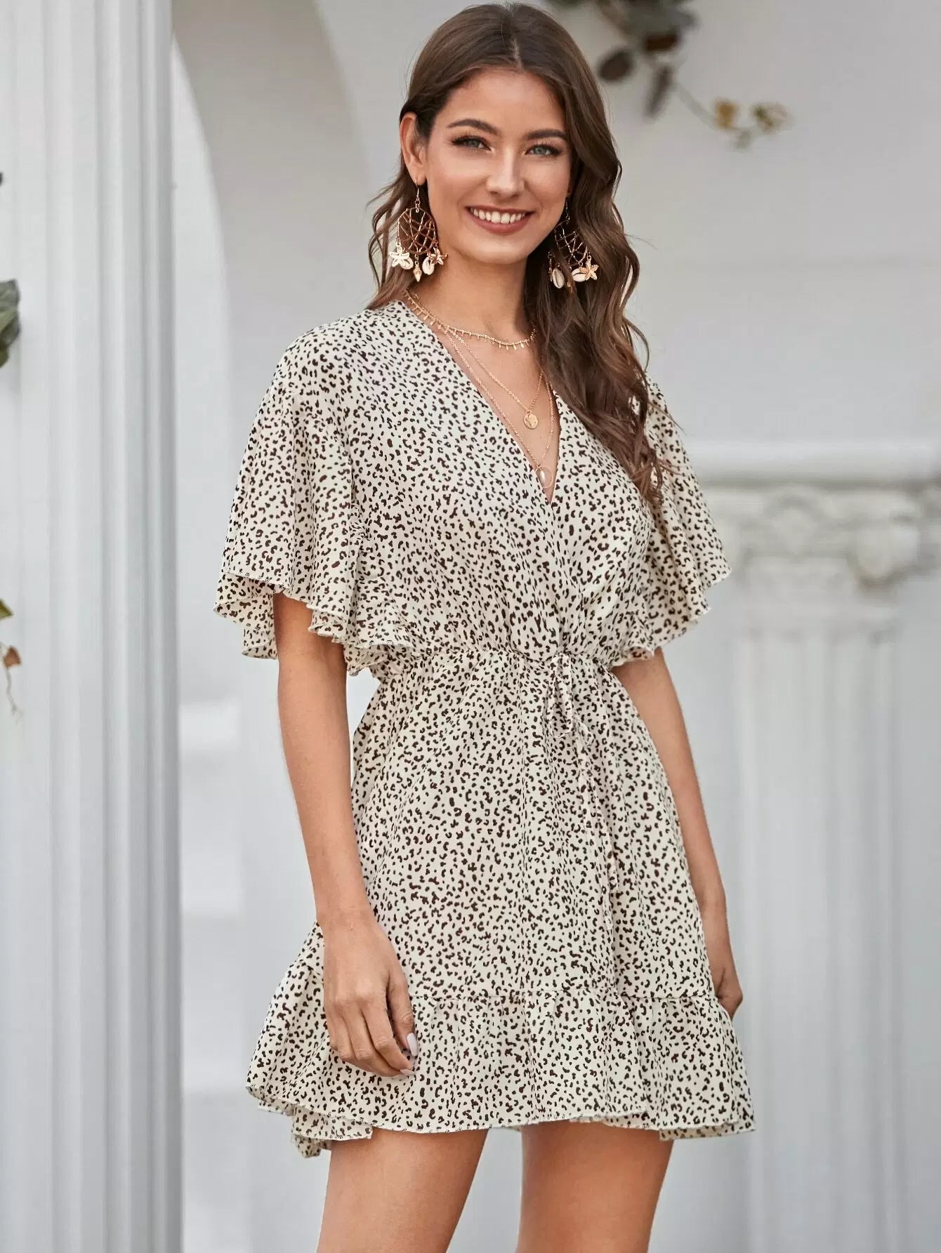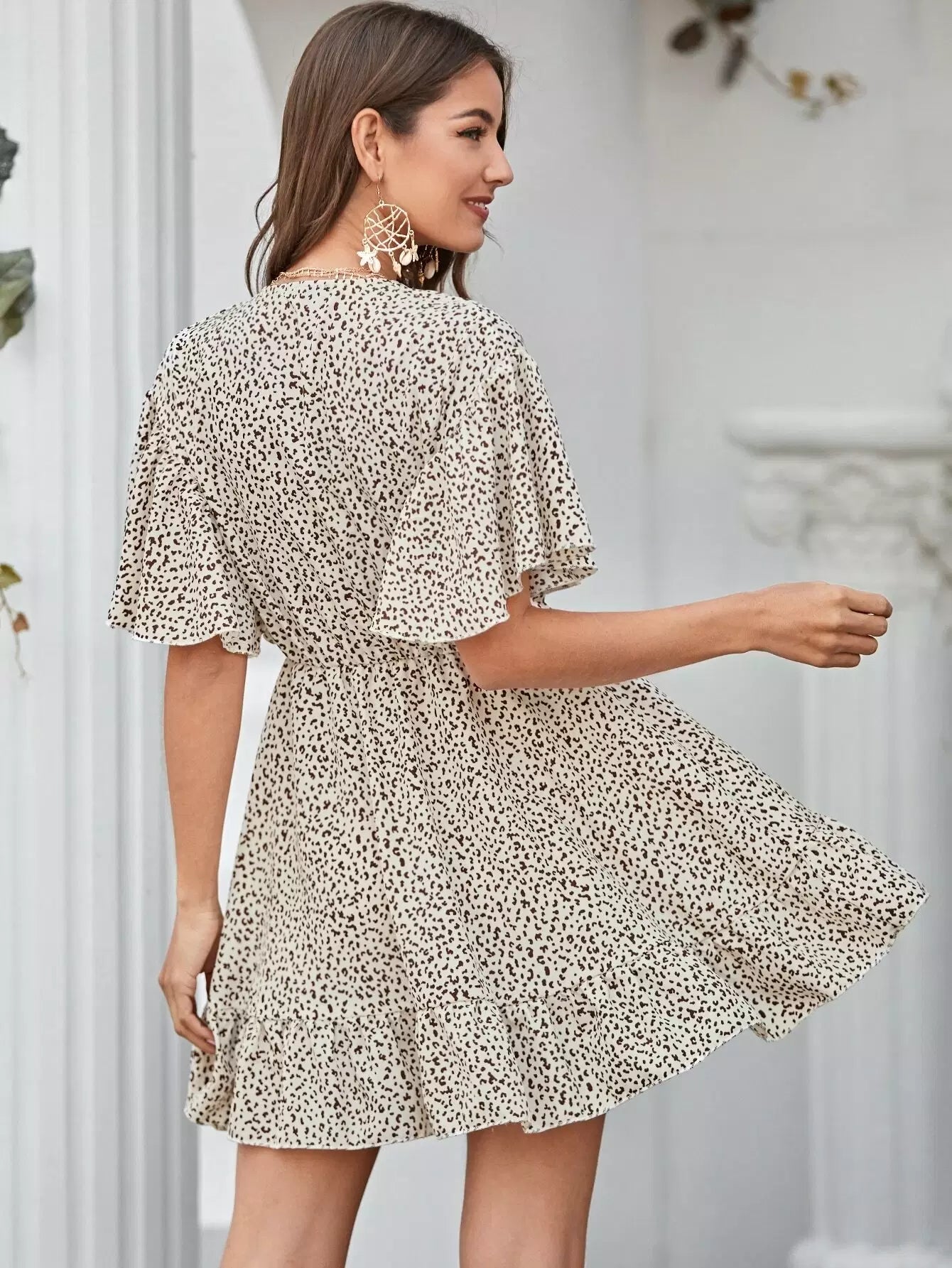 Flutter Sleeve Ruffle Hem Leopard Print Dress