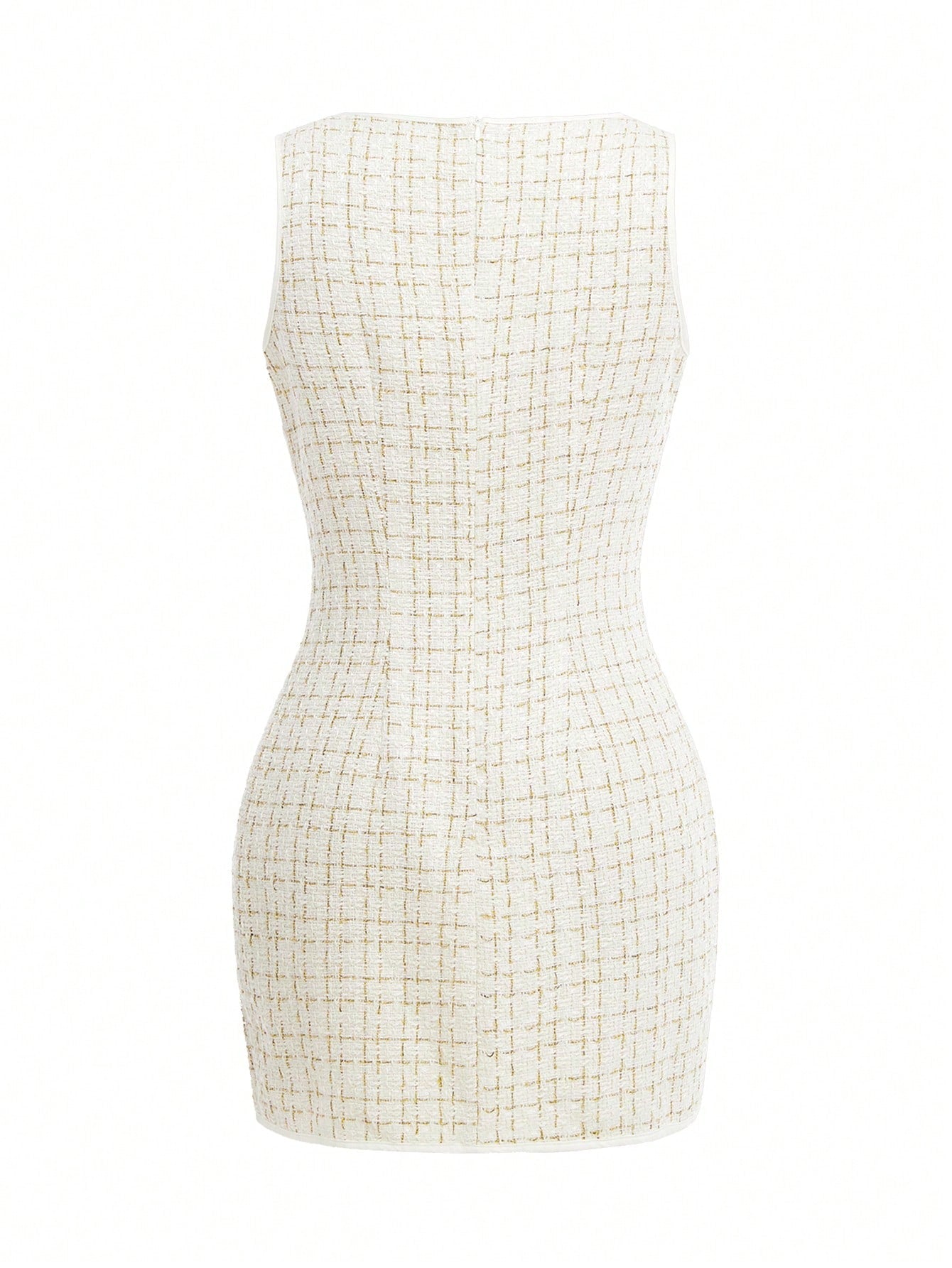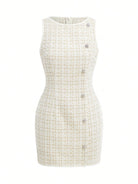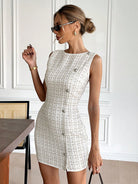 Frenchy Women's Plaid Round Neck Single-Breasted Sleeveless Elegant Mini Dress,Spring/Summer, Suitable