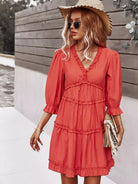 Women - Frill Trim High Waist A-line Dress