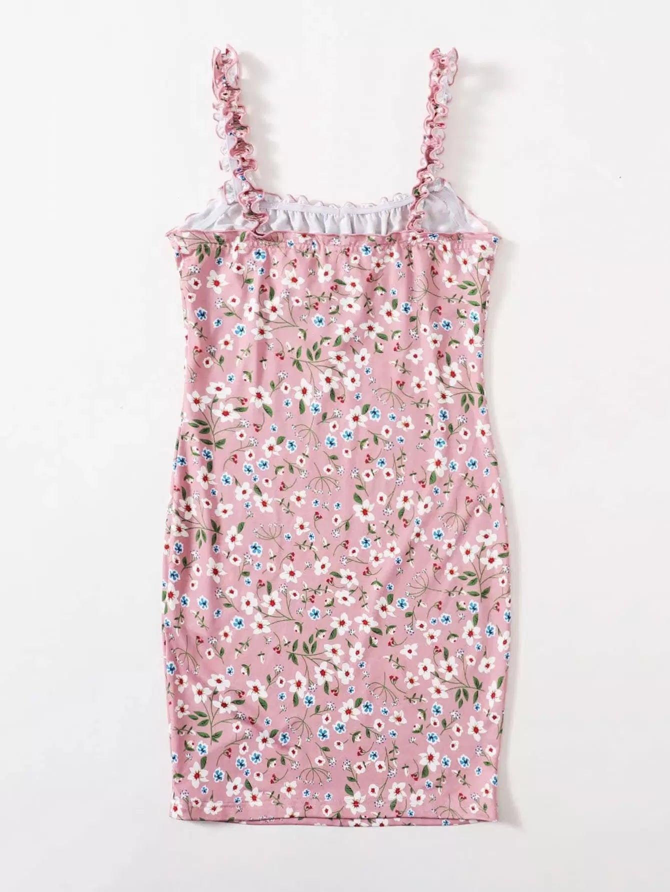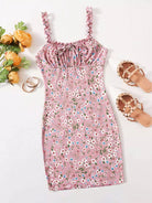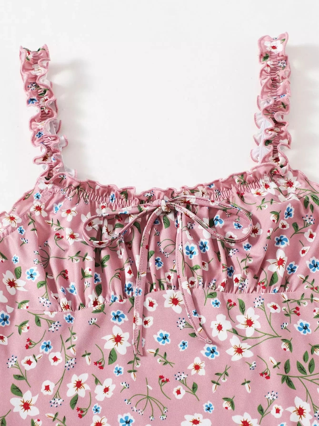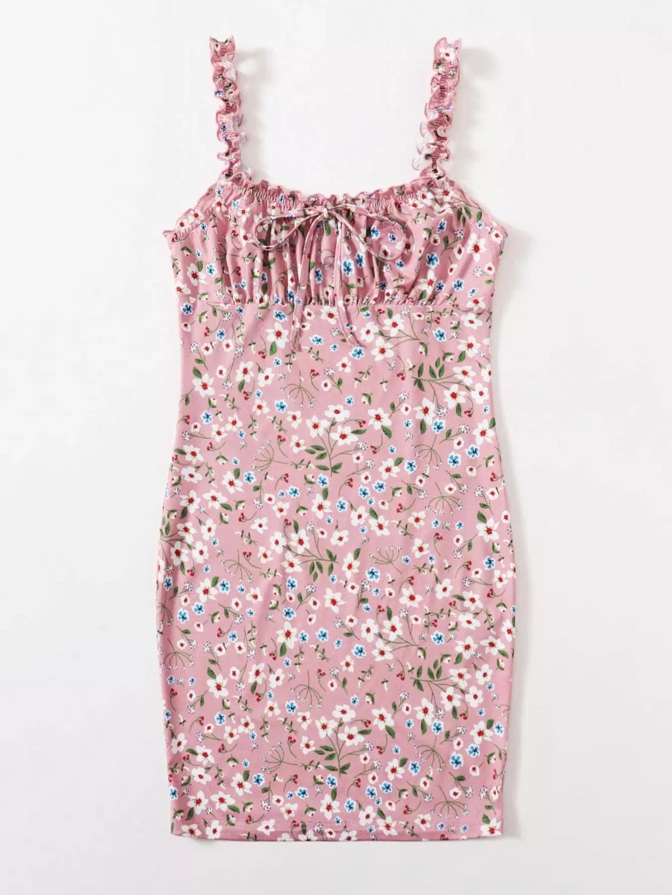Frill Trim Ruched Bust Tie Front Ditsy Floral Dress