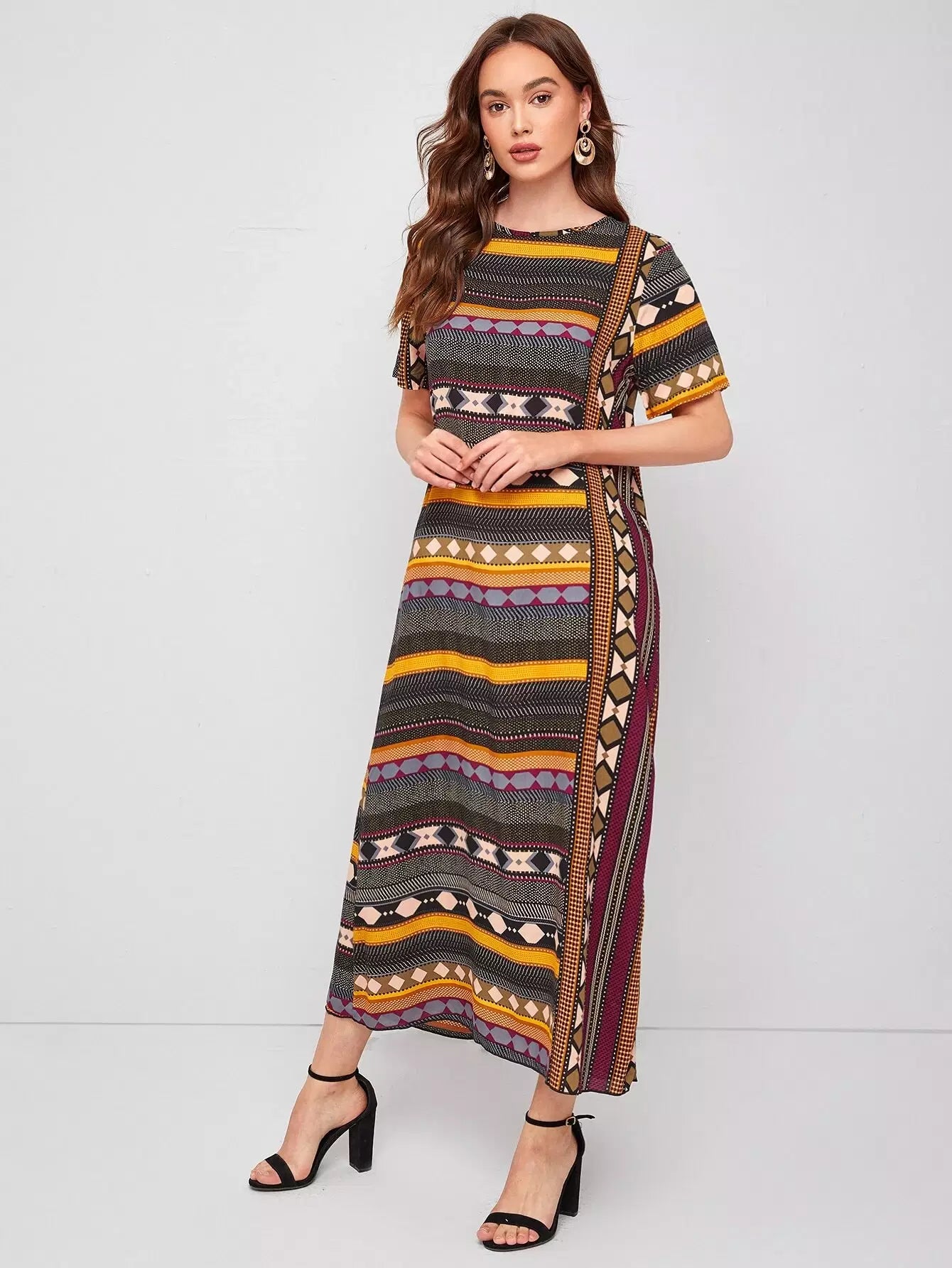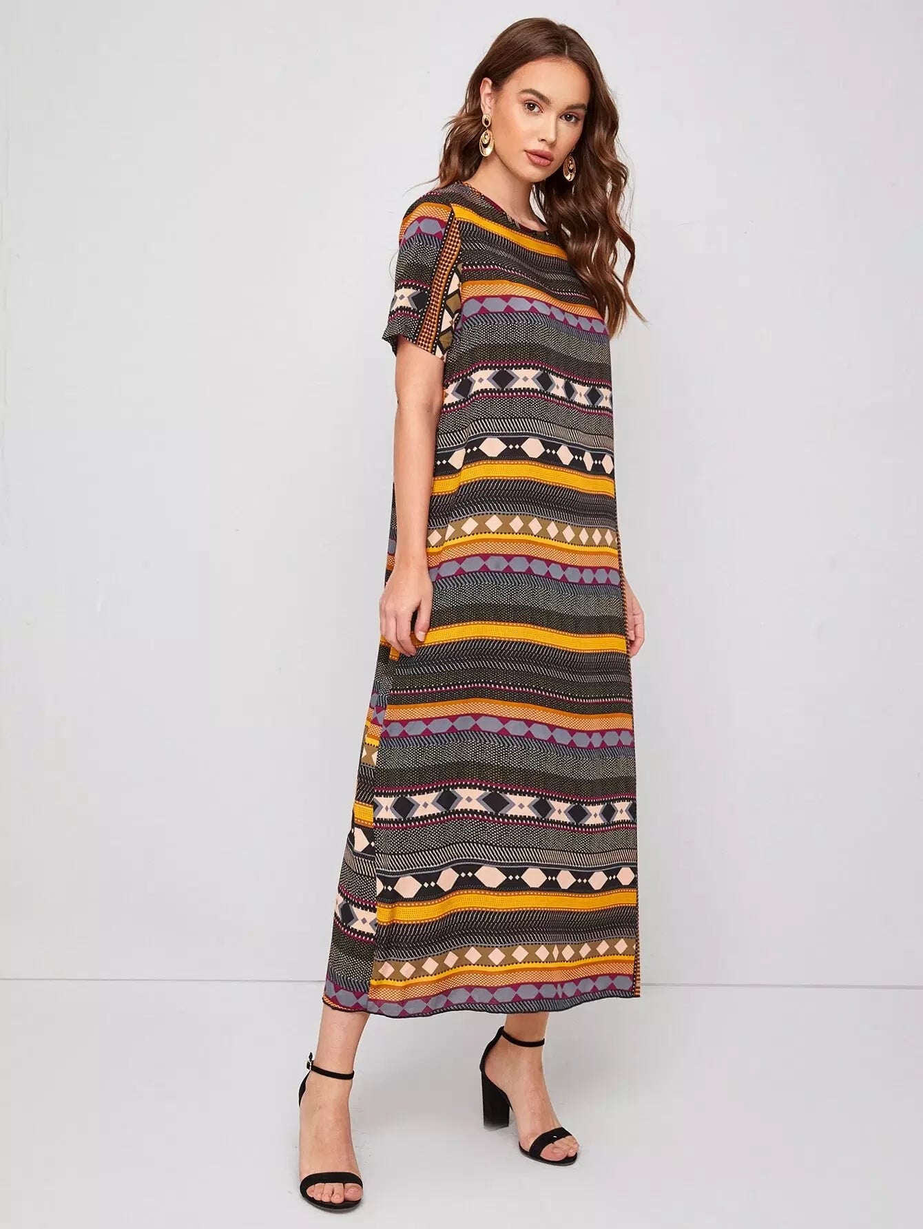 Geo Print Round Neck Tunic Dress