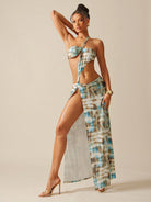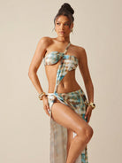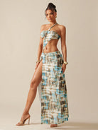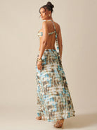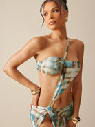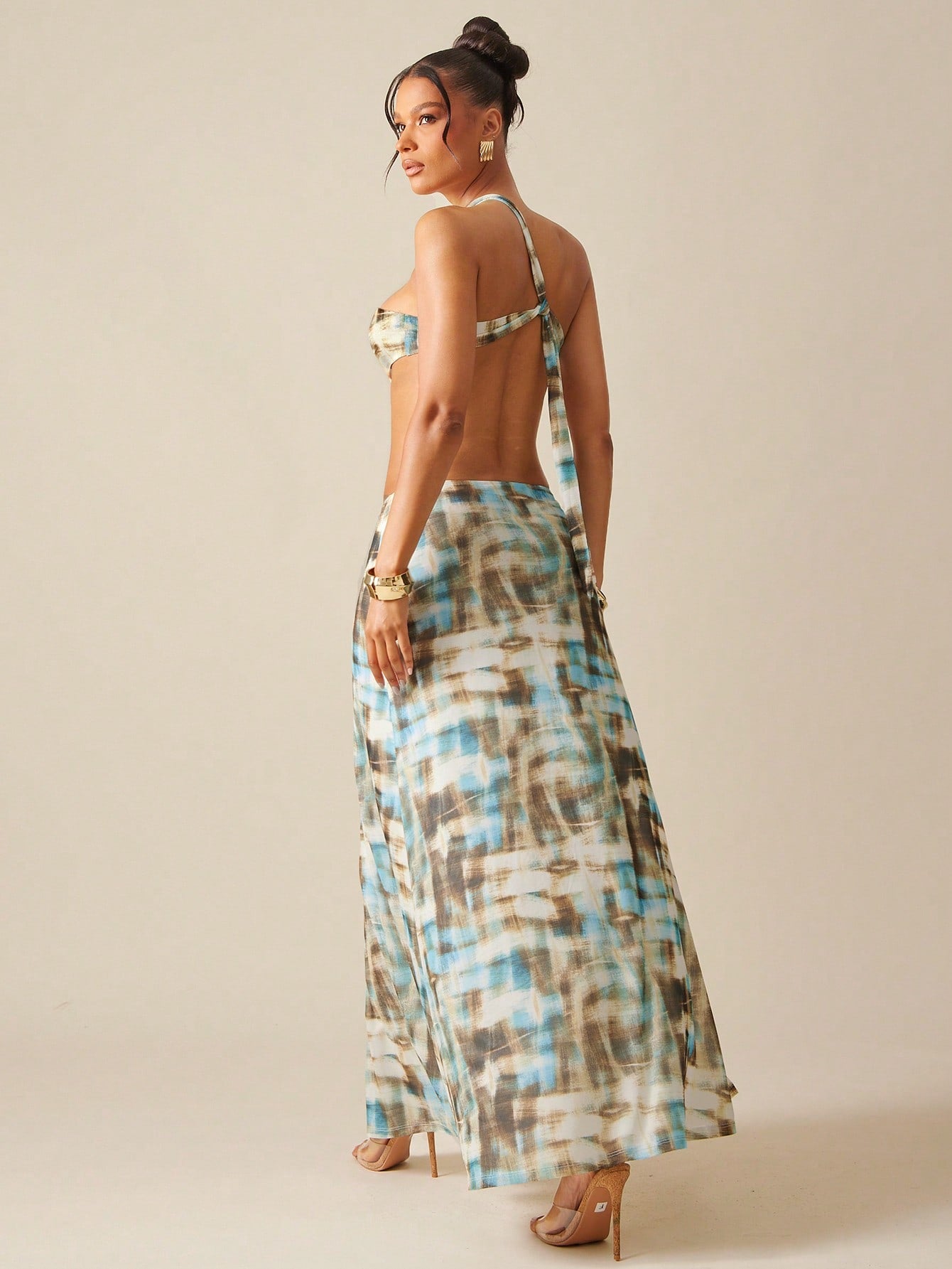 Hauture Women's Sexy Abstract Tie-Dye Print Cut-Out Summer Dress With Gold Metal Decor For Vacation,