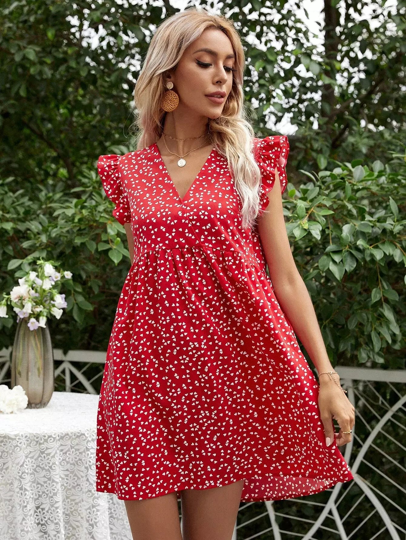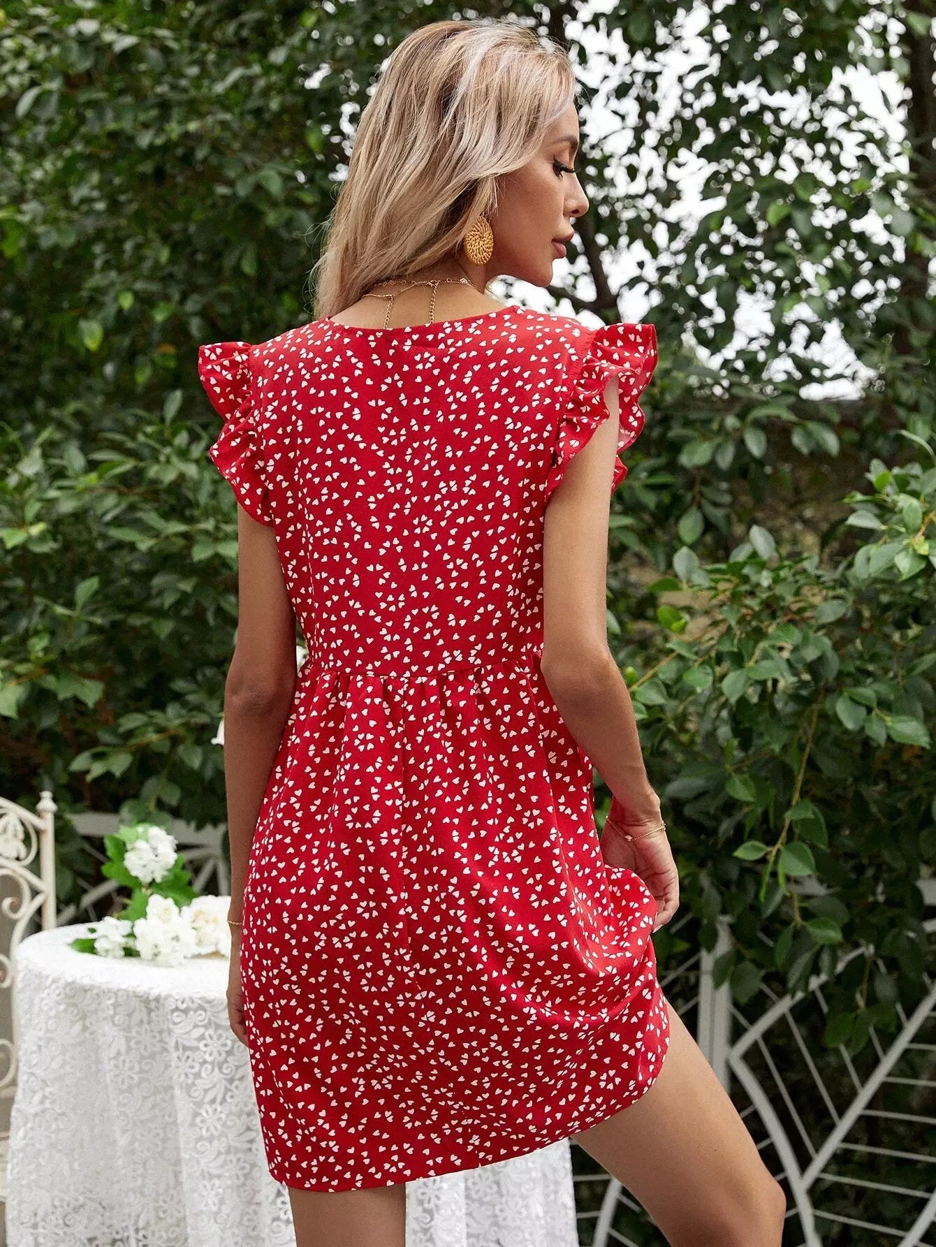 Heart Confetti Ruffle Trim Dress