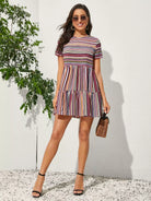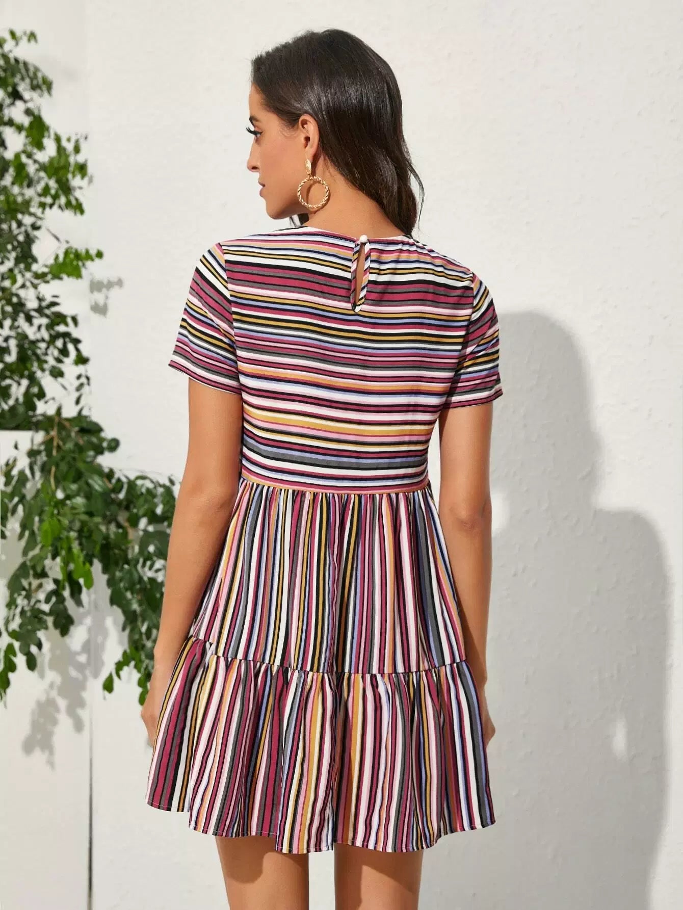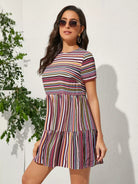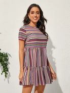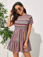 Keyhole Back Striped Ruffle Hem Dress