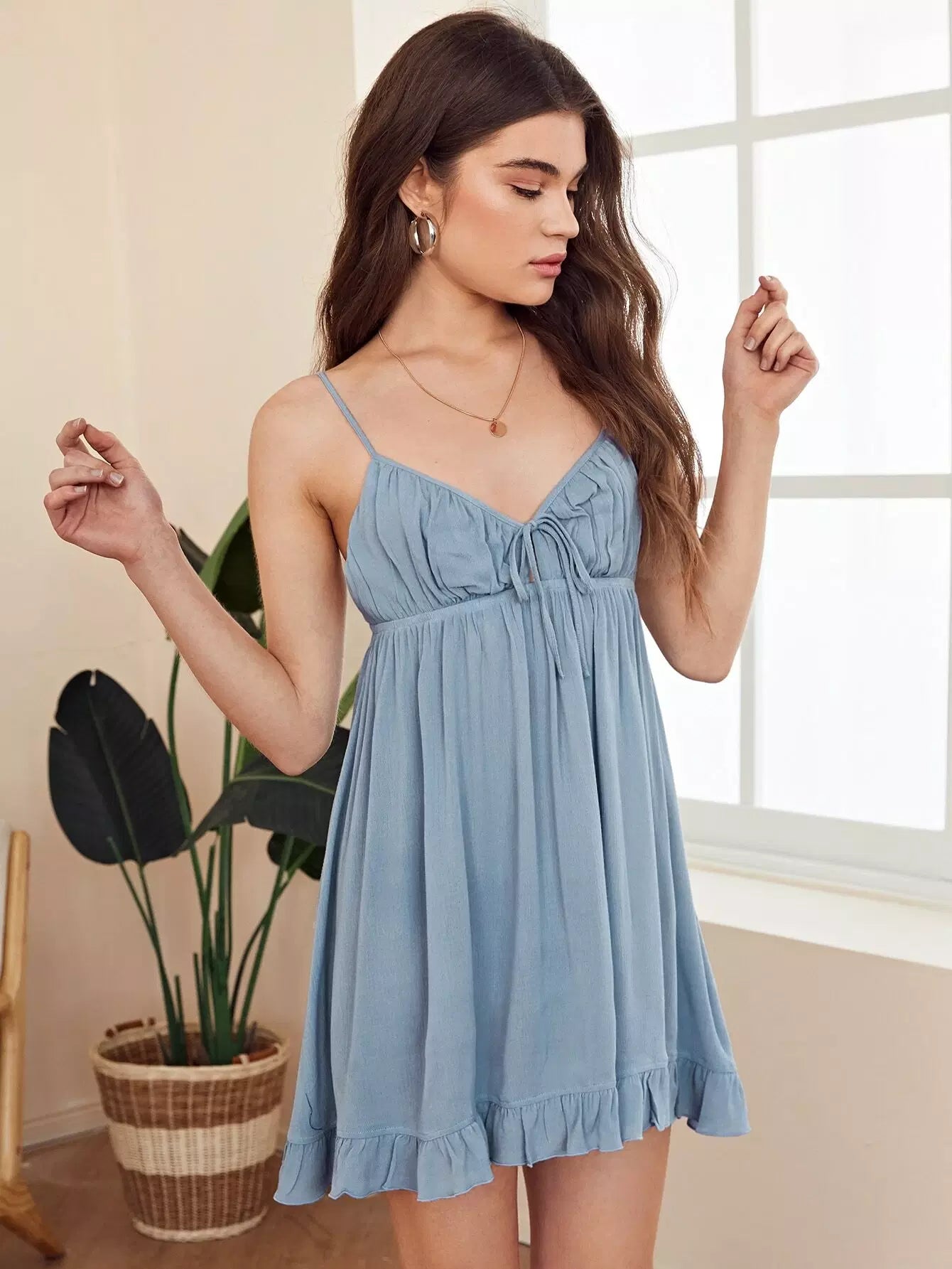 Knot Ruched Bust Ruffle Hem Slip Dress
