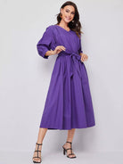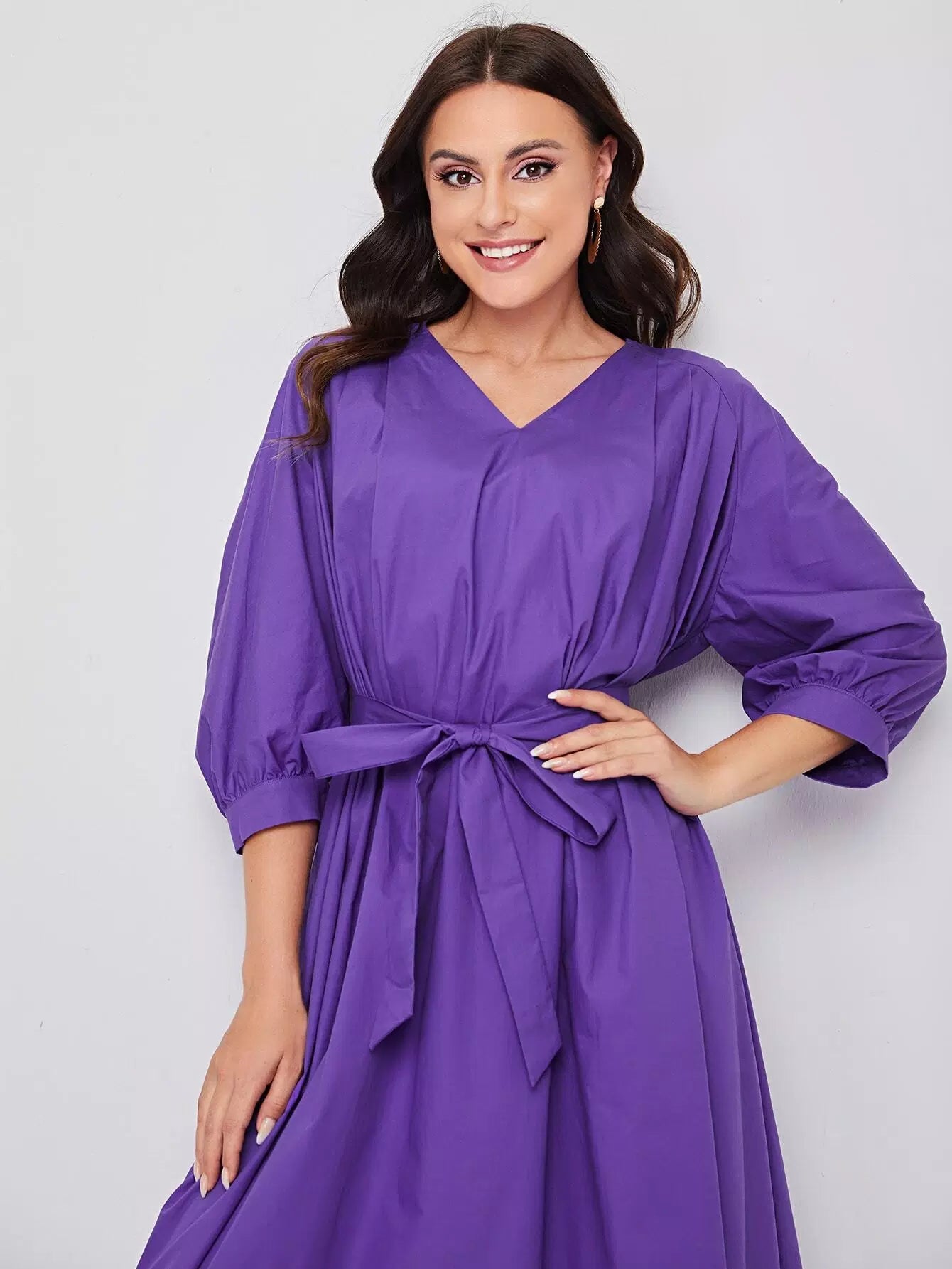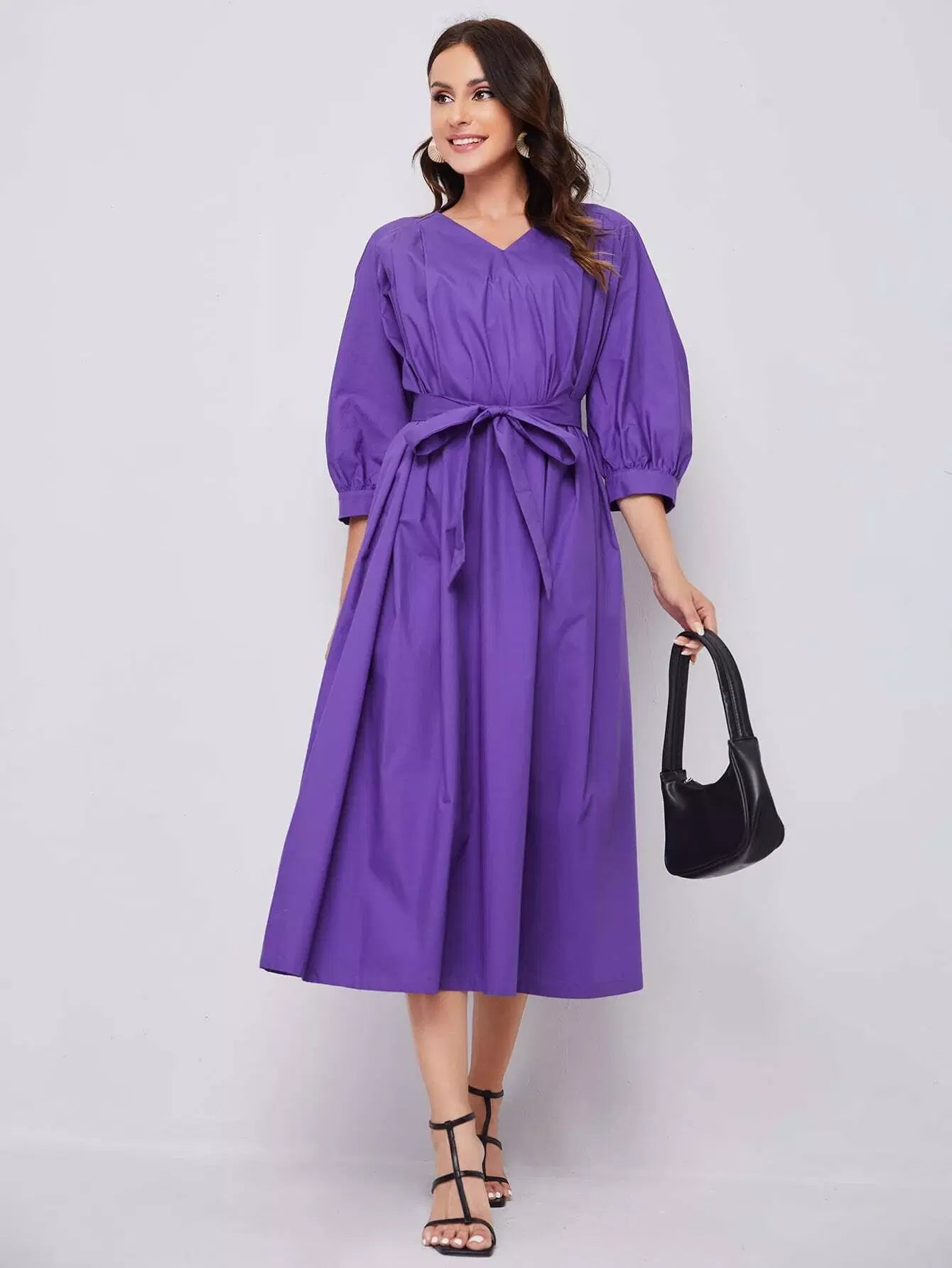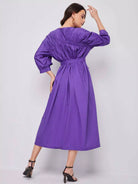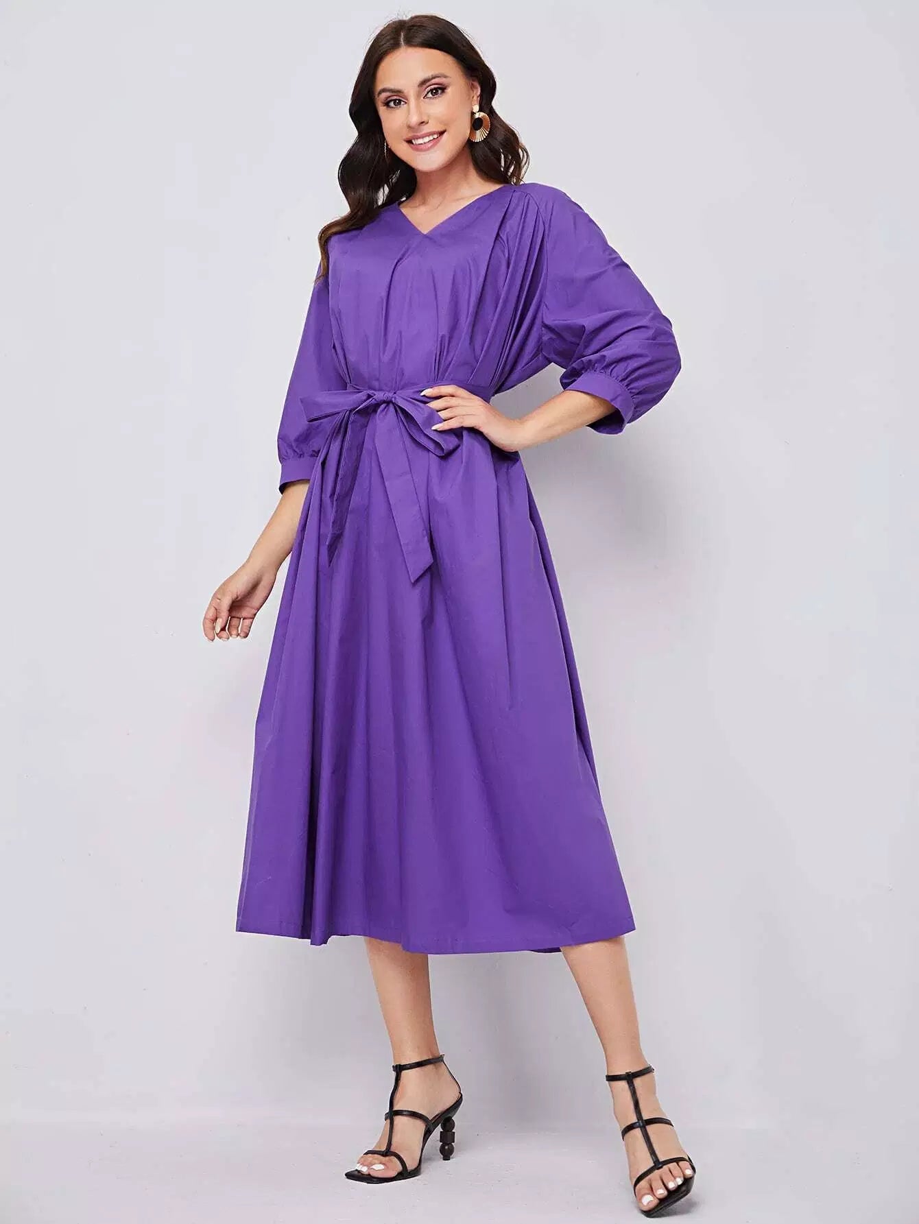 Lantern Sleeve Ruched Detail Dress Without Belt