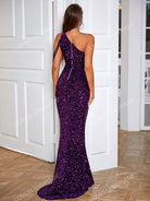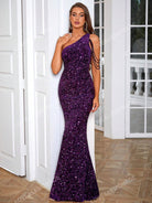 LOVE&LEMONADE Asymmetrical Neck Mermaid Hem Sequin Formal Dress Elegant Prom Evening Wedding Guest Gown
