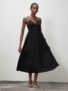 women Lumivelle 1pc Women Deep V Neck Cinch Waist Dress
