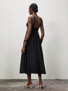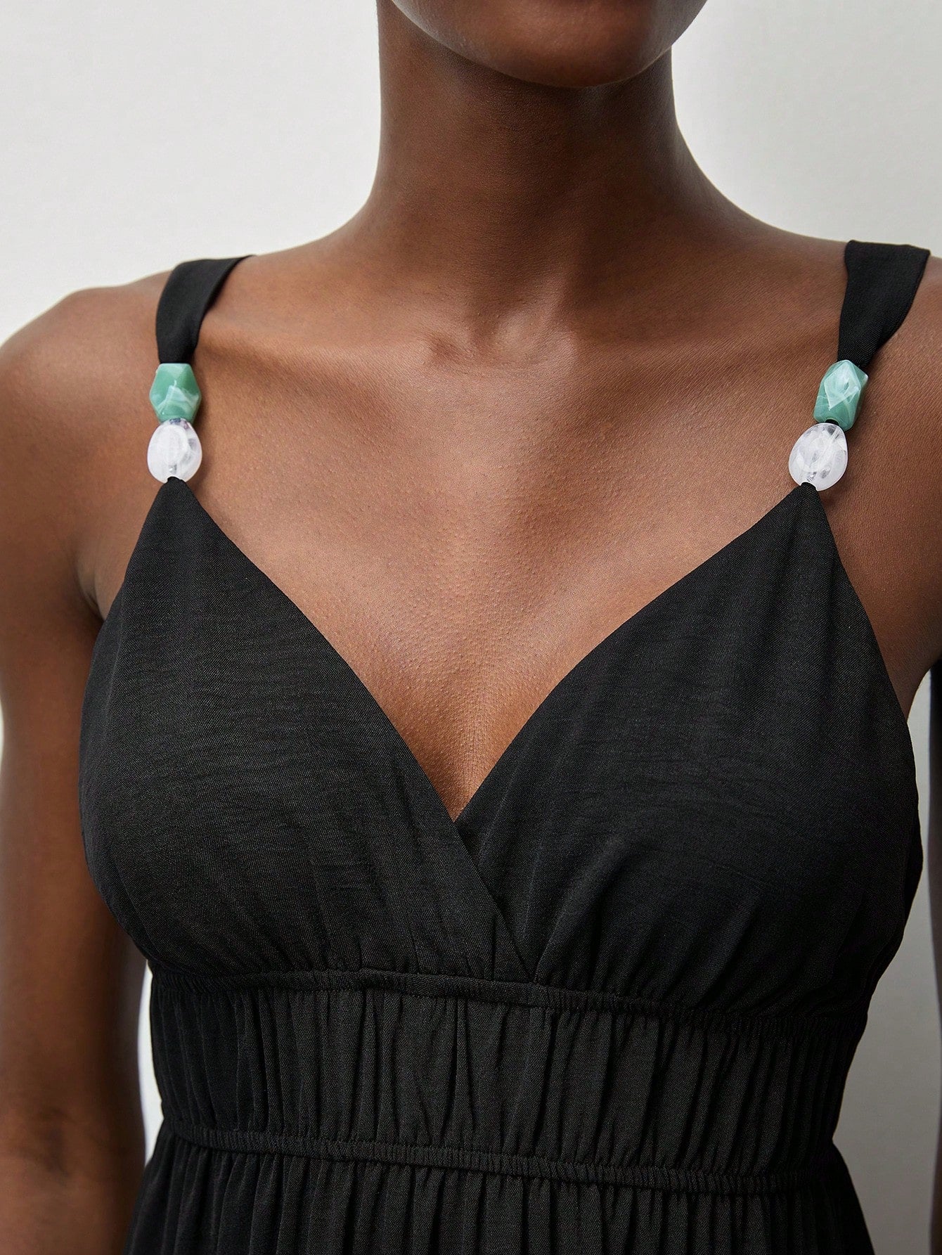 Lumivelle 1pc Women Deep V Neck Cinch Waist Dress