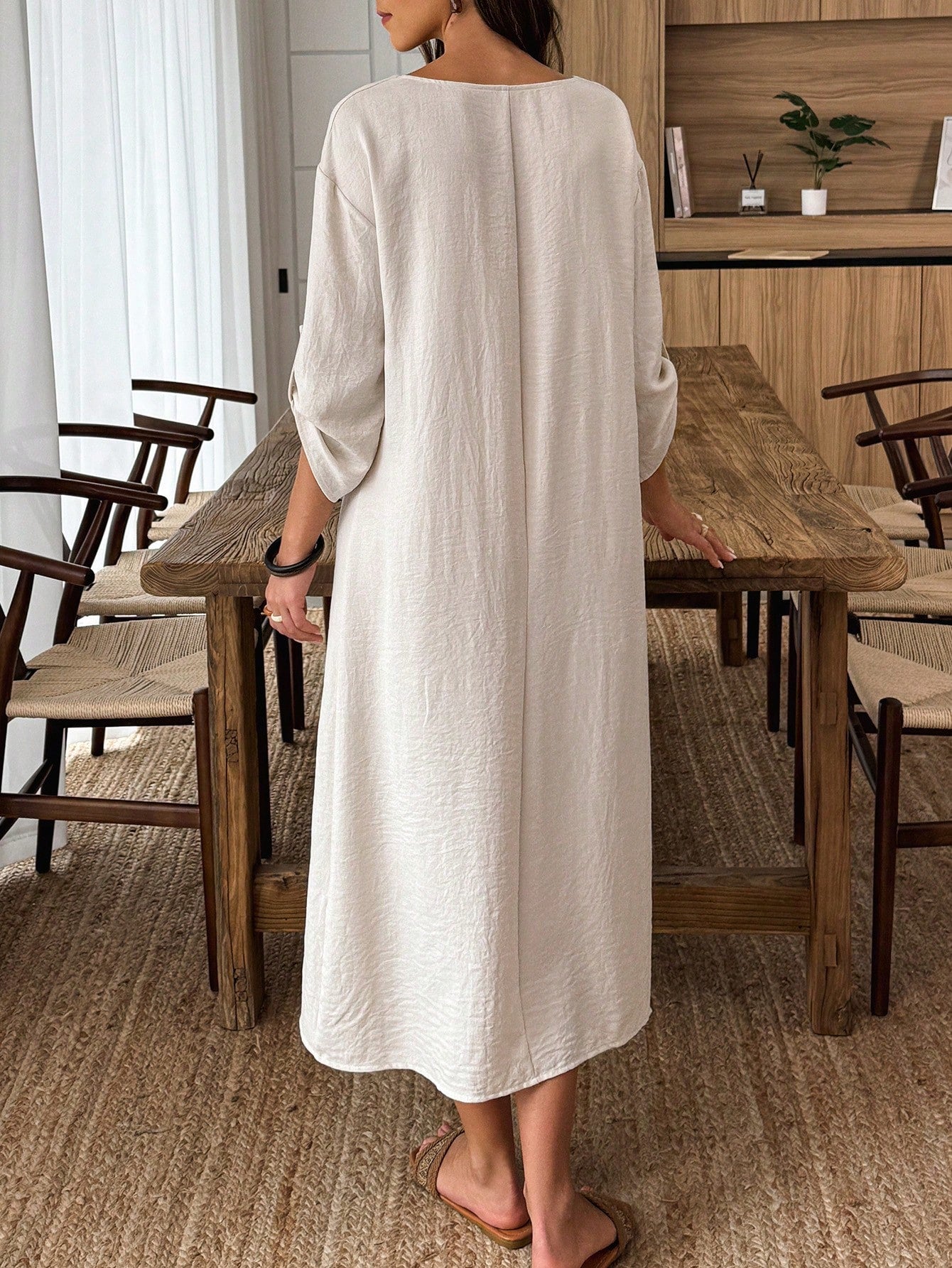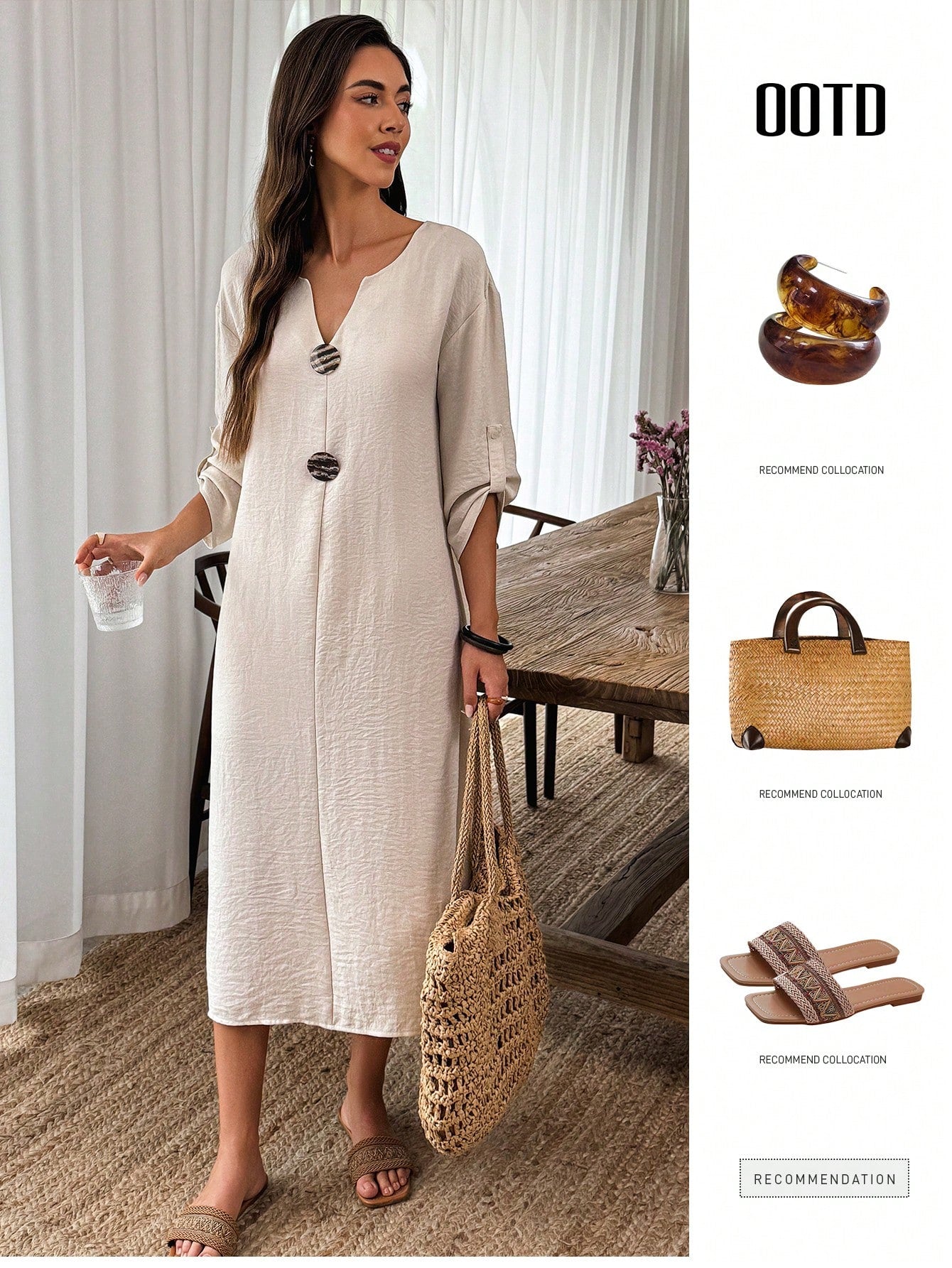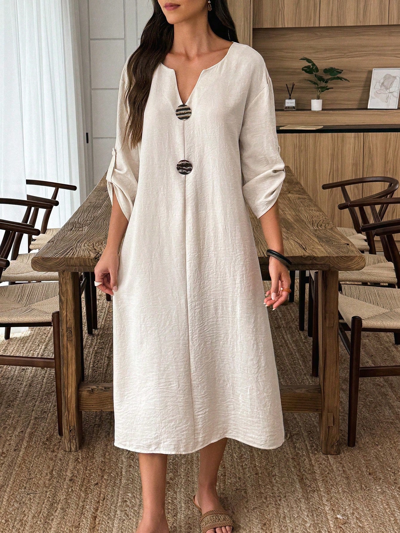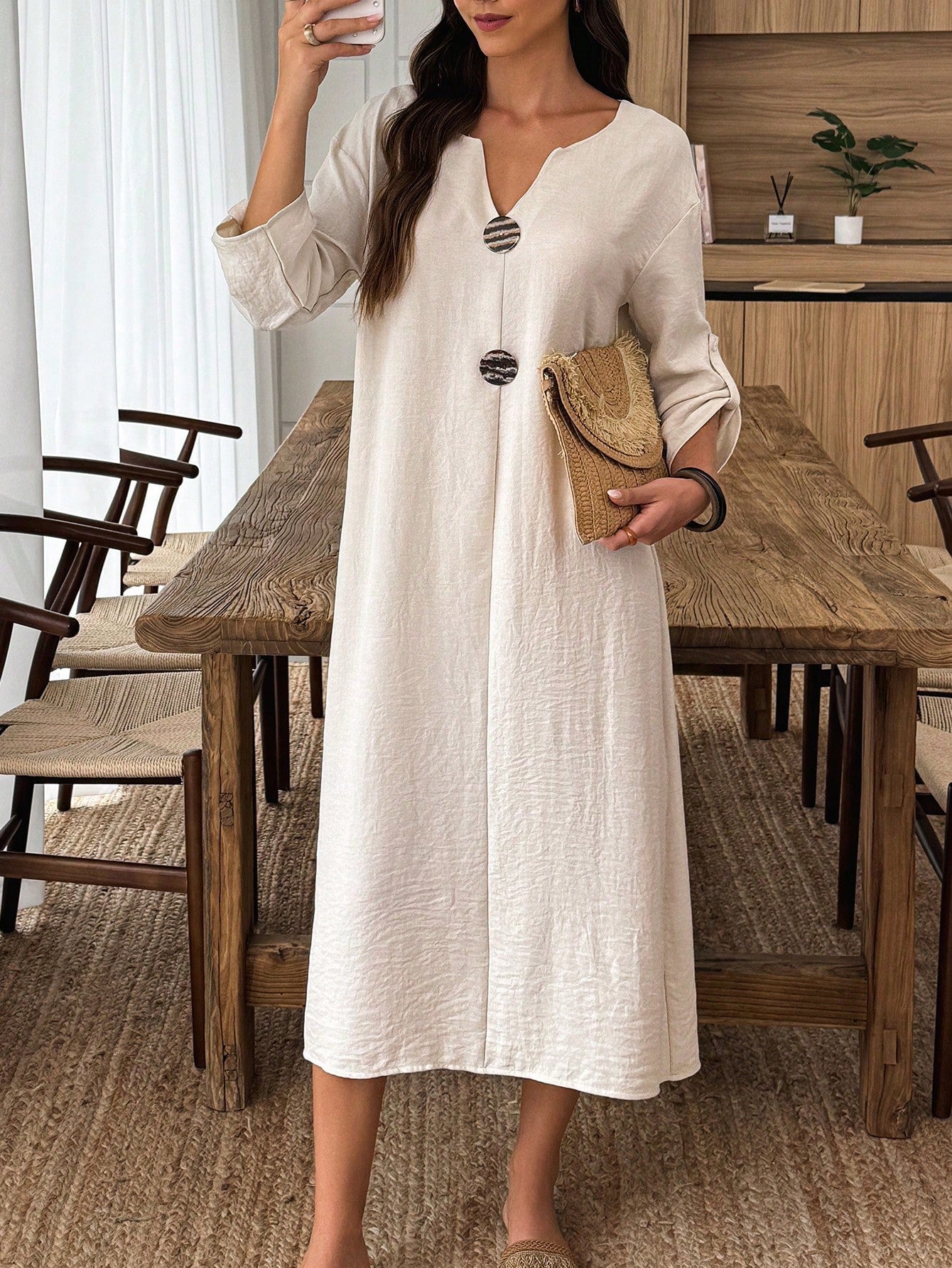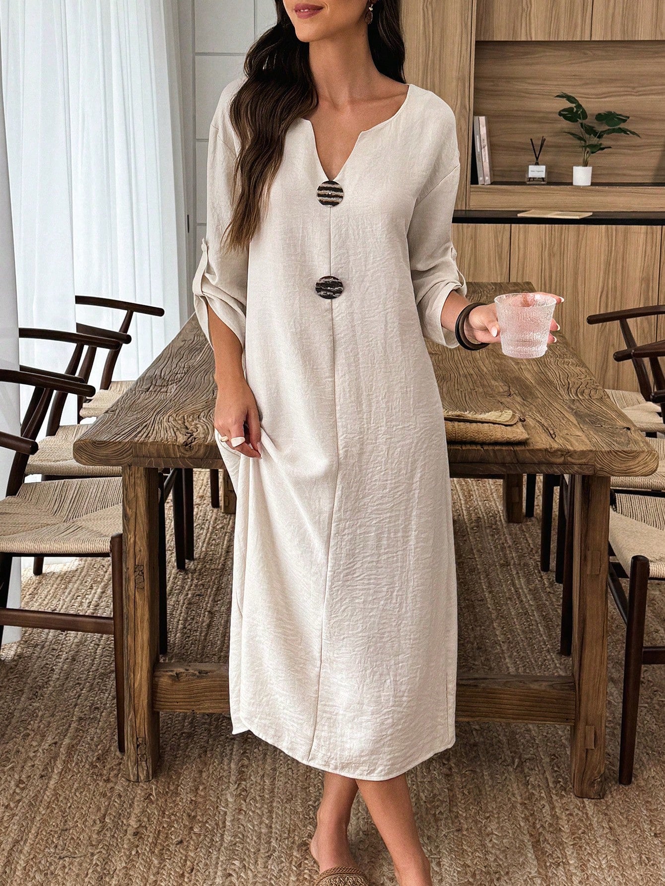 LUNE Ladies' Retro Autumn Decorative Wooden Button Dress Fall Cloth For Women