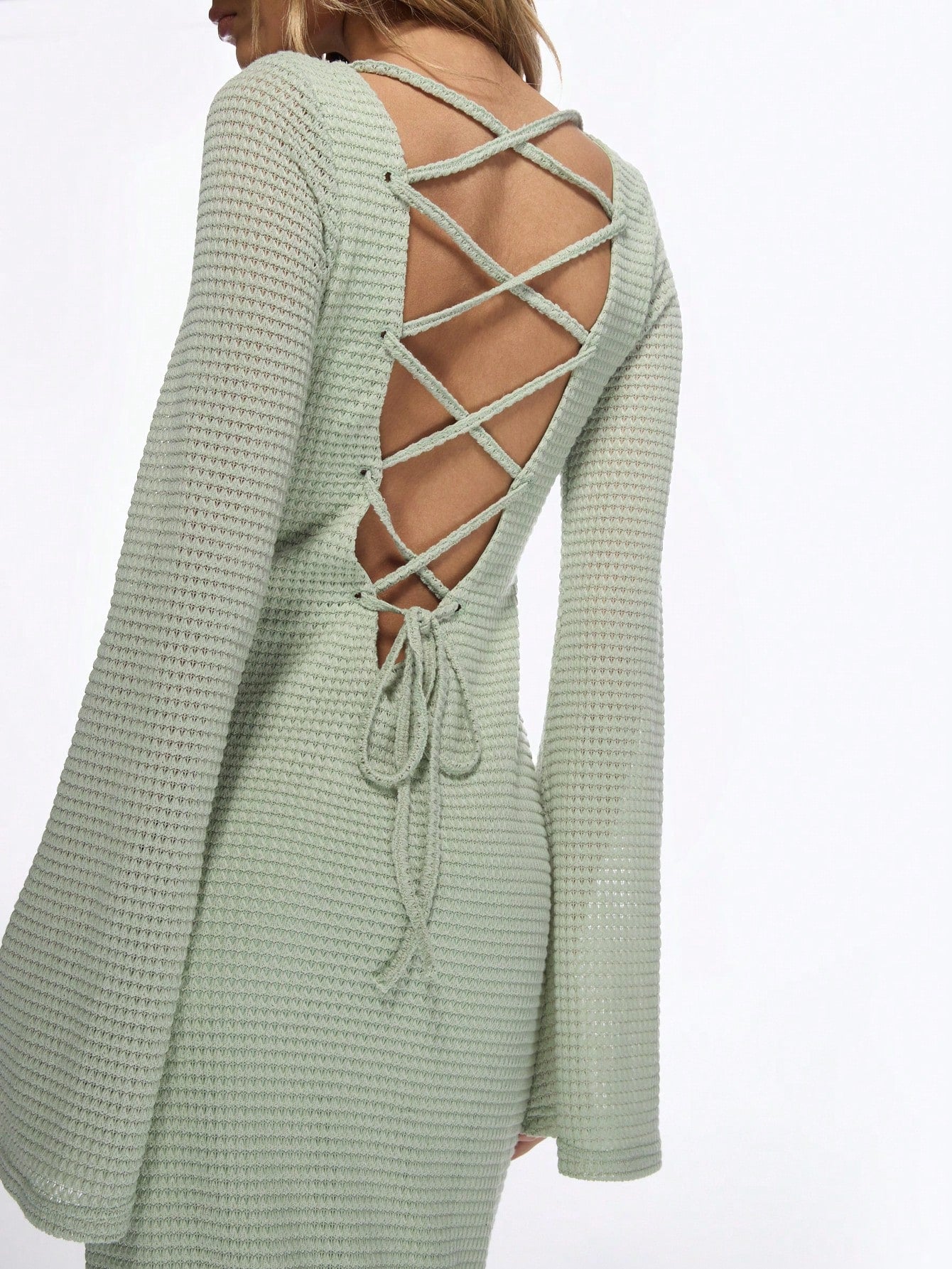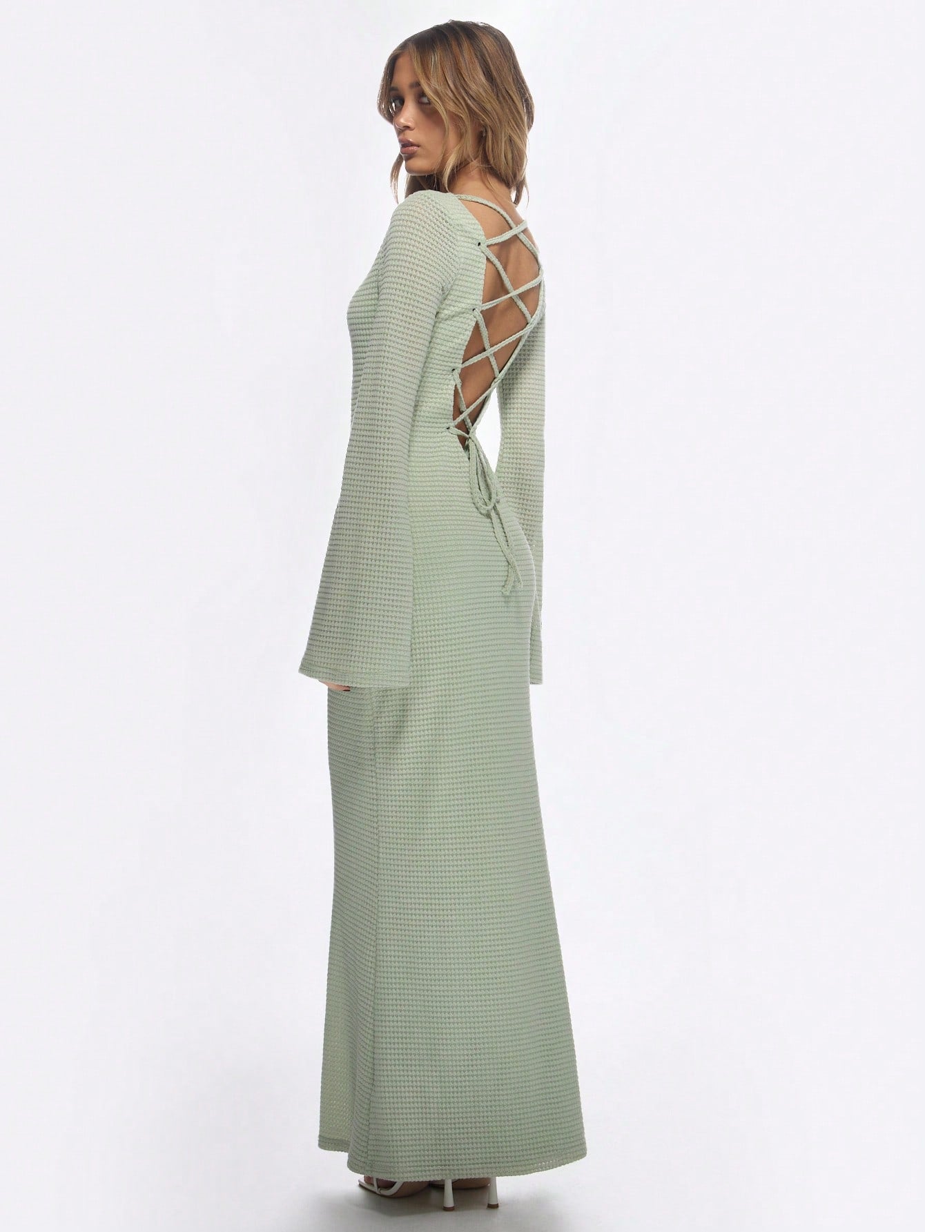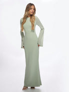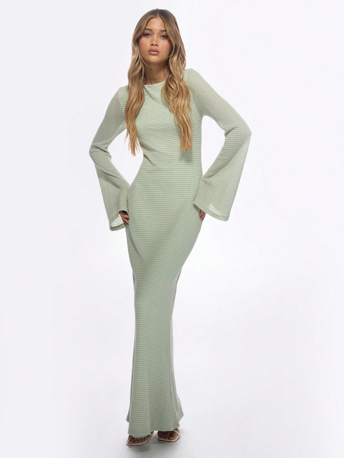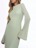 MISSGUIDED Elegant Knit Bell Sleeve Maxi Dress Evening Gown Form Fitting Textured Ribbed Floor Length