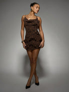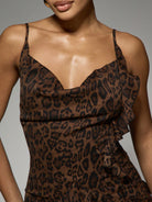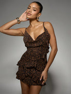 MISSGUIDED Leopard Print Ruched Bodycon Mini Dress Cowl Neck Spaghetti Strap Party Club Night Out Cocktail