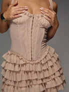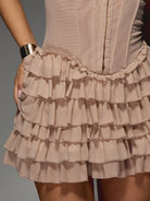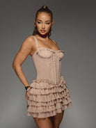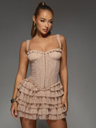 MISSGUIDED Ruffle Tiered Mini Dress Mesh Corset Style Bustier Party Cocktail Bodycon Sleeveless Evening