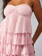 MISSGUIDED Strapless Tiered Ruffle Mini Dress Summer Wedding Guest Spring Garden Party Sweet Sweetheart