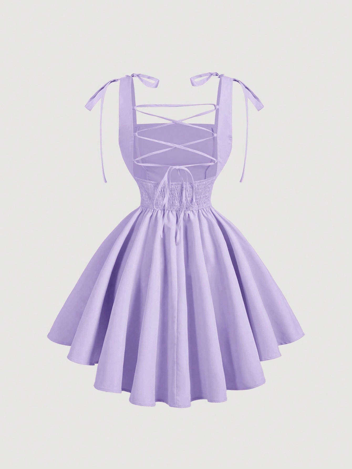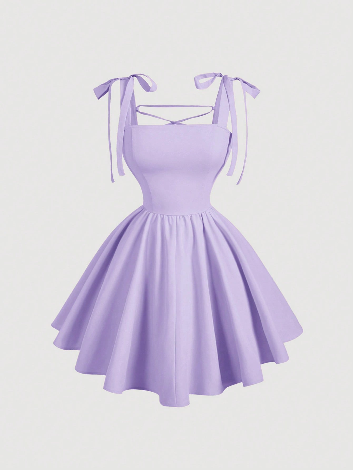 MOD Lavender Dreamy Romantic Backless Bowknot Dress, Suitable For Dates, Parties, Holidays, Tea Parties,