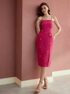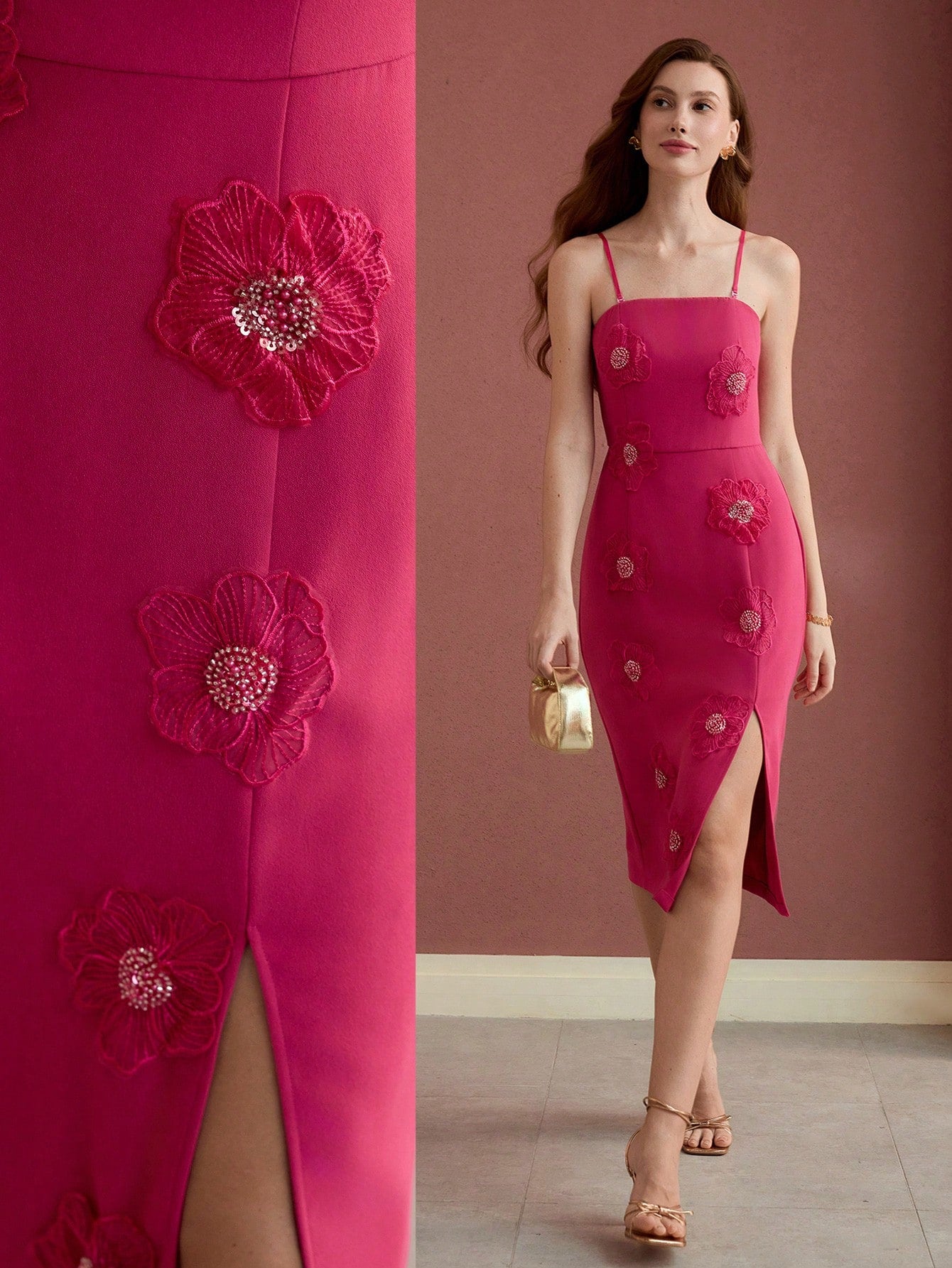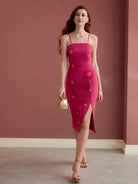 MOTF PREMIUM APPLIQUES SPLIT THIGH DRESS