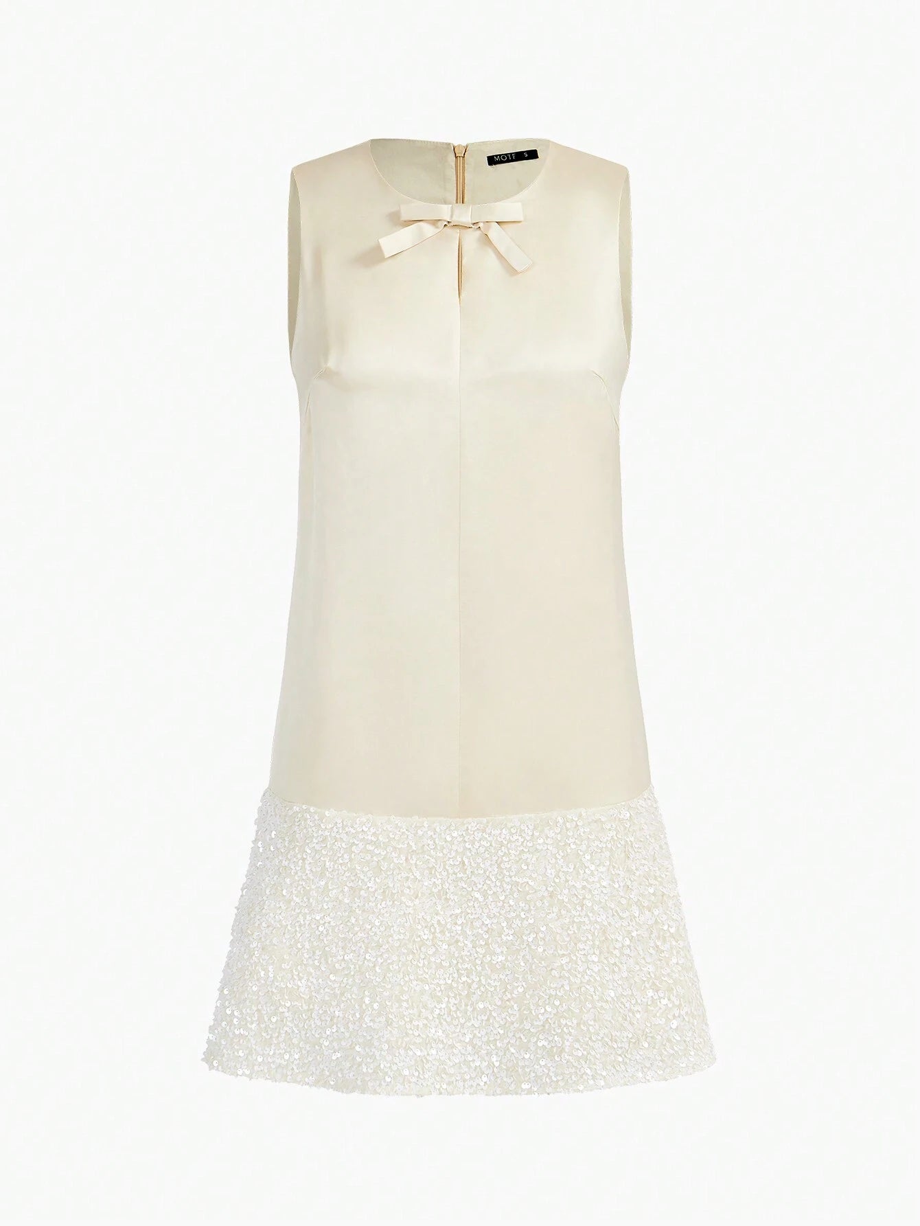 MOTF PREMIUM BOW FRONT CONTRAST SEQUIN HEM SHORT DRESS