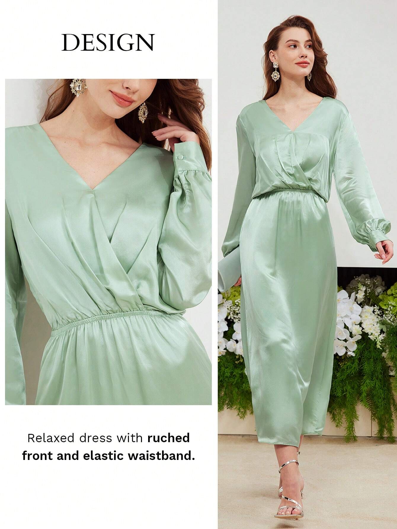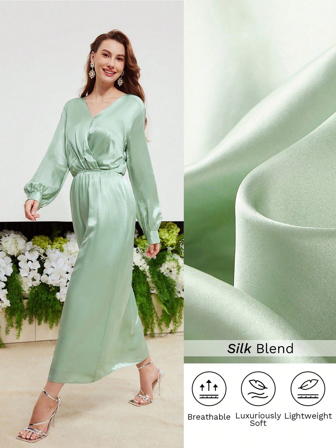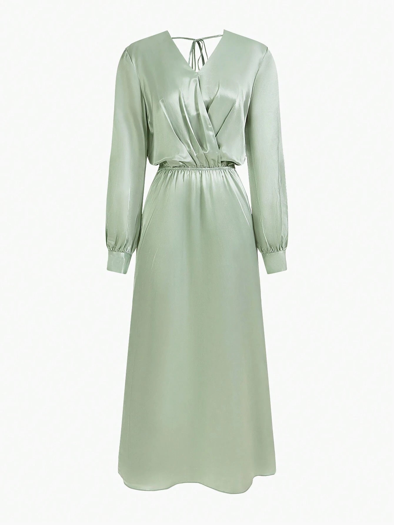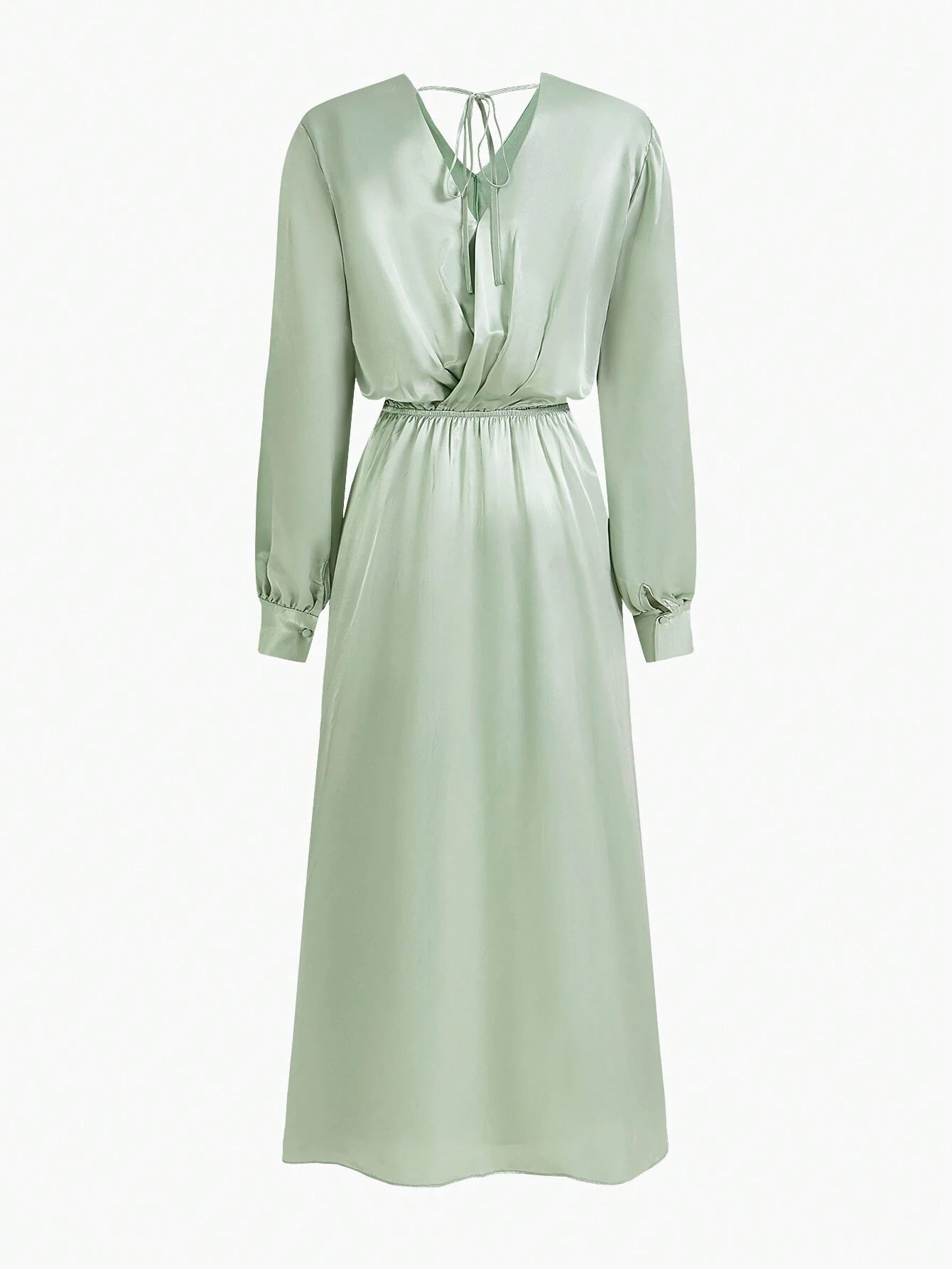 MOTF PREMIUM SILK LANTERN SLEEVE TIE BACK DRESS