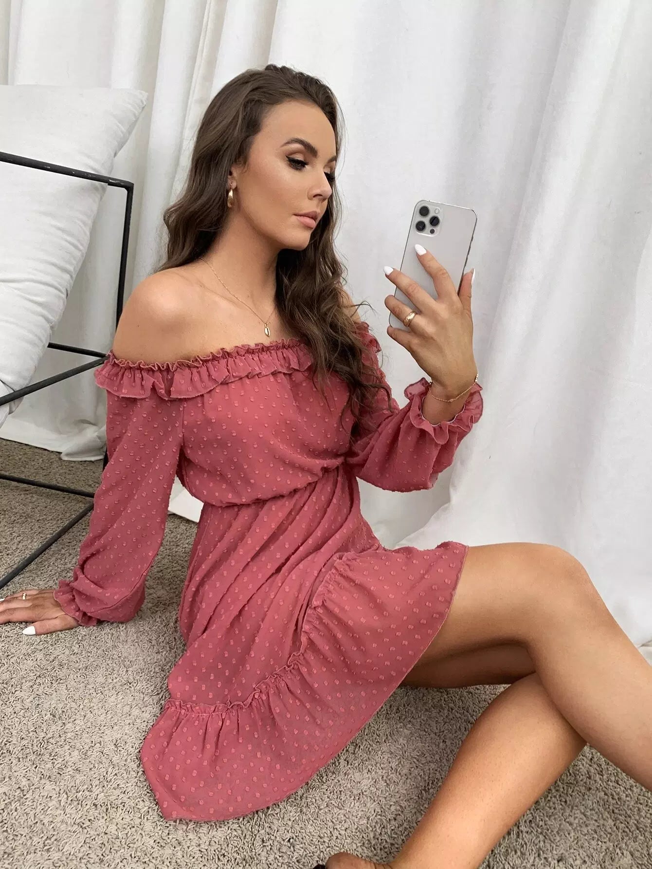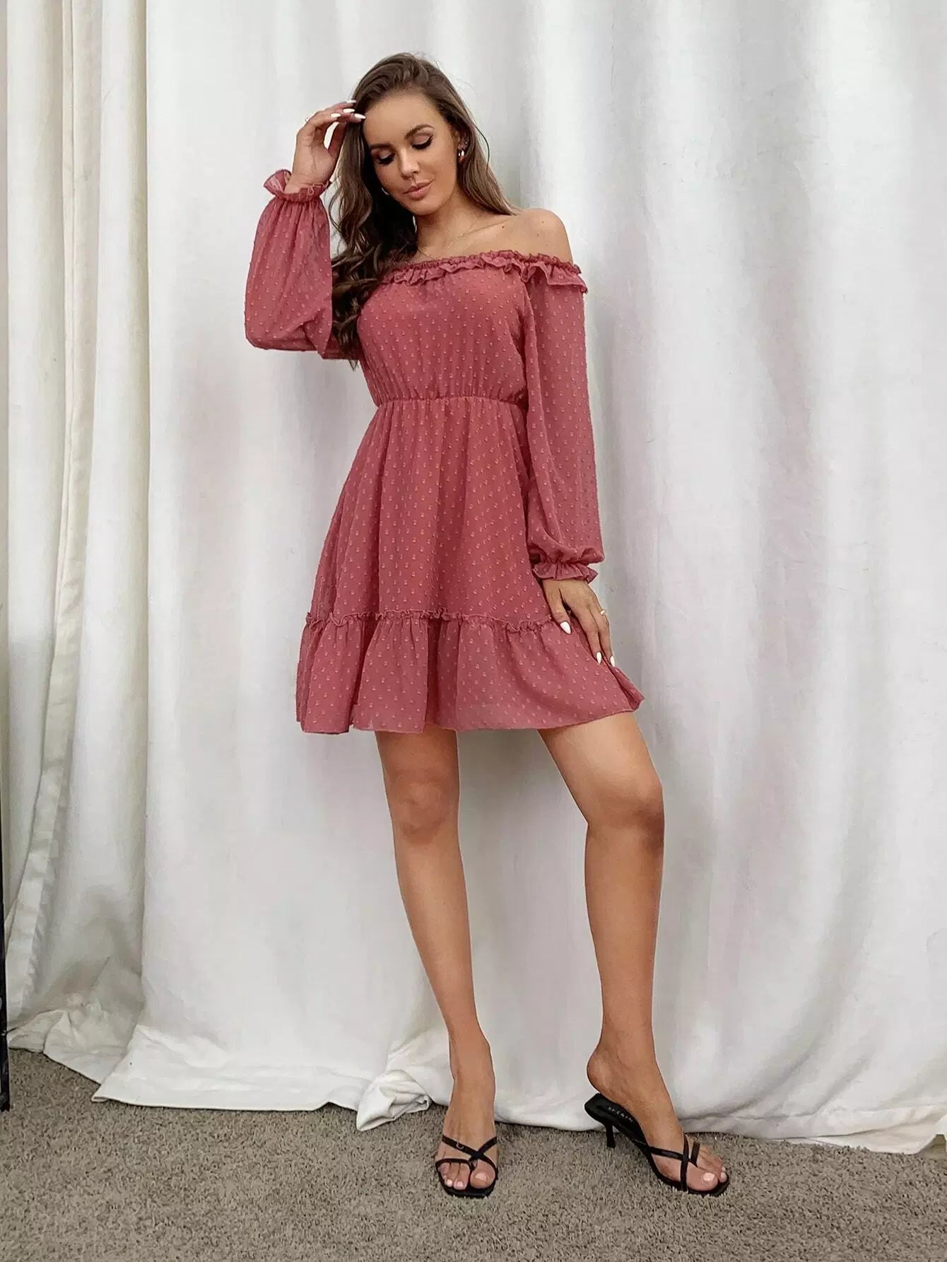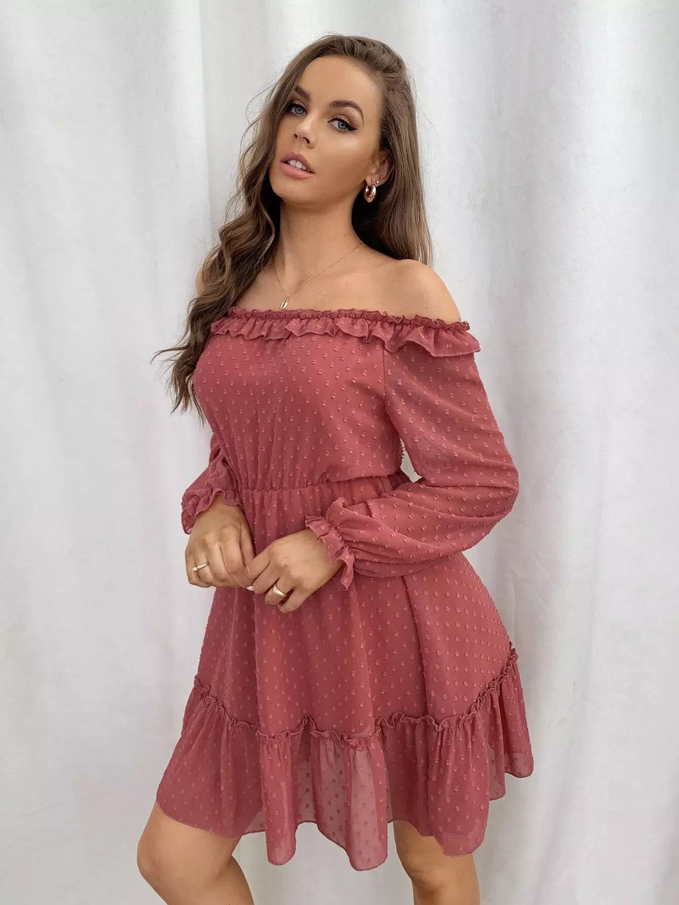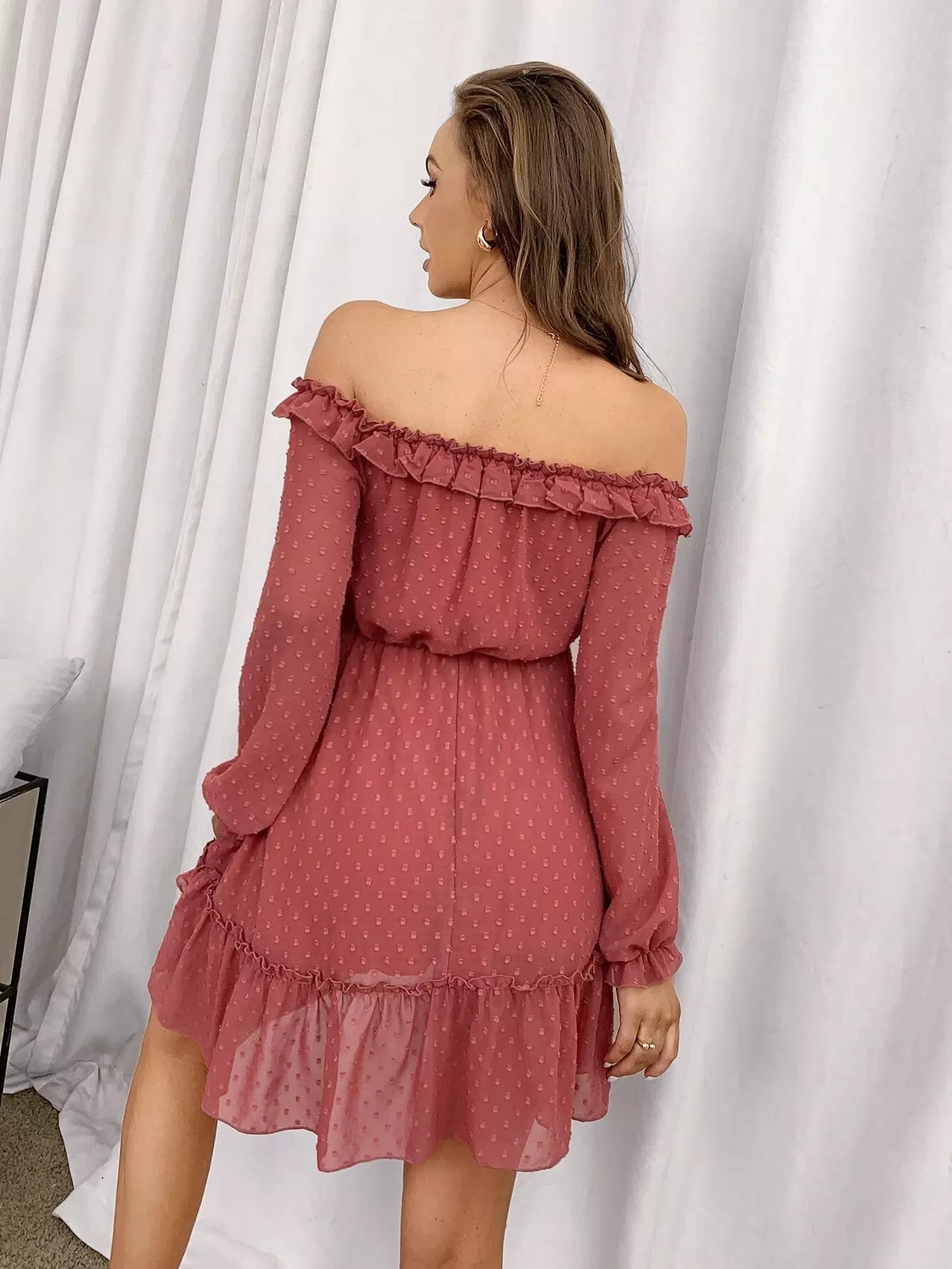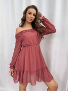Off Shoulder Ruffle Hem Chiffon Dress