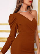 Women - One Shoulder Gigot Sleeve Bodycon Dress